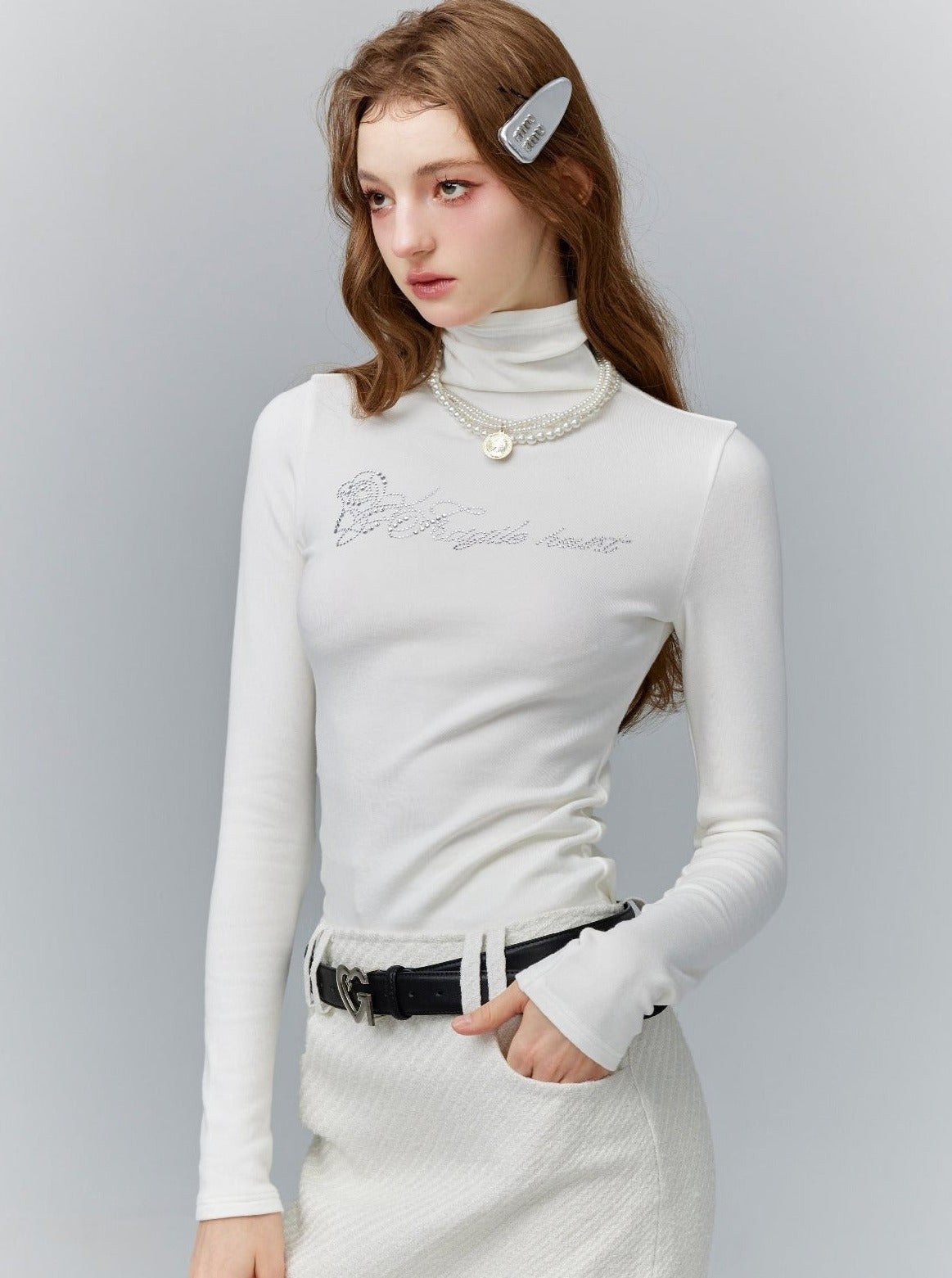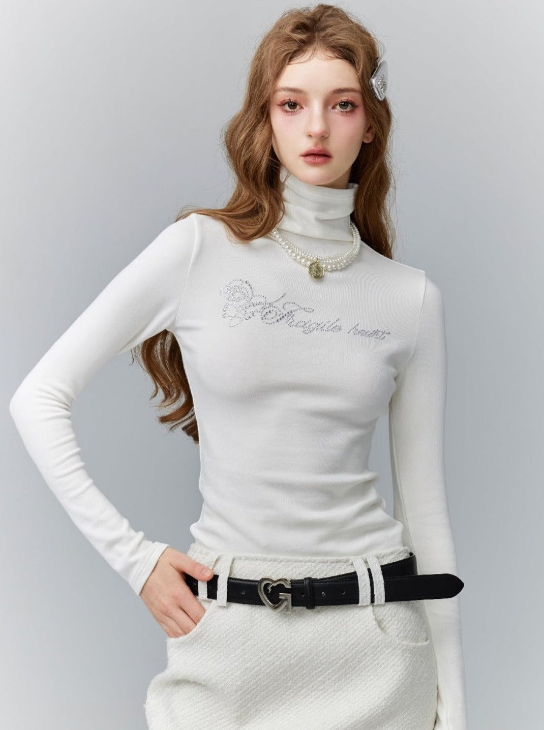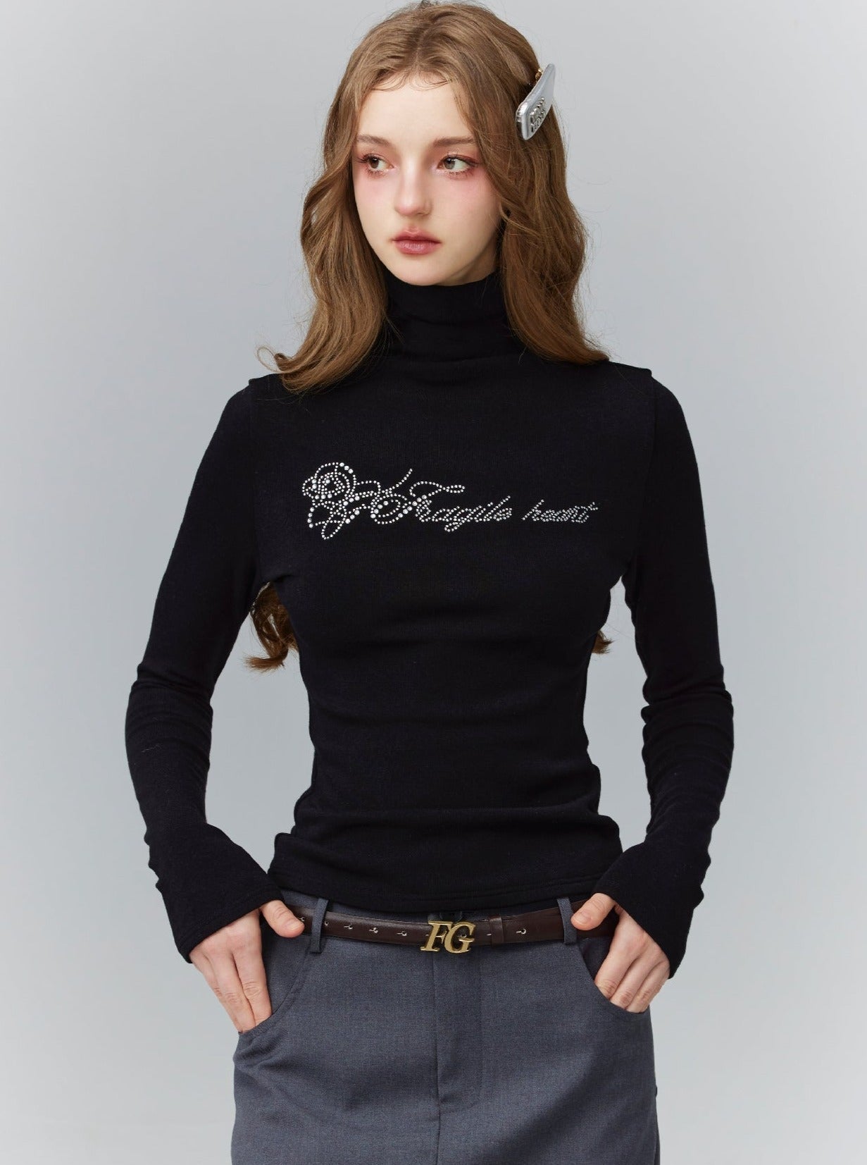 Expertly designed. our Cropped Turtleneck Long Sleeve Logo Top exudes both style and comfort. With a cropped cut and turtleneck design. it effortlessly flatters your silhouette while keeping you warm. The sleek logo adds a touch of sophistication to this must-have wardrobe staple.