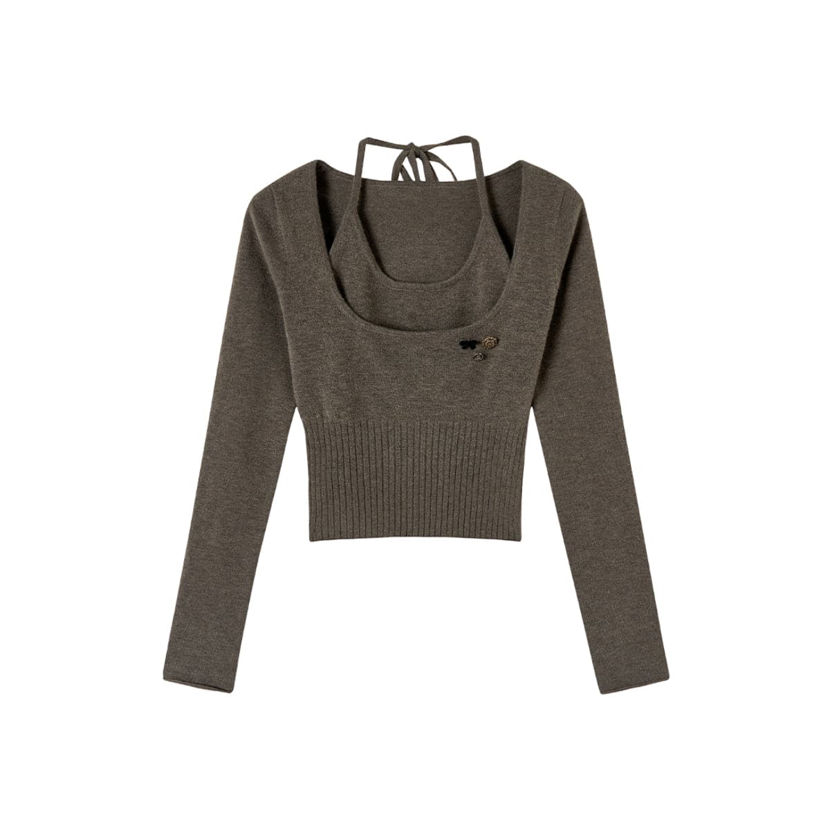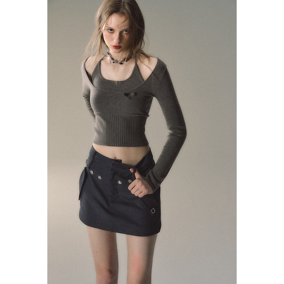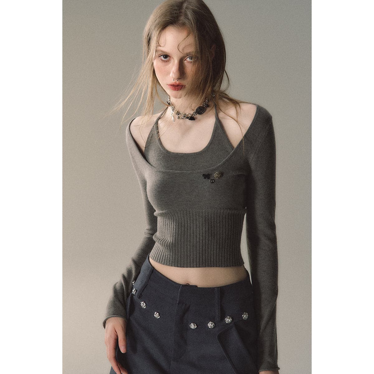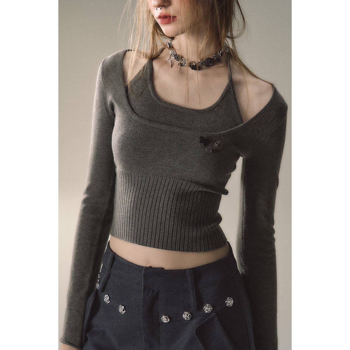 Dark Grey Knit Slim Top - Authentic 2-Piece Design