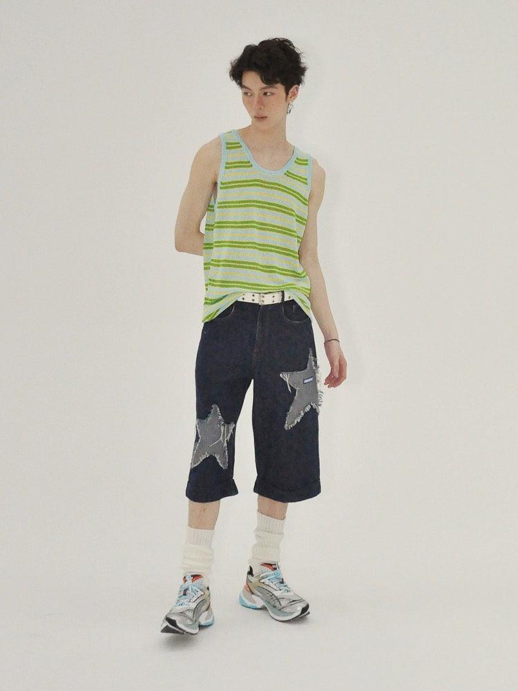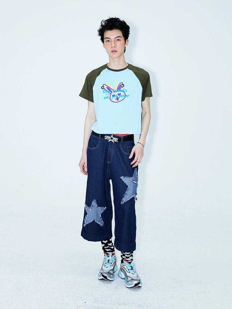 The Dark Wash Denim Culottes with Star Appliqués combine a trendy wide-leg silhouette with playful star appliqués. creating a unique and stylish look. Made from high-quality. durable denim in a dark wash. these culottes offer comfort and longevity. The high waist and cropped length provide a flattering fit. while the star appliqués add a fun and whimsical touch.