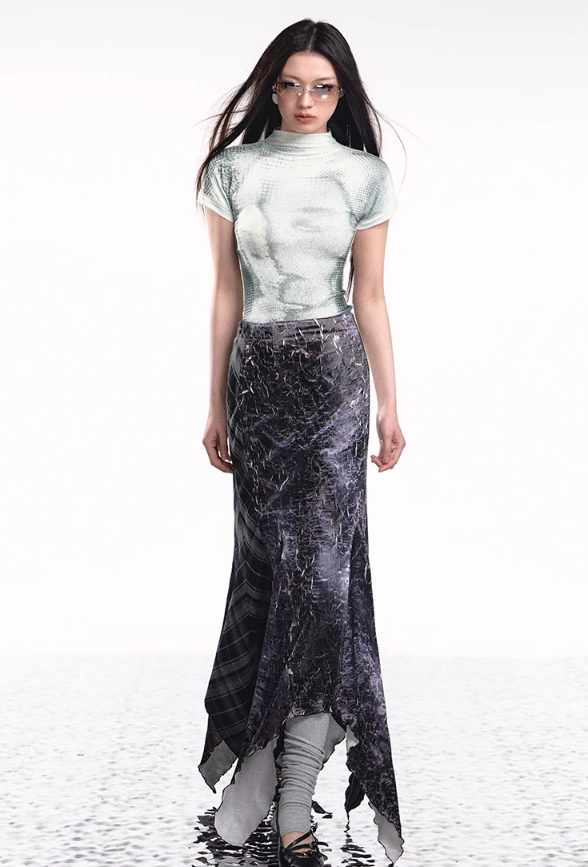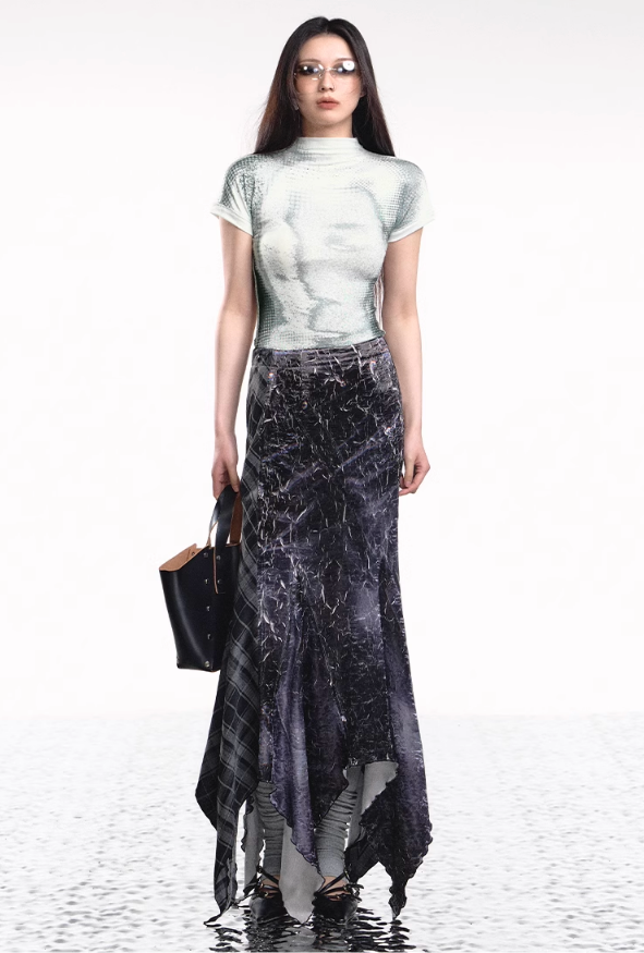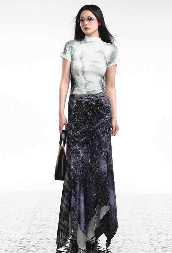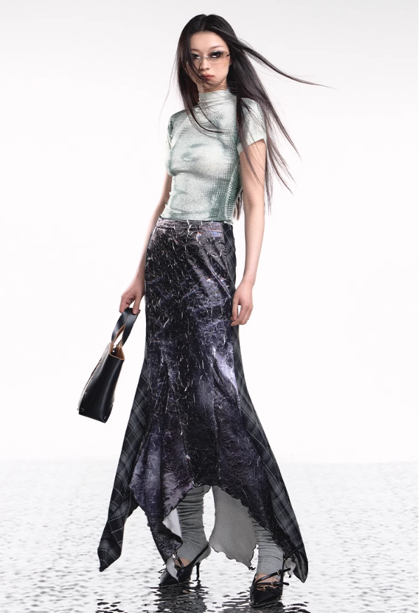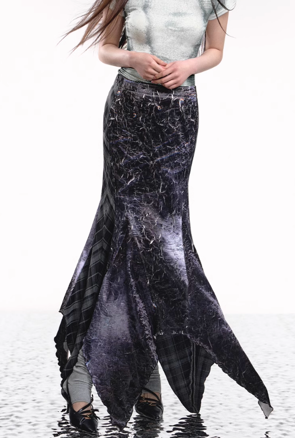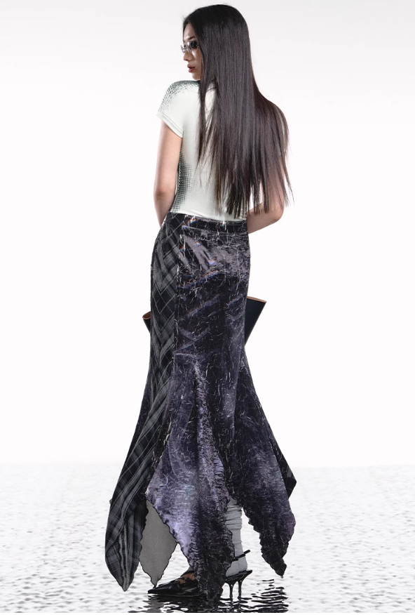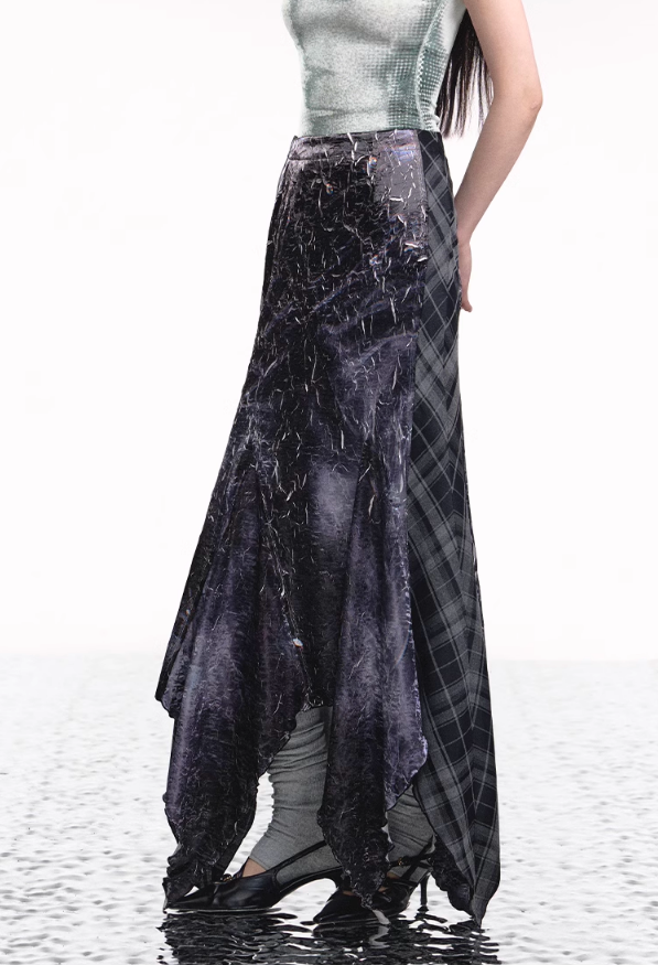 Add a modern twist to your wardrobe with the Denim Plaid Asymmetrical Skirt. This unique skirt features a bold plaid print on soft denim fabric. combining classic and contemporary styles. The irregular. asymmetrical hemline adds an edgy flair. making it a standout piece for any outfit. Perfect for casual outings or a night out. this skirt pairs effortlessly with a simple top and your favorite accessories for a chic. fashion-forward look.