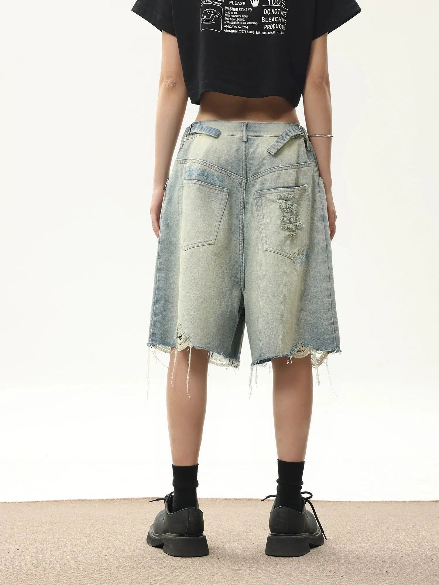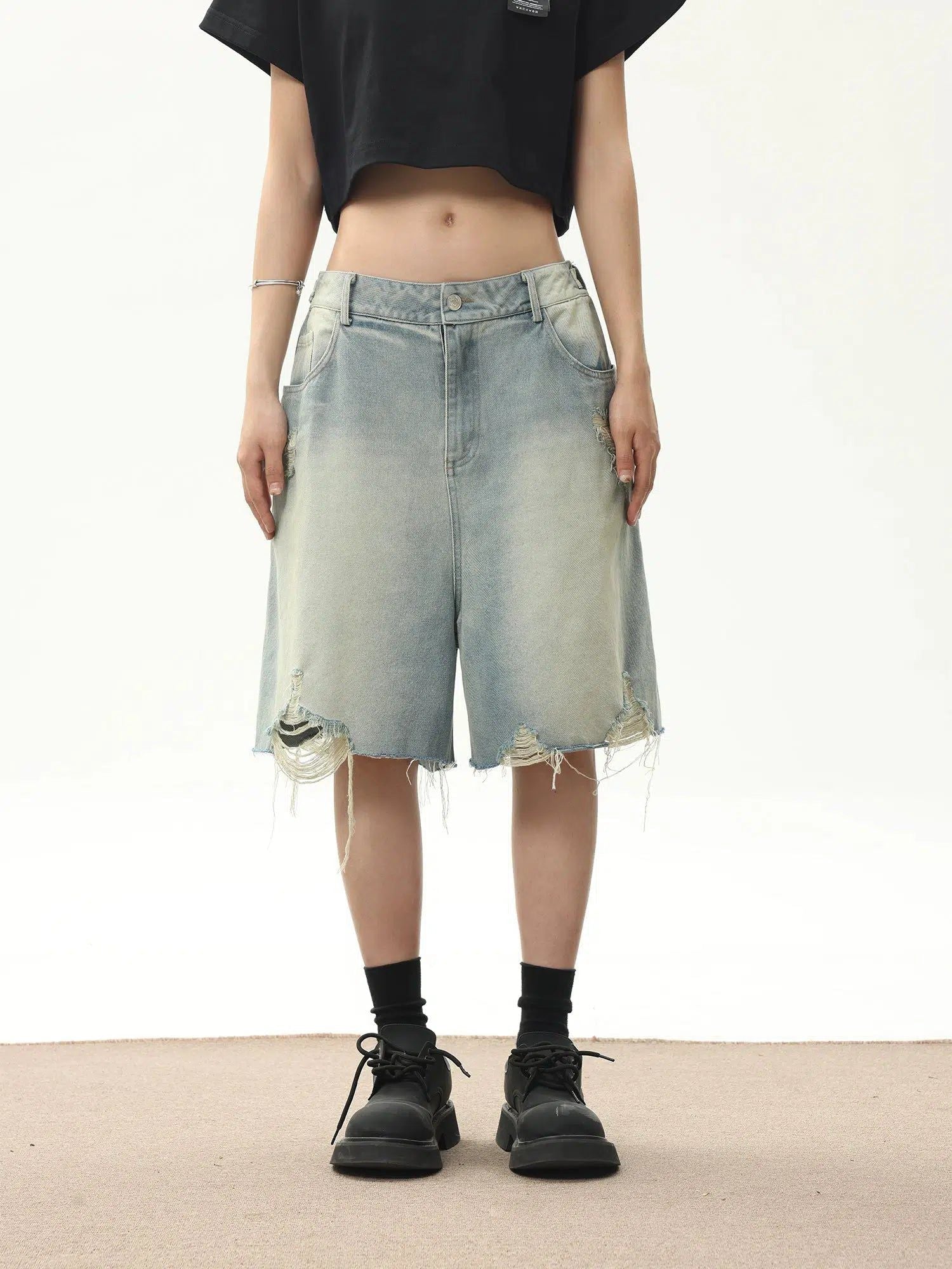 Upgrade your summer wardrobe with our Denim Shorts with Distressed Knees! Perfect for a trendy. casual look. these shorts are designed with a comfortable fit and stylishly distressed knees.