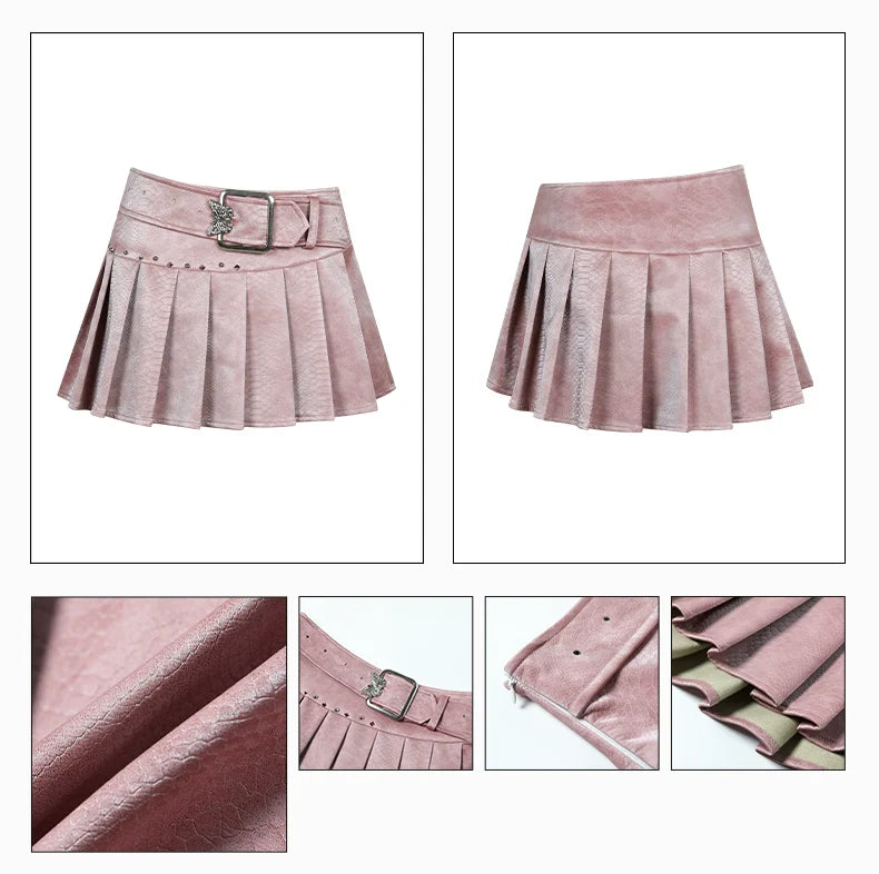 Diet Grrrl Y2K Pink Pleated Mini Skirt Set - Strapless Corset Top With Belted Skirt