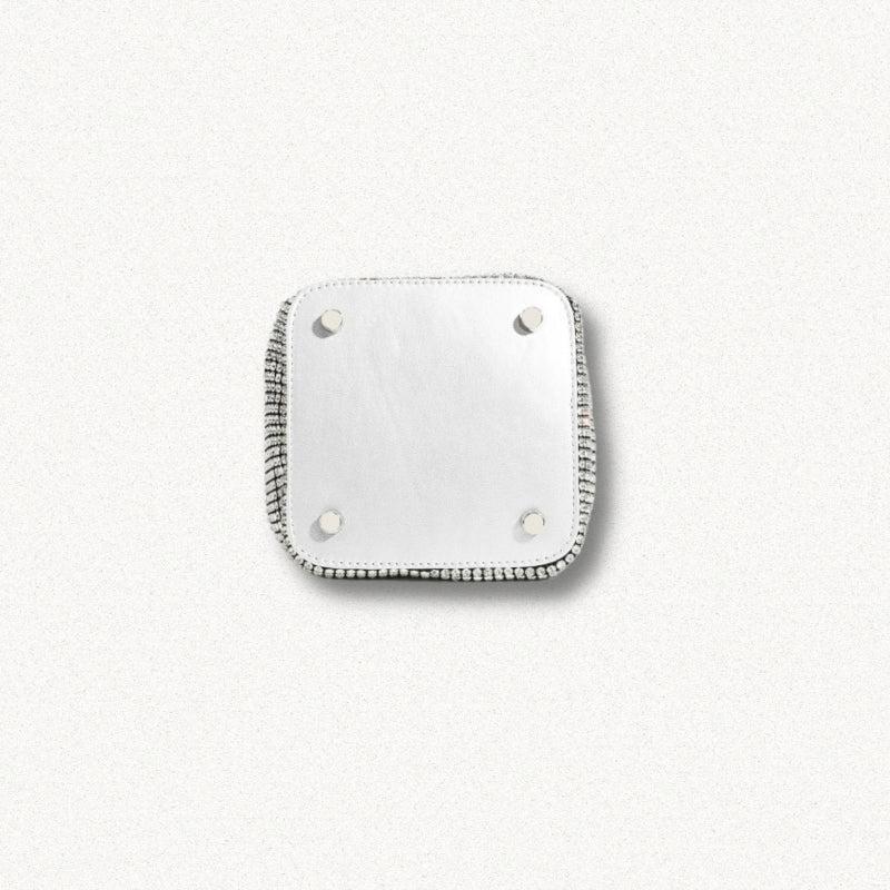 Shine on with our Disco Cowgirl Silver Rhinestone Handbag. This eye-catching silver bag features rhinestone embroidery that glistens in the light. With an adjustable strap for comfortable carry. it adds a dazzling touch to any disco cowgirl ensemble.