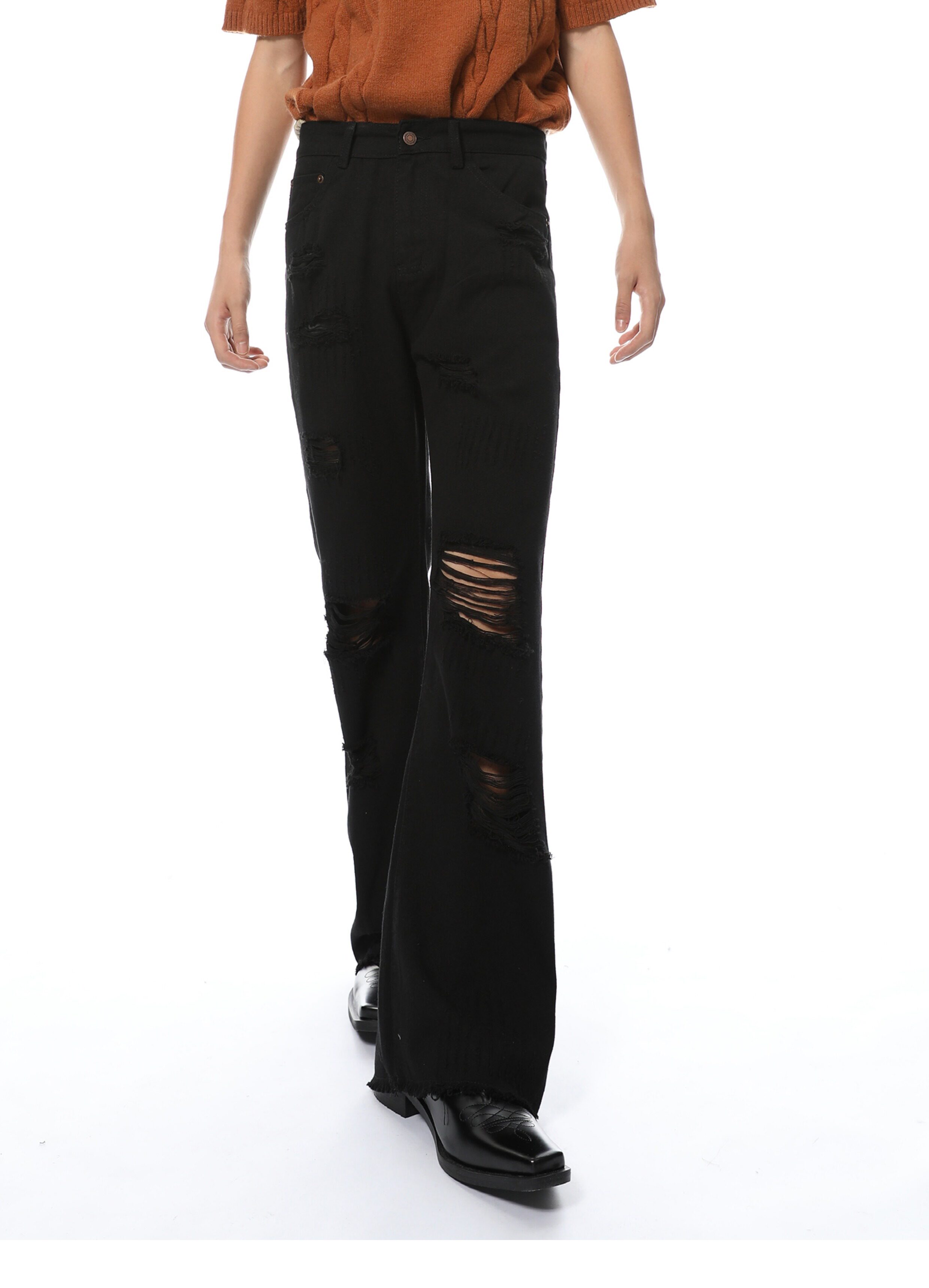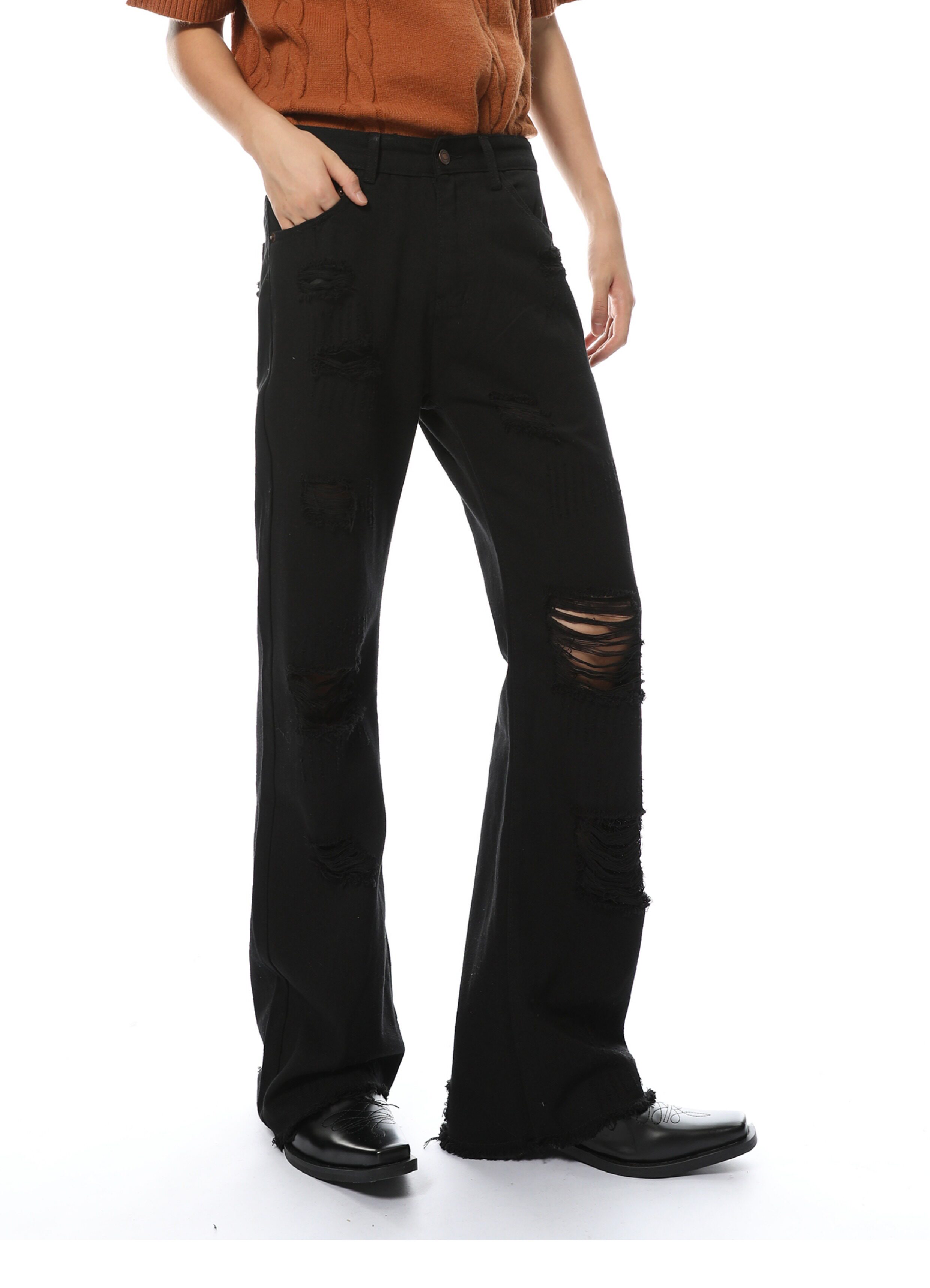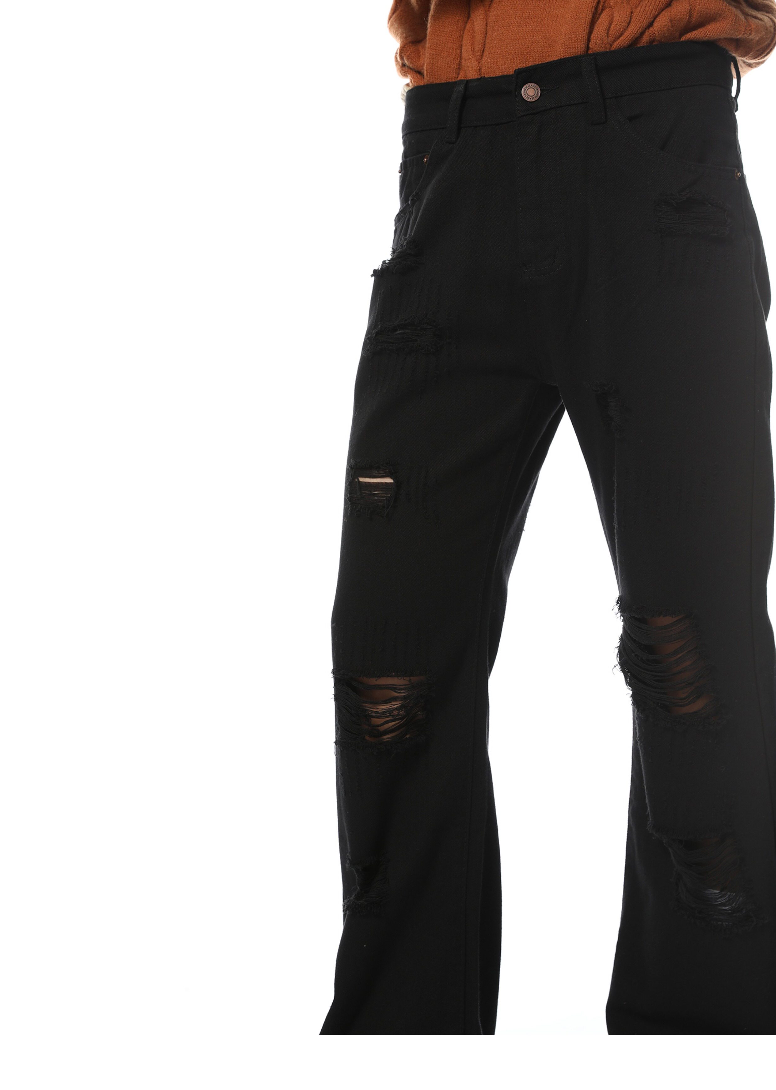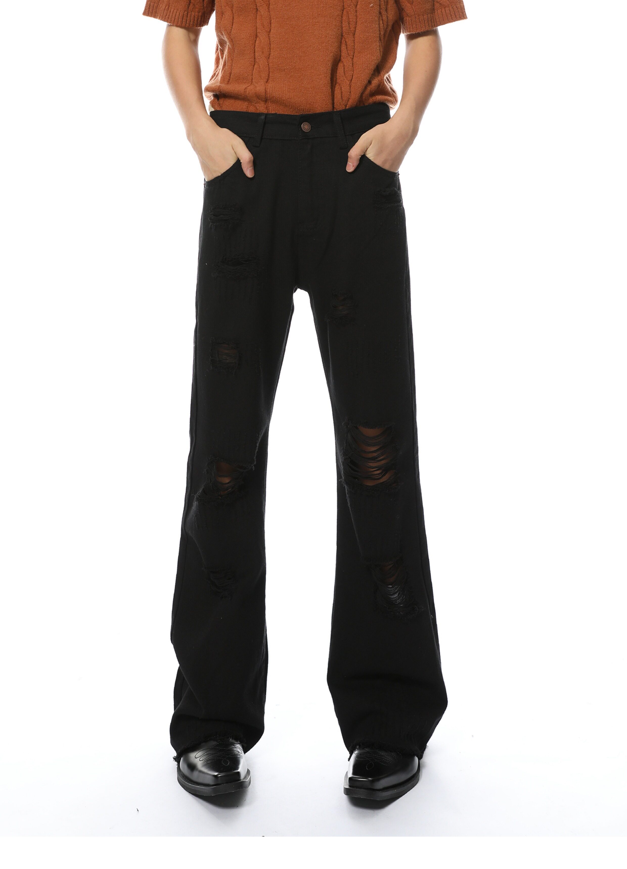 Elevate your denim game with our Distressed Black Wide-Leg Denim Jeans. Made from high-quality denim material. these jeans feature a trendy distressed design and a flattering wide-leg fit. Perfect for any occasion. these jeans will give you a chic and stylish look that never goes out of style.