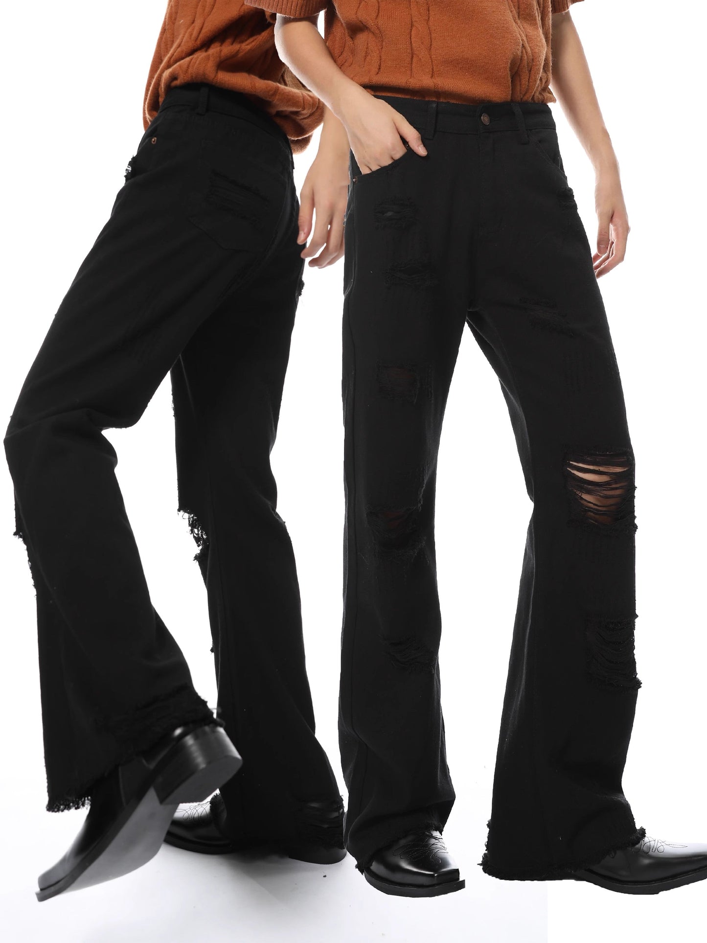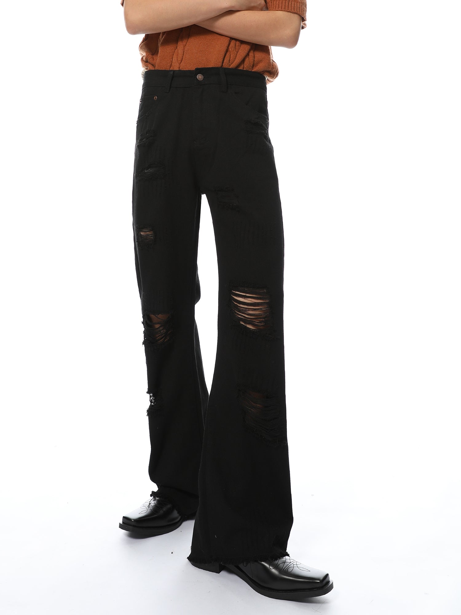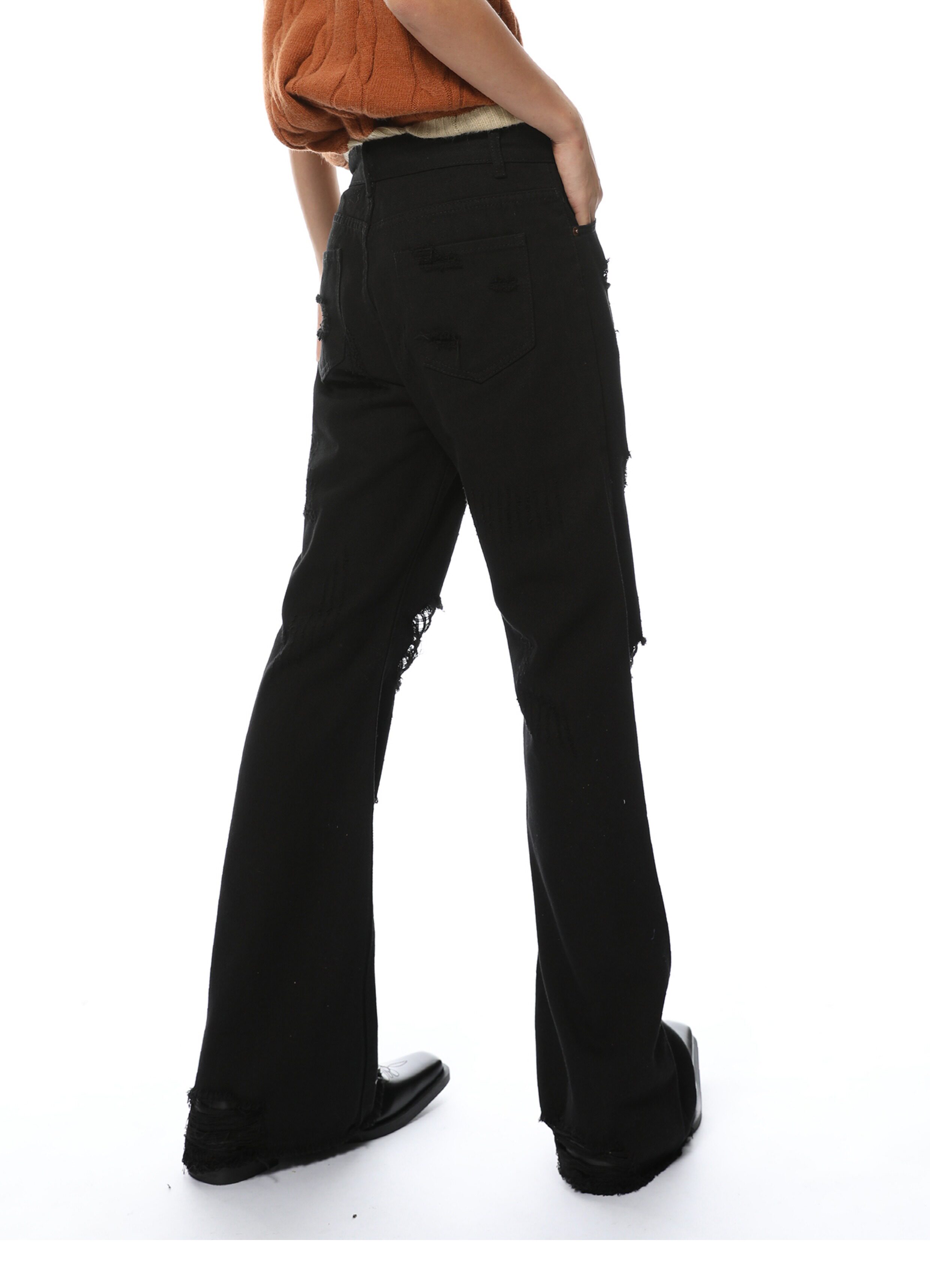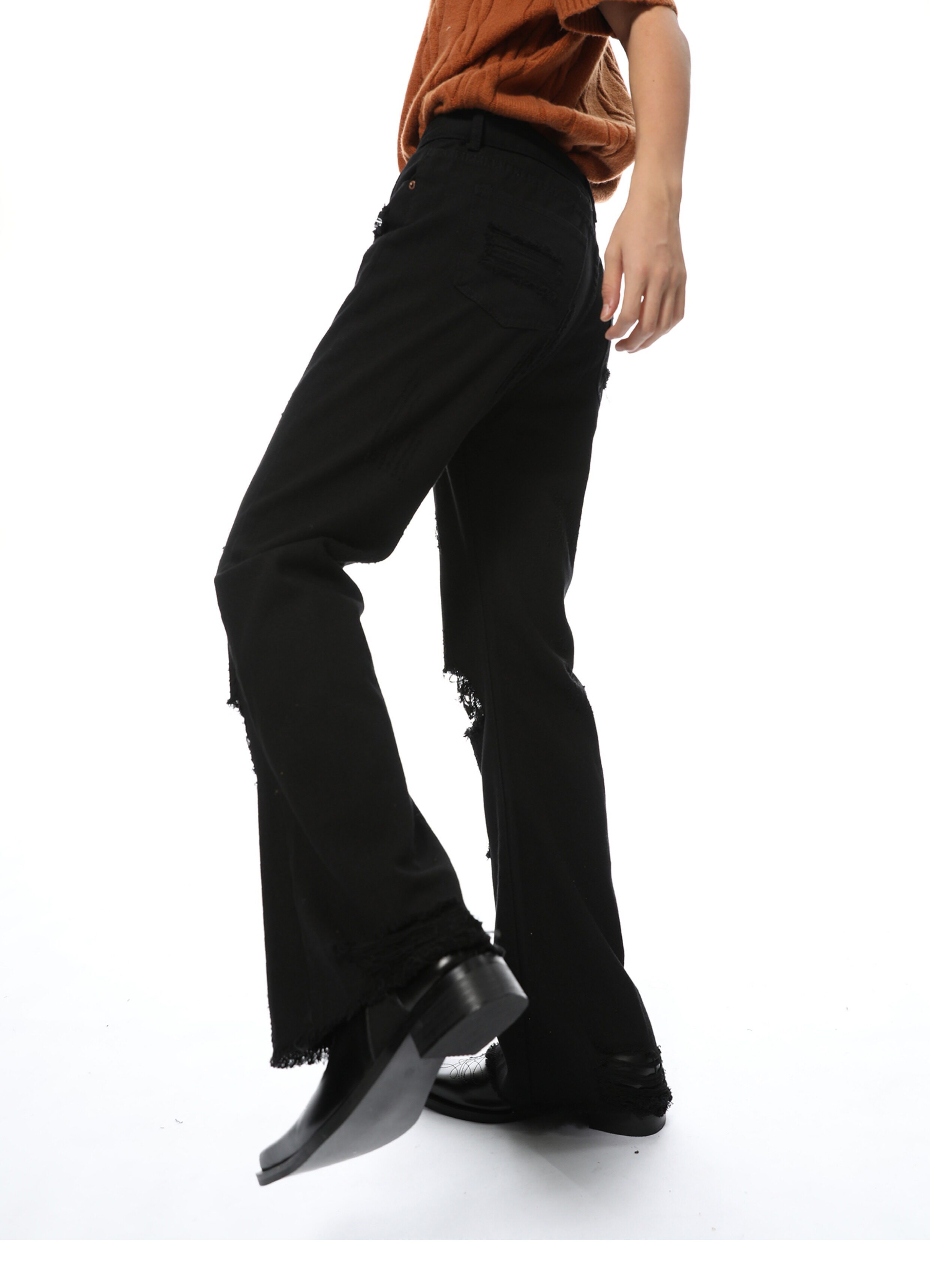 Elevate your denim game with our Distressed Black Wide-Leg Denim Jeans. Made from high-quality denim material. these jeans feature a trendy distressed design and a flattering wide-leg fit. Perfect for any occasion. these jeans will give you a chic and stylish look that never goes out of style.