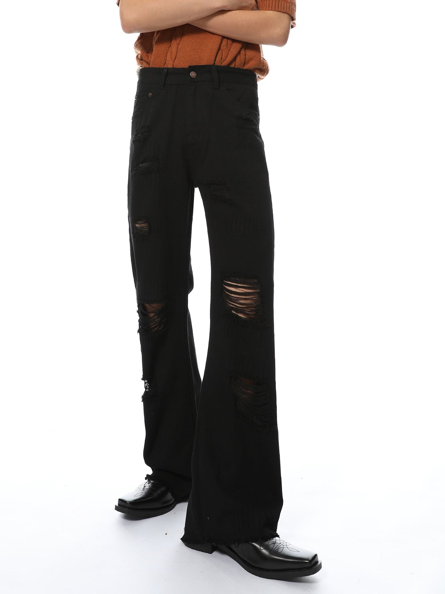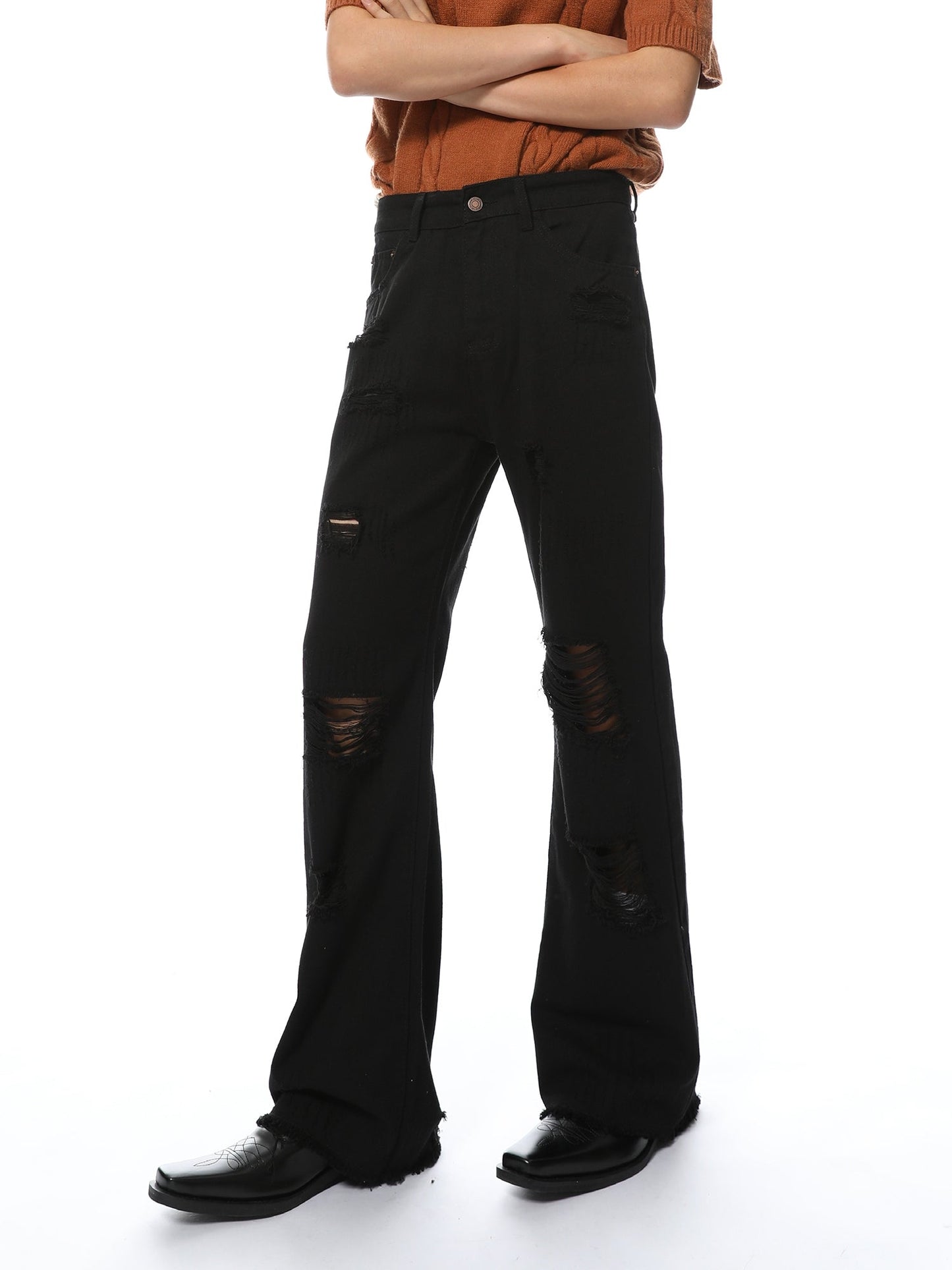 Distressed Black Wide-Leg Denim Jeans