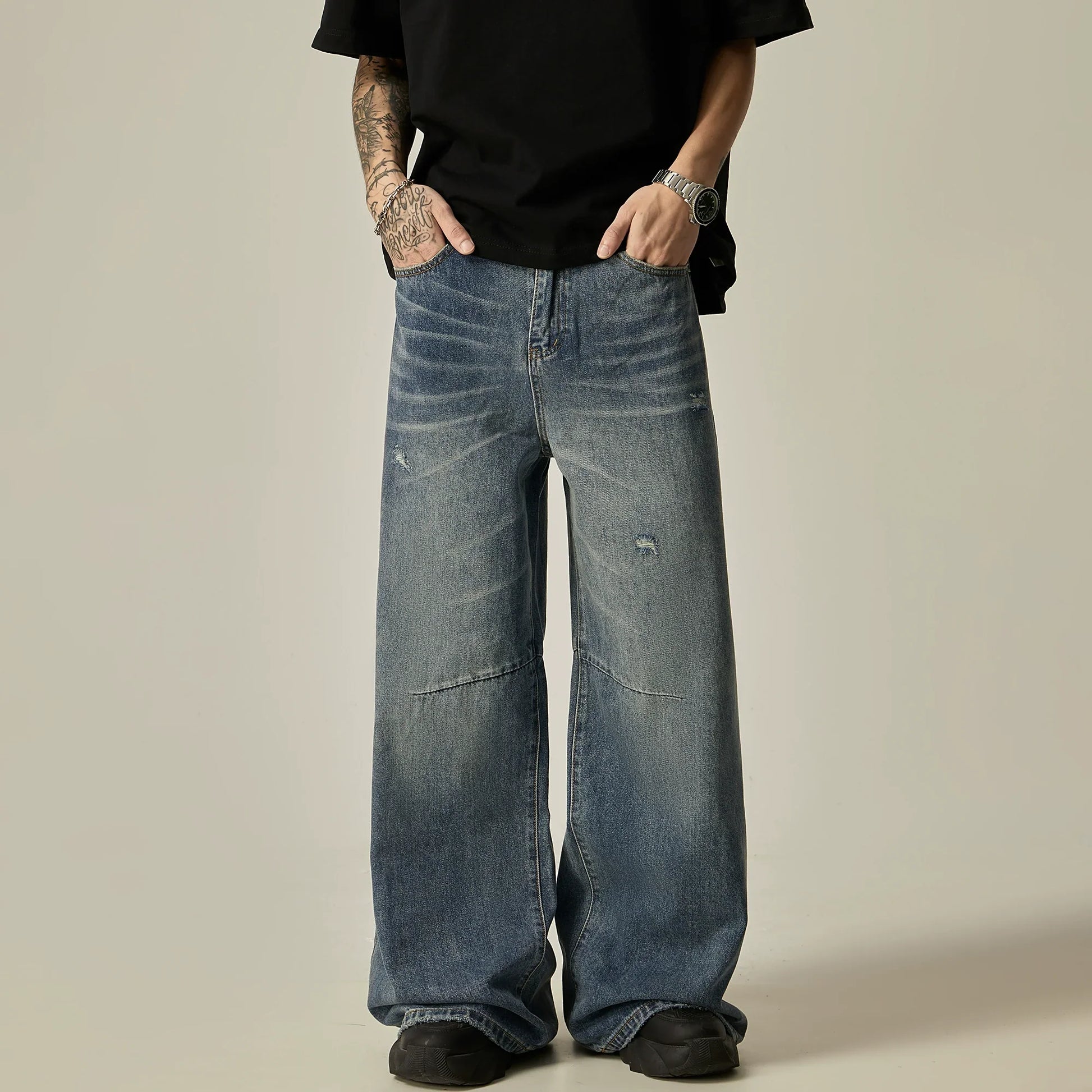 Elevate your style with our Distressed Patchwork Ultra-Wide Leg Vintage Jeans. Crafted with precision. these jeans offer a unique and vintage look with their distressed patchwork design and ultra-wide leg fit. Show off your fashion expertise and stand out from the crowd with these statement jeans.