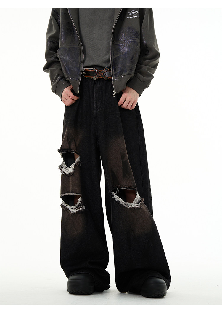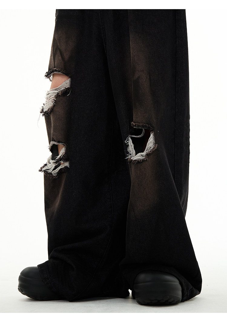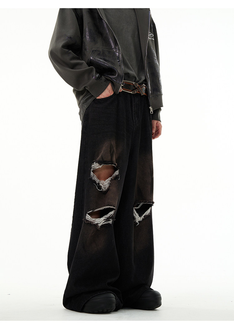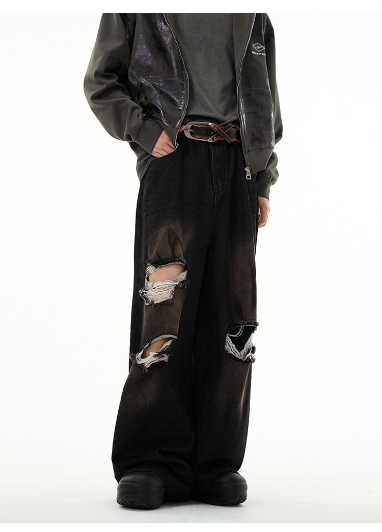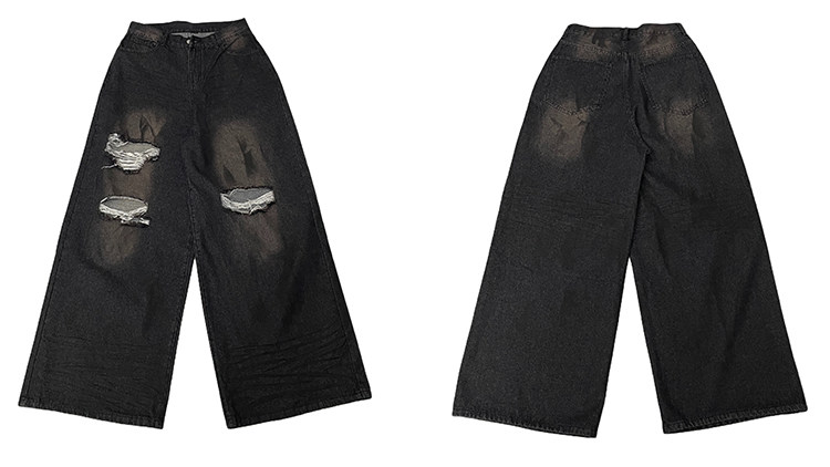 Make a bold statement with our Distressed Wide-Leg Denim Jeans. Featuring stylish rips and a relaxed wide-leg fit. these jeans offer a perfect blend of edgy and comfortable. Crafted from durable denim. they provide a contemporary look that's perfect for casual outings or a night out.