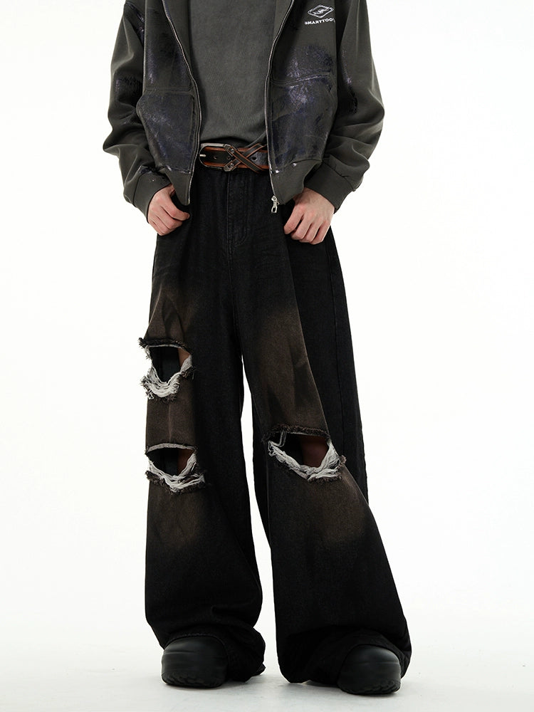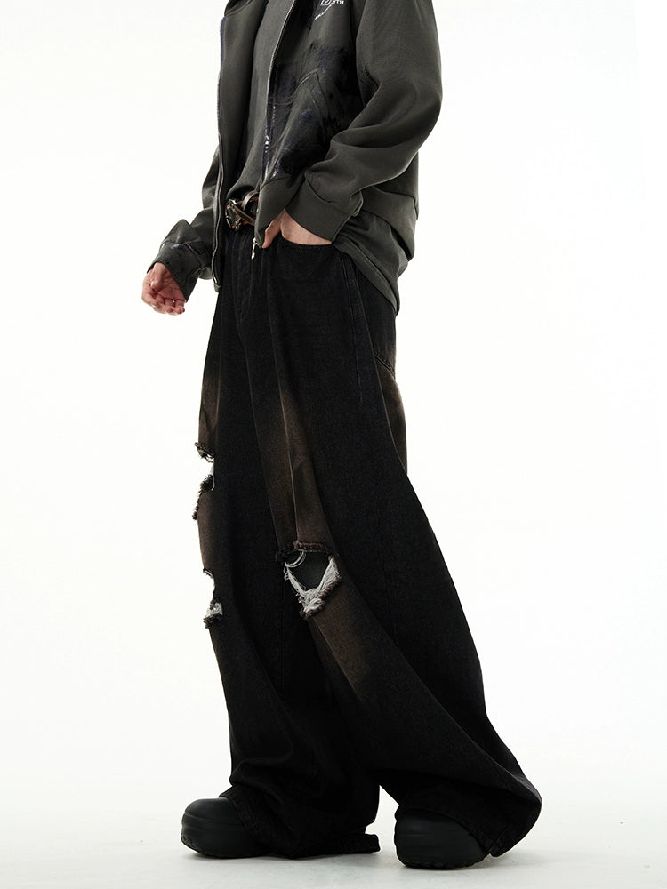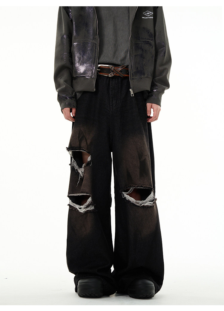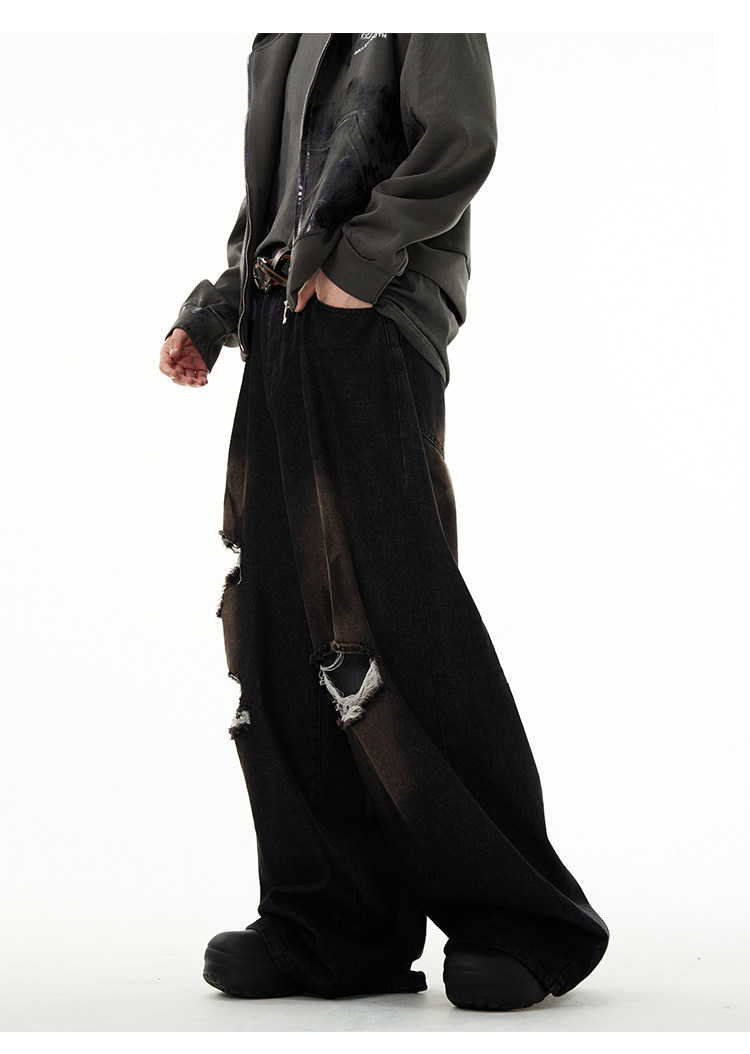 Make a bold statement with our Distressed Wide-Leg Denim Jeans. Featuring stylish rips and a relaxed wide-leg fit. these jeans offer a perfect blend of edgy and comfortable. Crafted from durable denim. they provide a contemporary look that's perfect for casual outings or a night out.