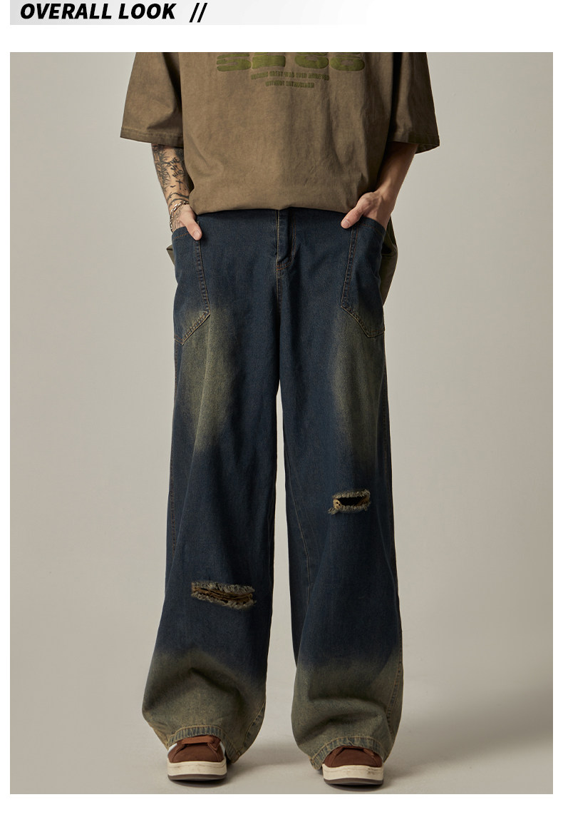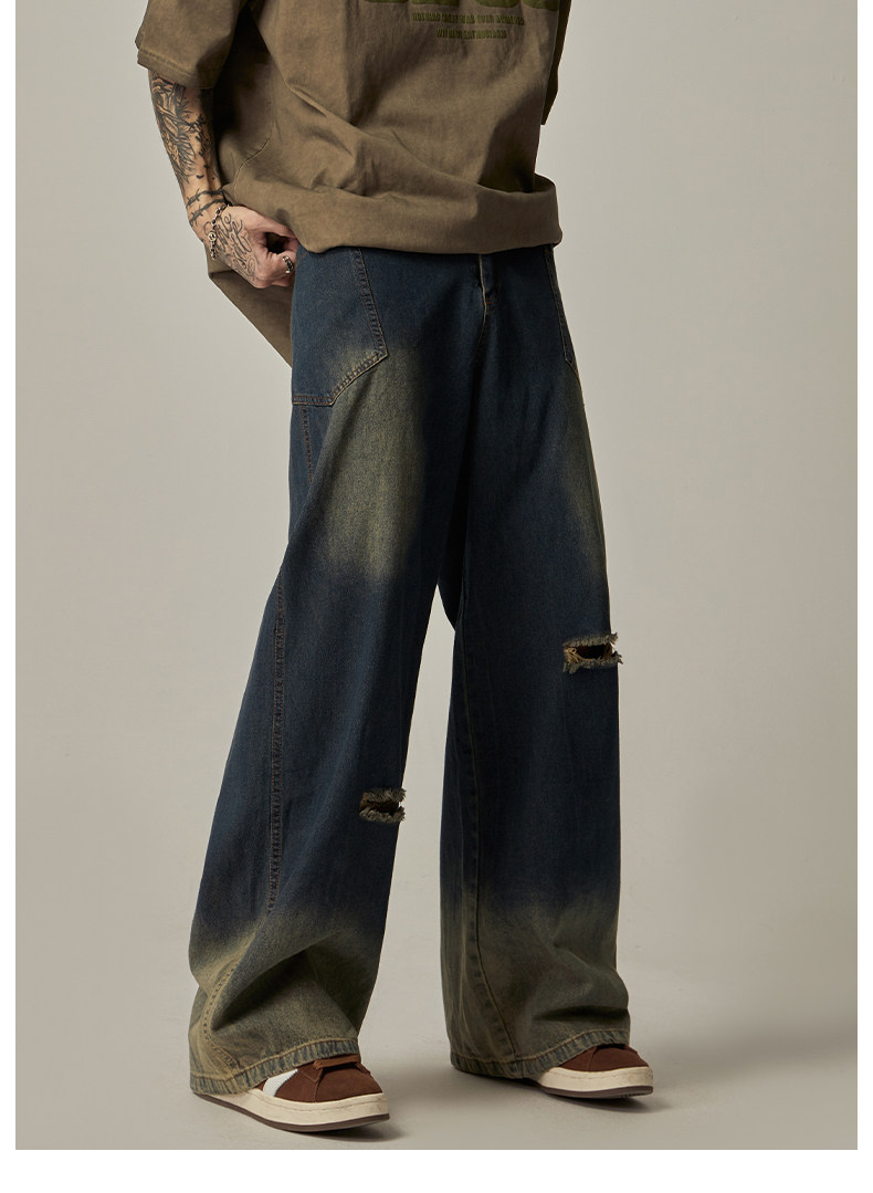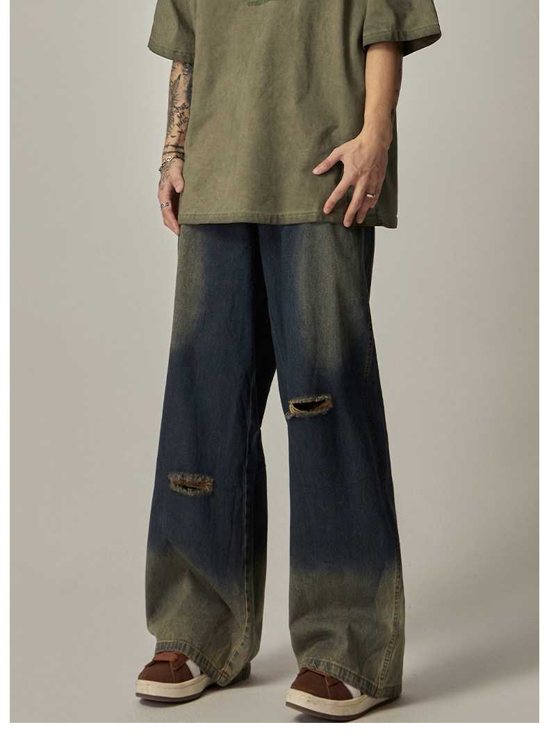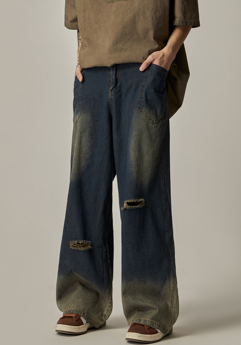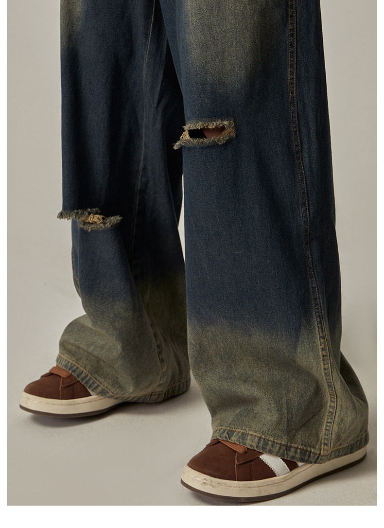 Transform your denim game with these Distressed Wide-Leg Ombre Denim Jeans. The unique ombre design and distressed details add a stylish touch to this classic wardrobe staple. Embrace your playful side and stand out from the crowd in these quirky and fun jeans. (2 exclamation points)