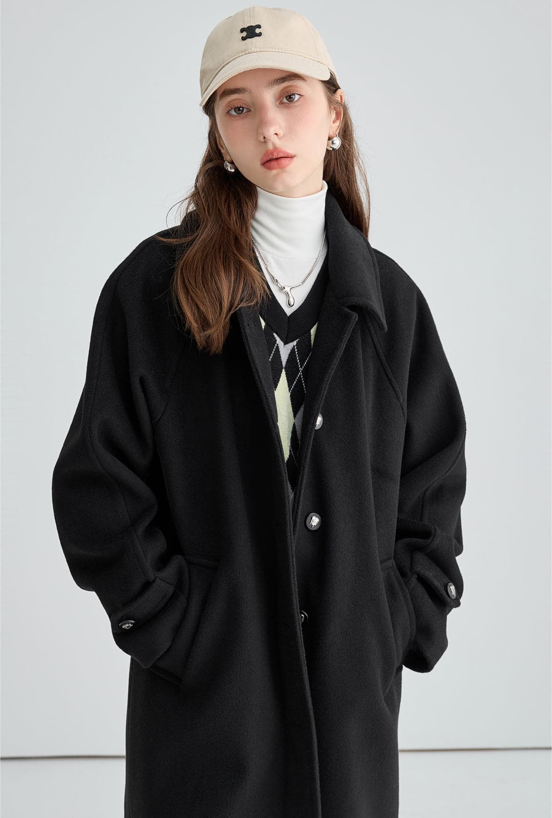 Stay warm and stylish with our Drop Shoulder Sten Collar Coat. Its relaxed. oversized silhouette makes it perfect for layering. while the sten collar adds a touch of sophistication. Upgrade your outerwear game with this versatile and cozy coat.