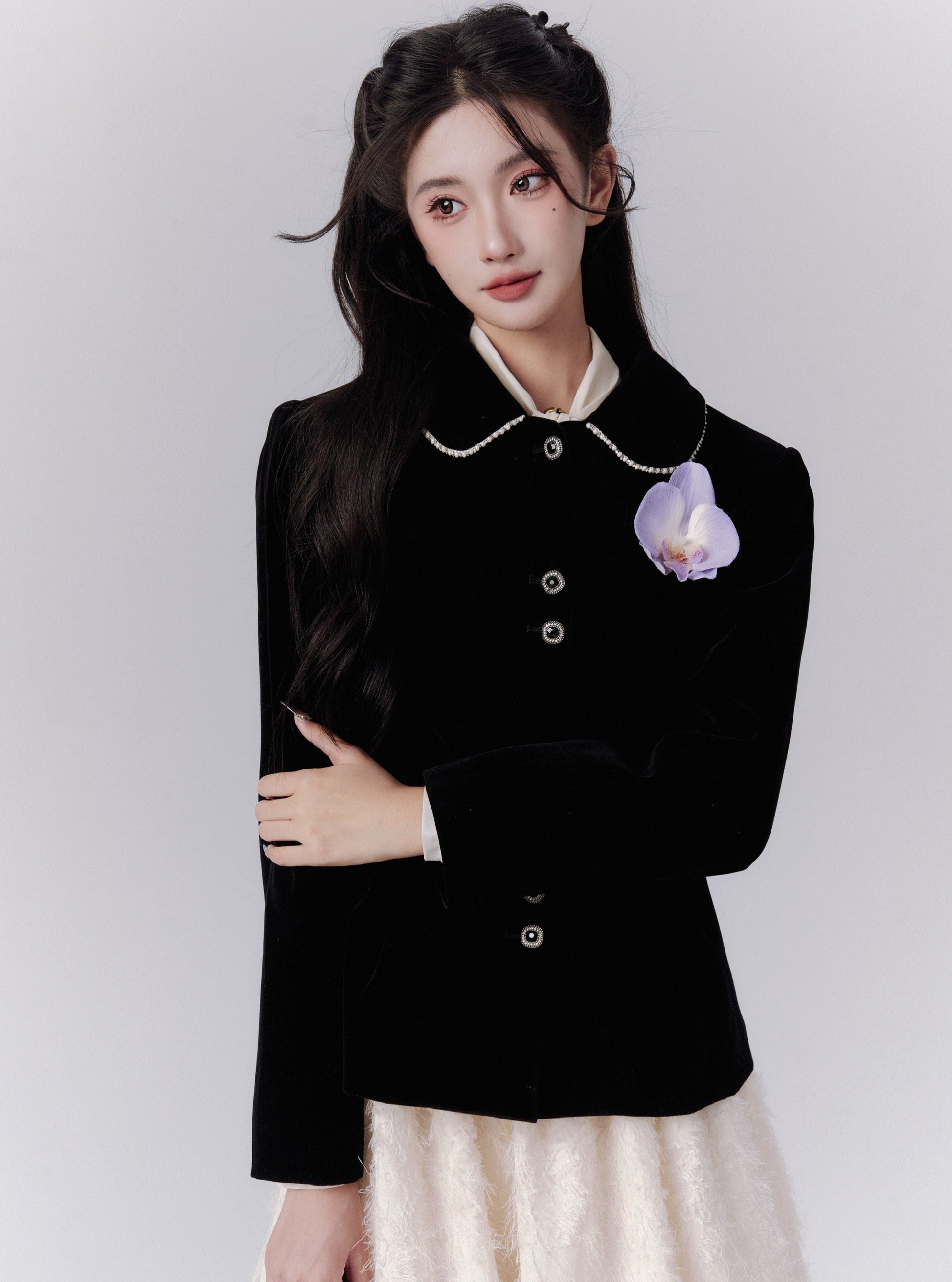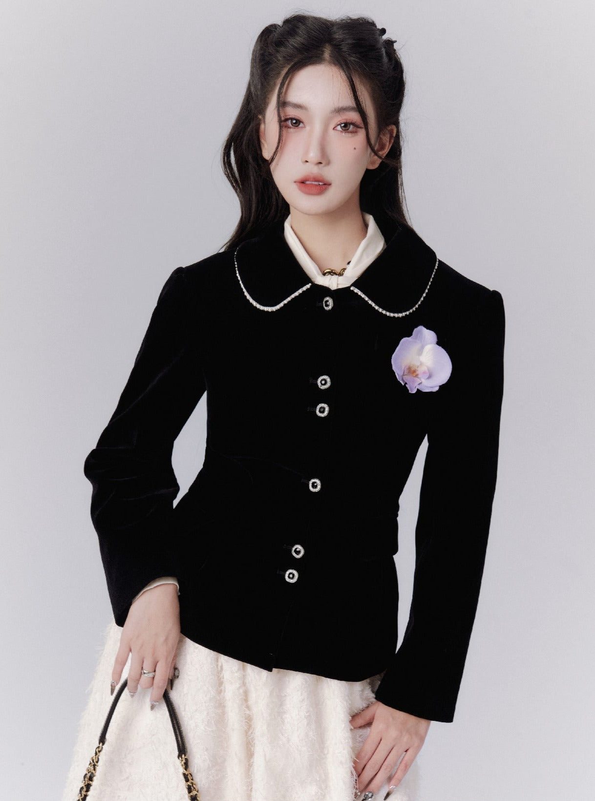 This elegant black fitted blazer with floral brooch is a versatile piece that adds a touch of sophistication to any outfit. Made with high-quality materials. it features a sleek and tailored fit. while the floral brooch adds a delicate and feminine touch. Perfect for any occasion. this blazer is a must-have for any fashion-forward individual.