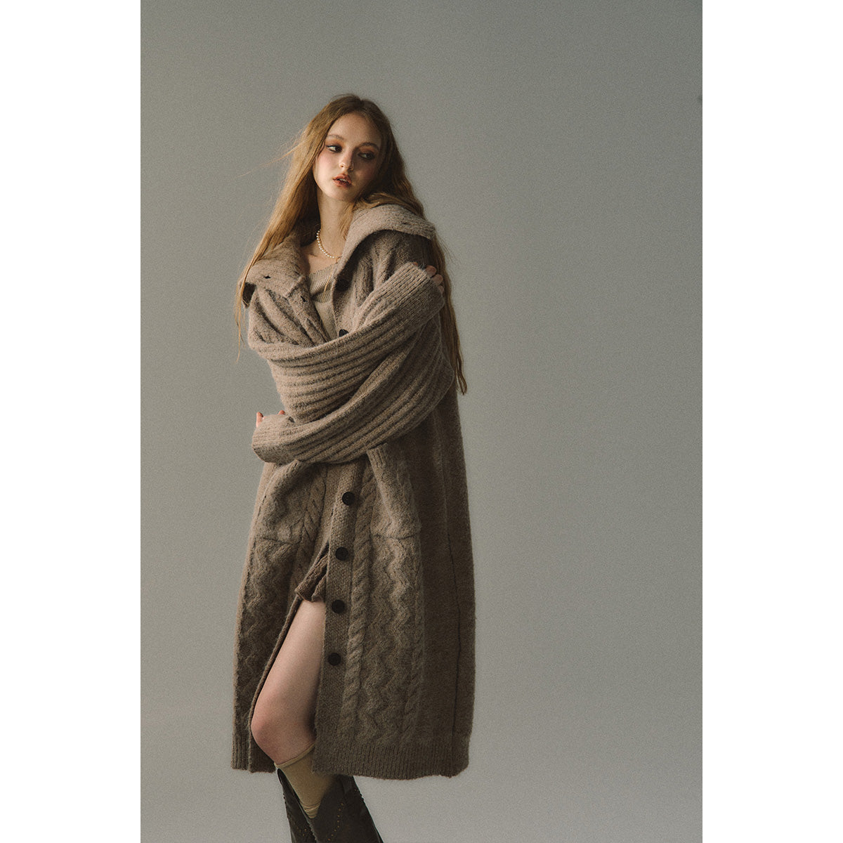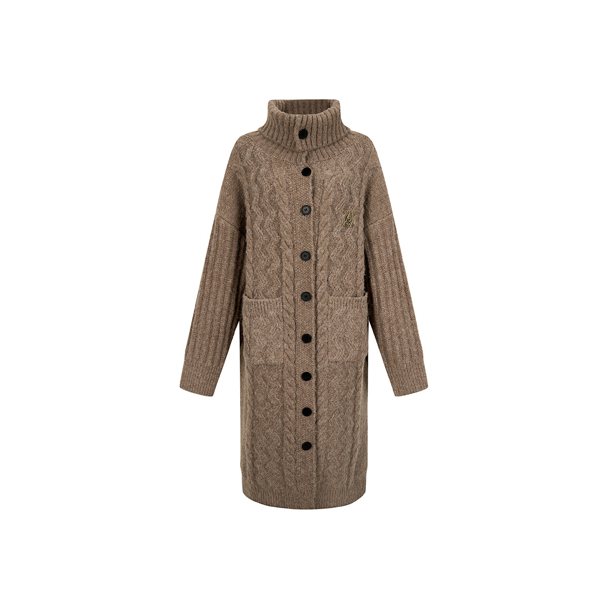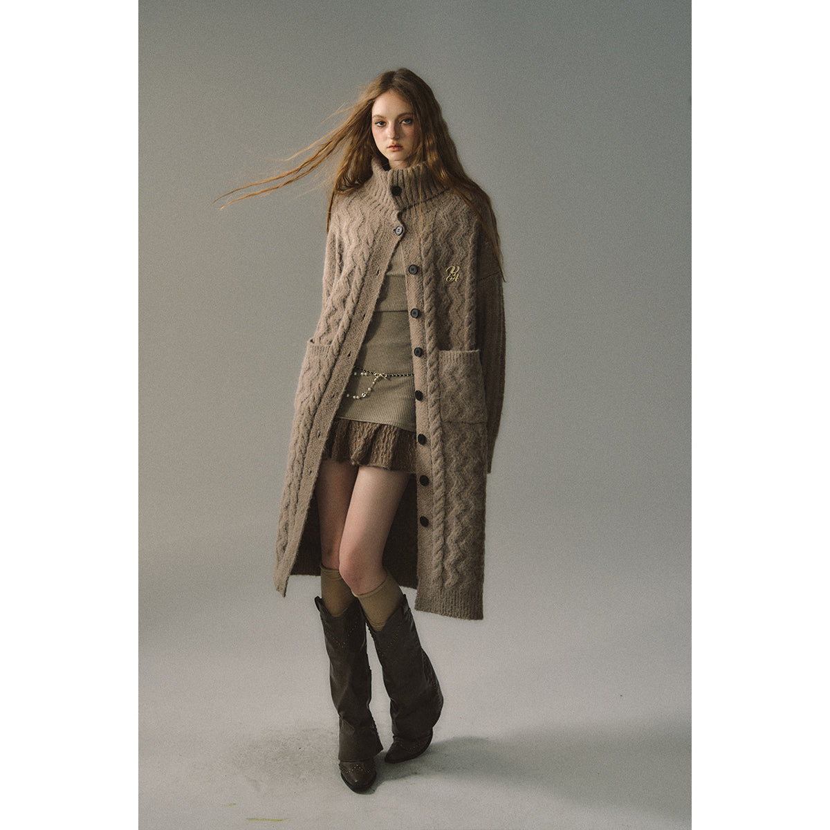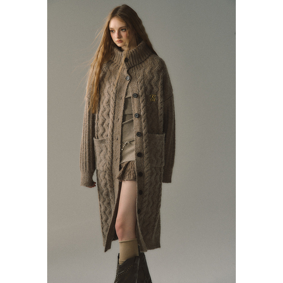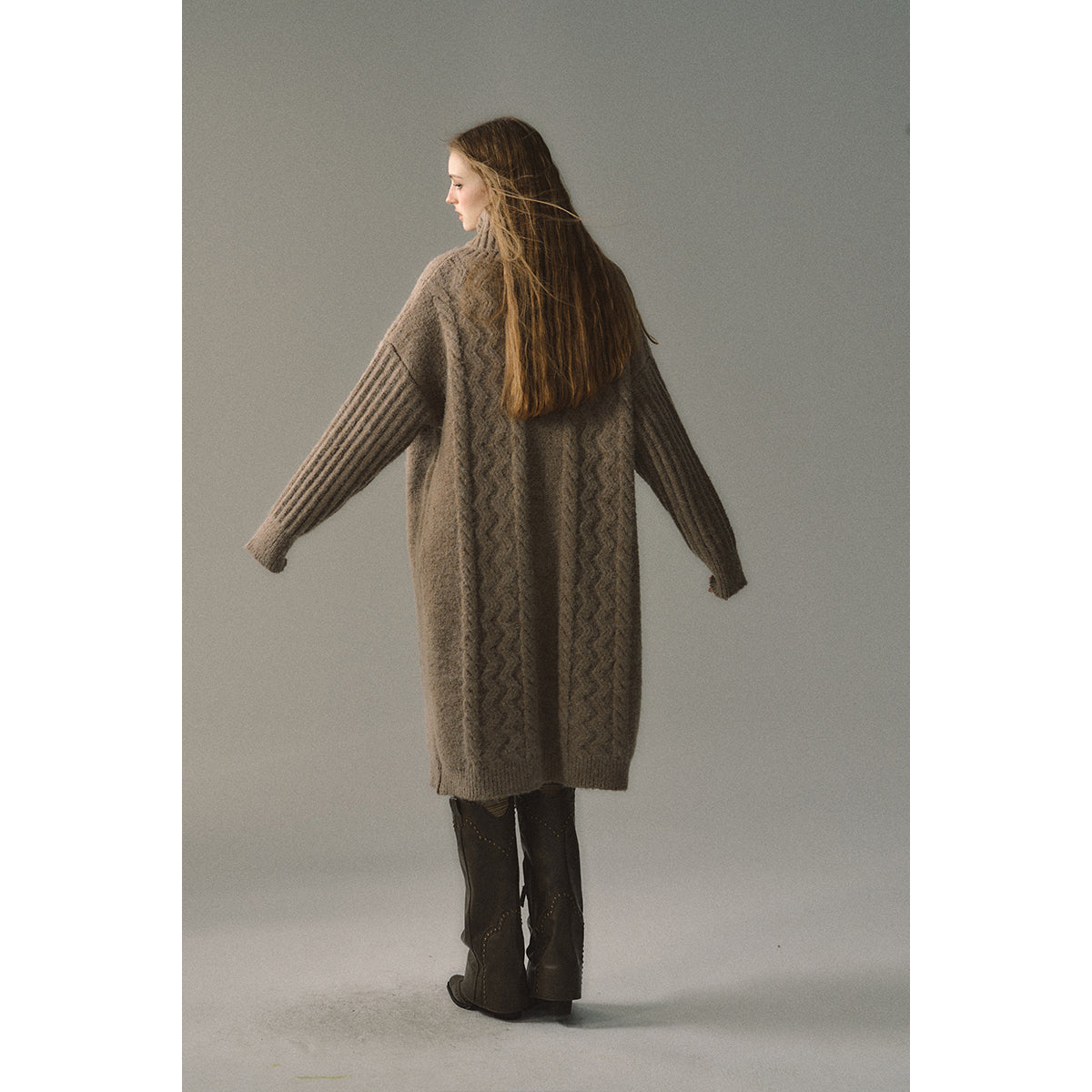 Via Pitti Turtleneck Twisted Knit Long Coat Khaki