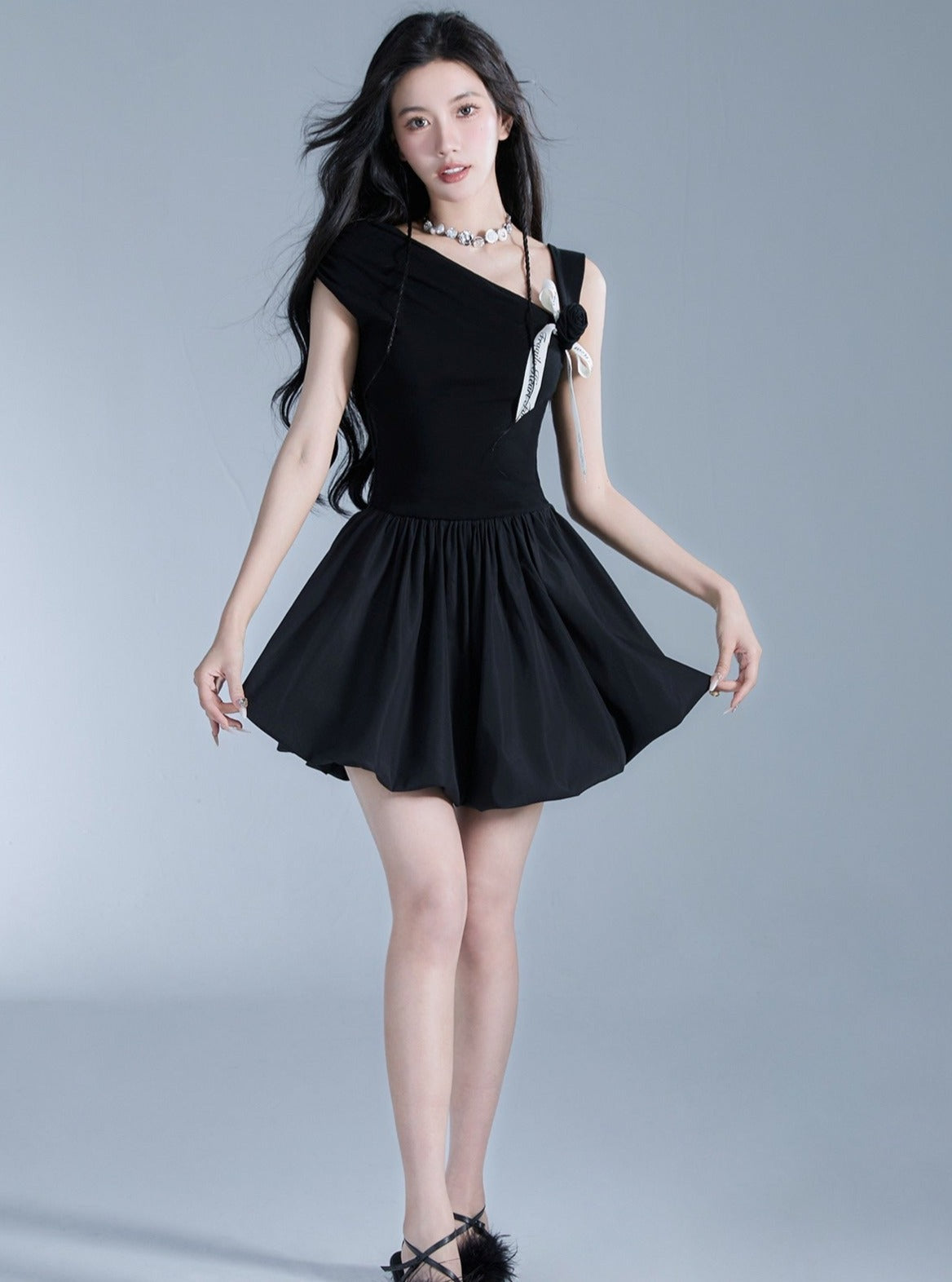 This elegant off-shoulder black mini dress features a contrast bow detail. adding a touch of sophistication to the look. Perfect for any special occasion. the off-shoulder design is both stylish and trendy. Its versatile style can be dressed up or down. making it a must-have for any wardrobe.