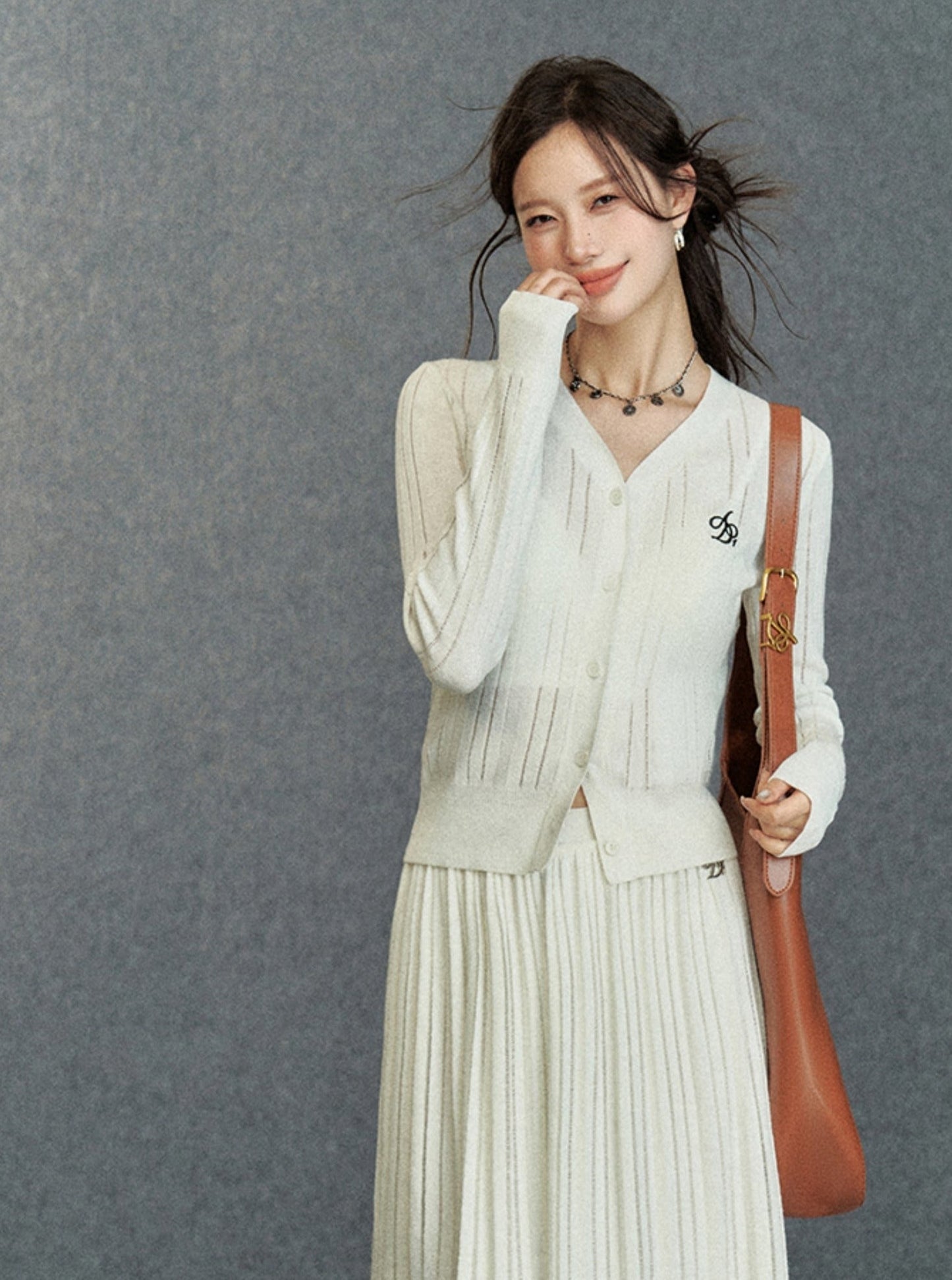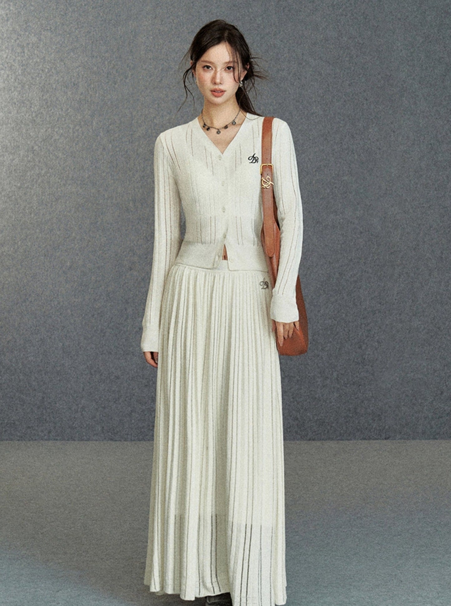 This elegant ribbed cardigan features a classic V-neck design and signature embroidery. making it a timeless and sophisticated addition to any wardrobe. Crafted with high-quality materials. this cardigan offers both comfort and style. perfect for any occasion. Elevate your attire with this classic piece.