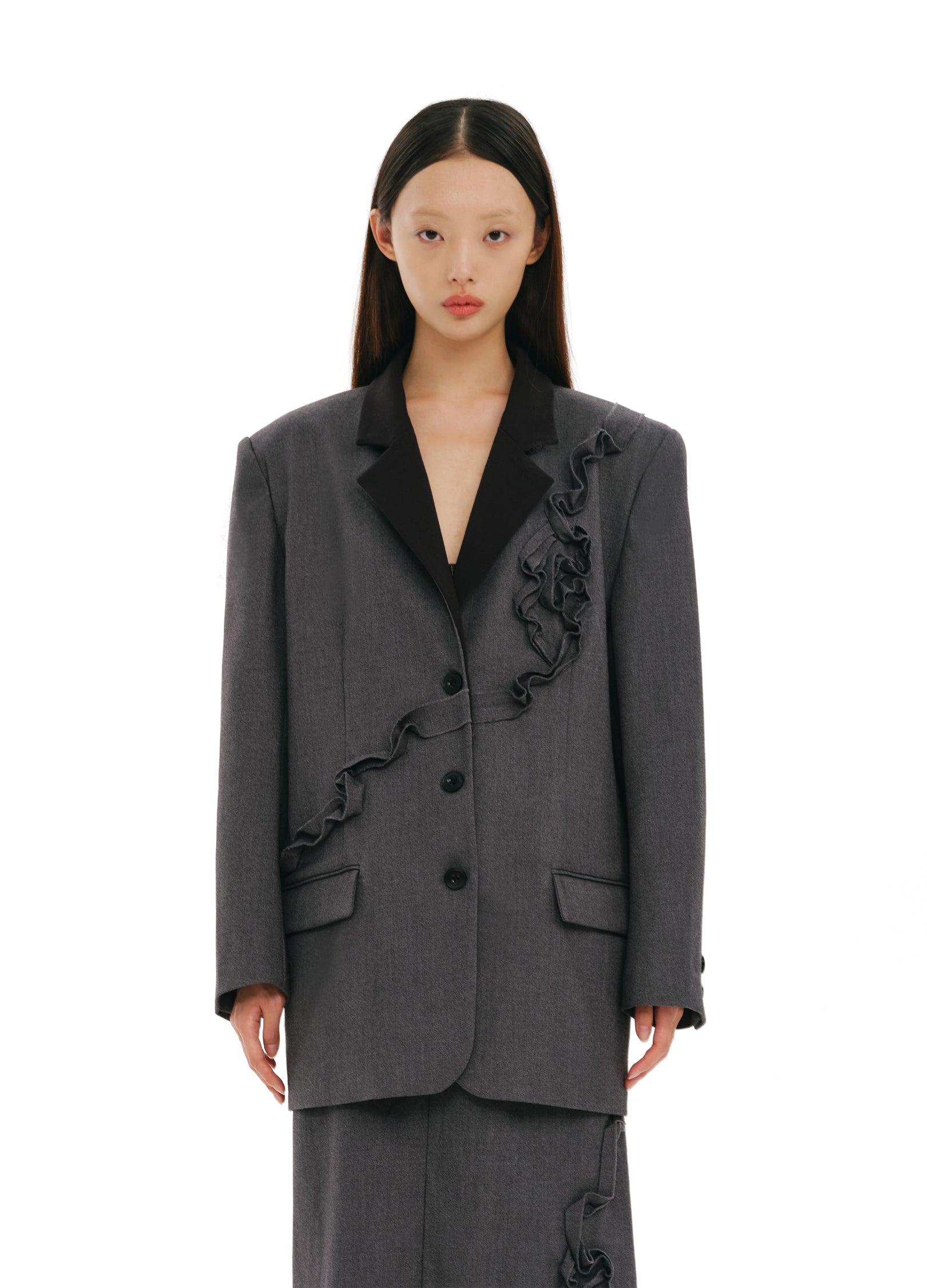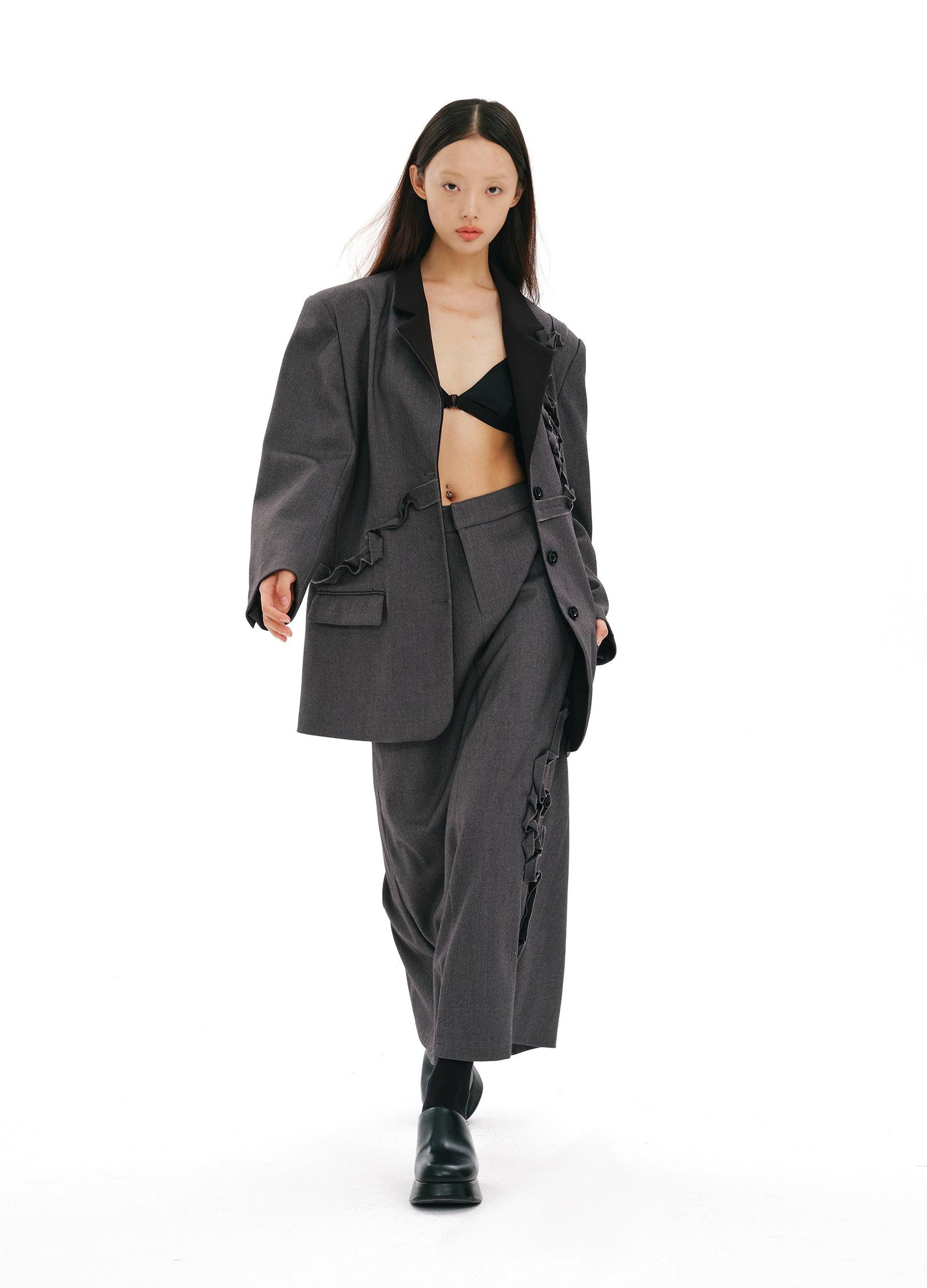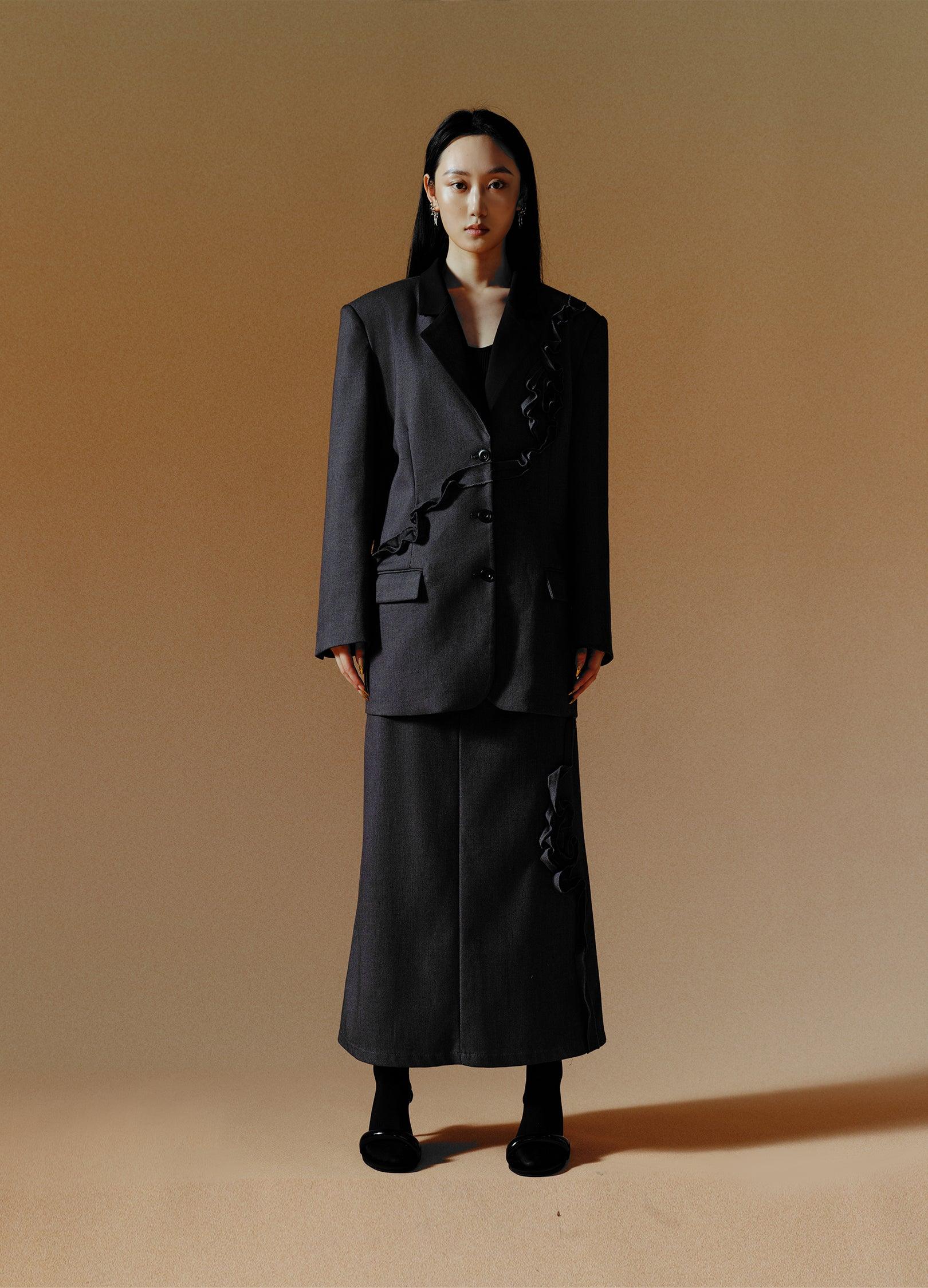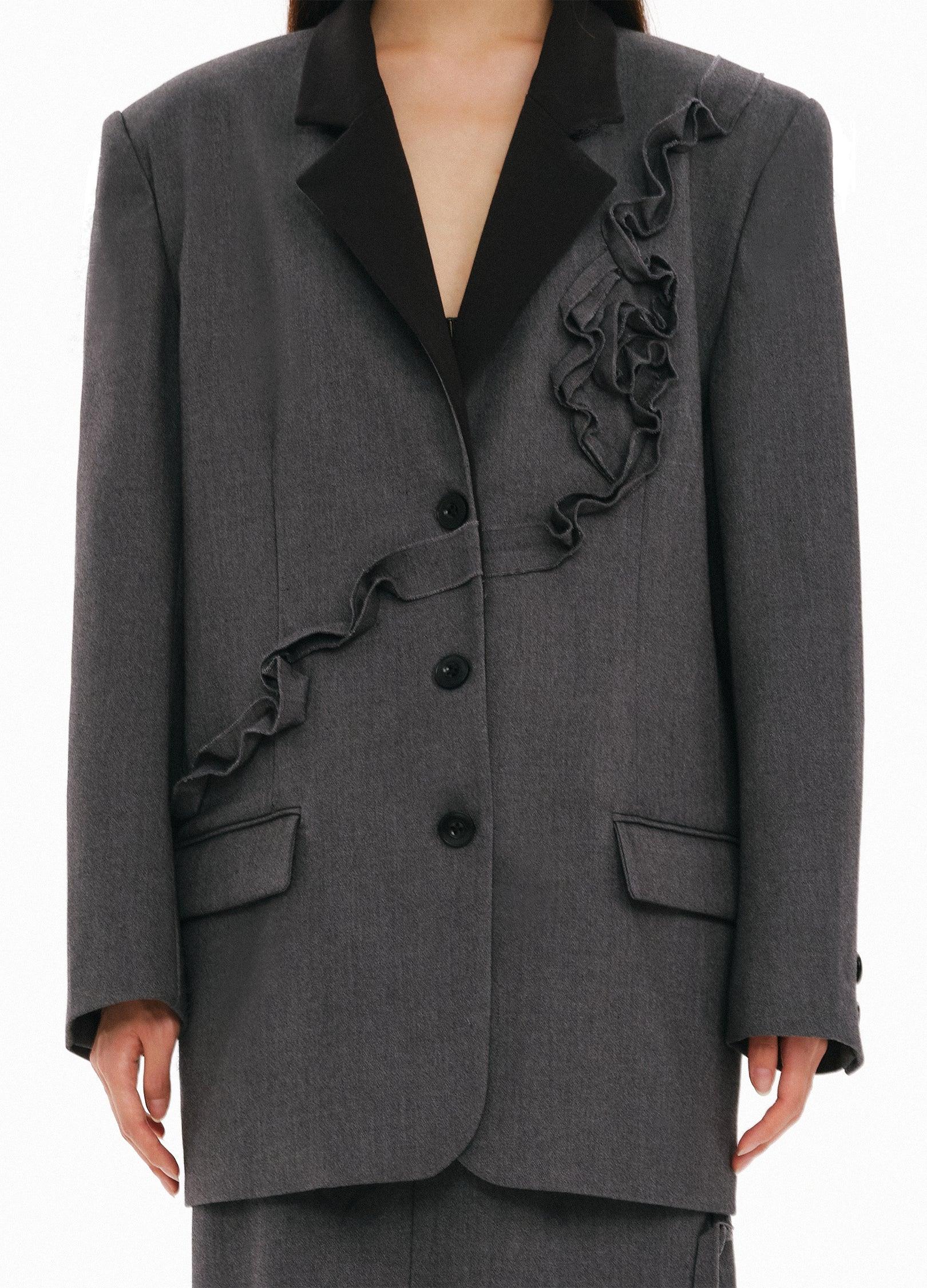 The Elegant Rose Lace Oversized Blazer is a must-have for any wardrobe. Featuring a black lapel collar. oversized boxy fit. and a stunning hand-made lace rose design. this blazer exudes sophistication. It comes with two flap pockets. a three-button closure. and is made from a blend of cotton. polyester. and nylon for comfort and durability. Available in dark gray. this blazer is perfect for any occasion.
