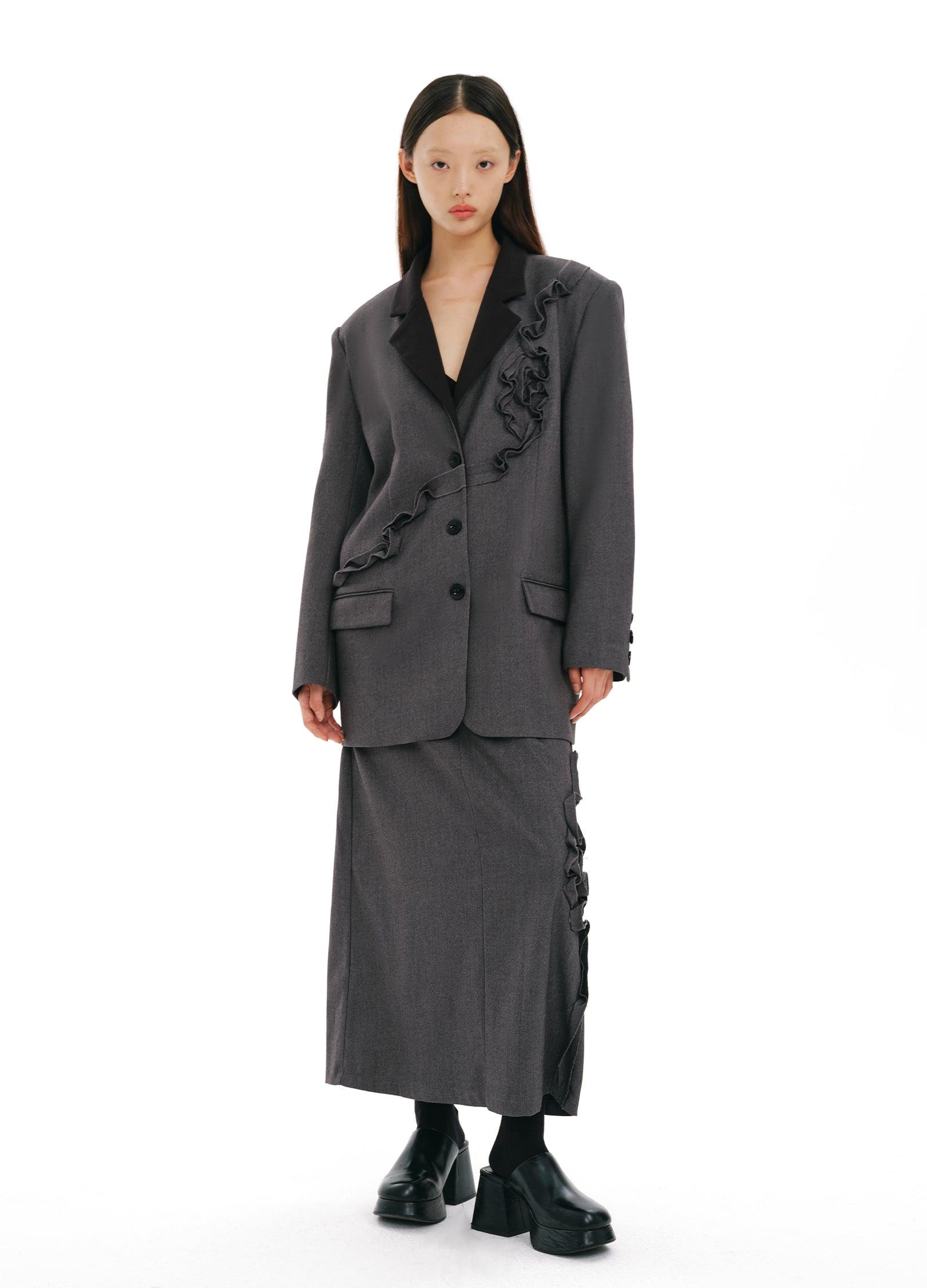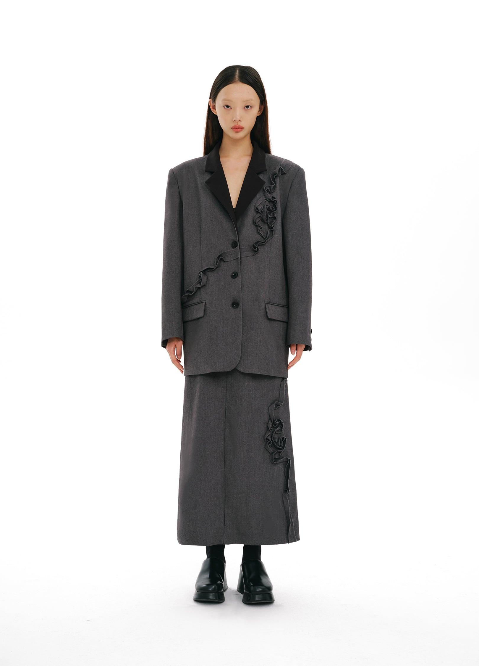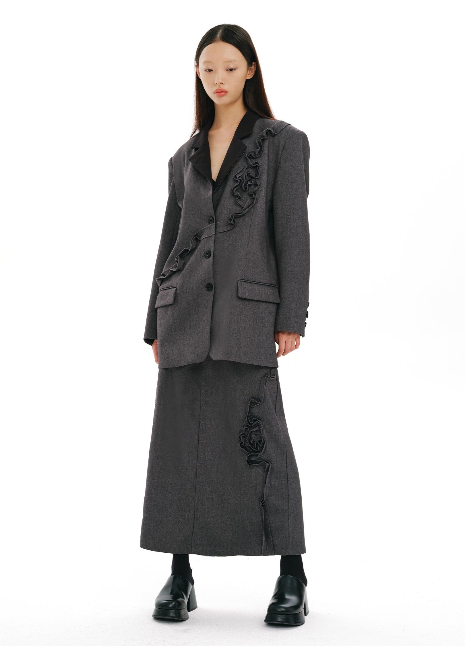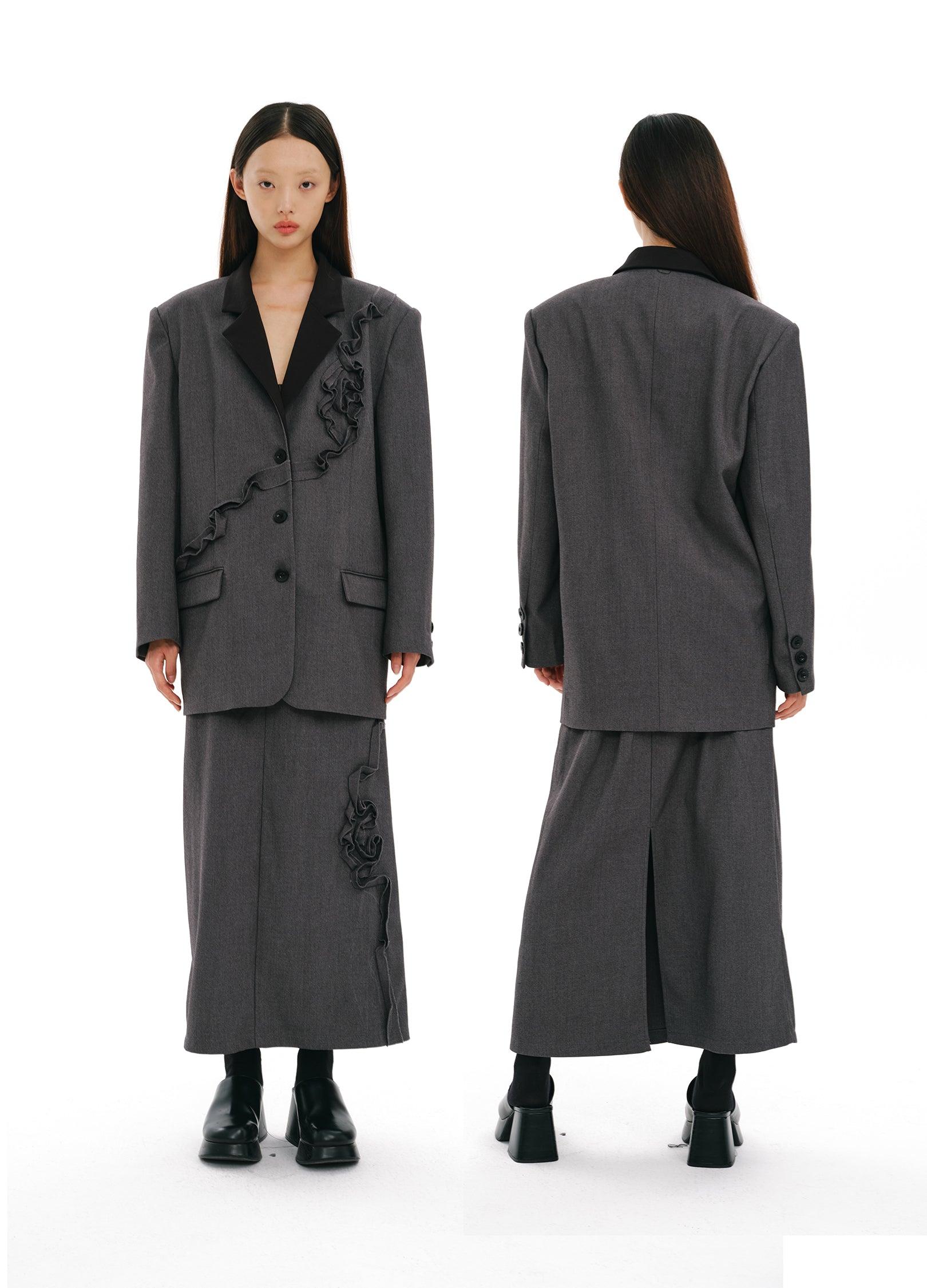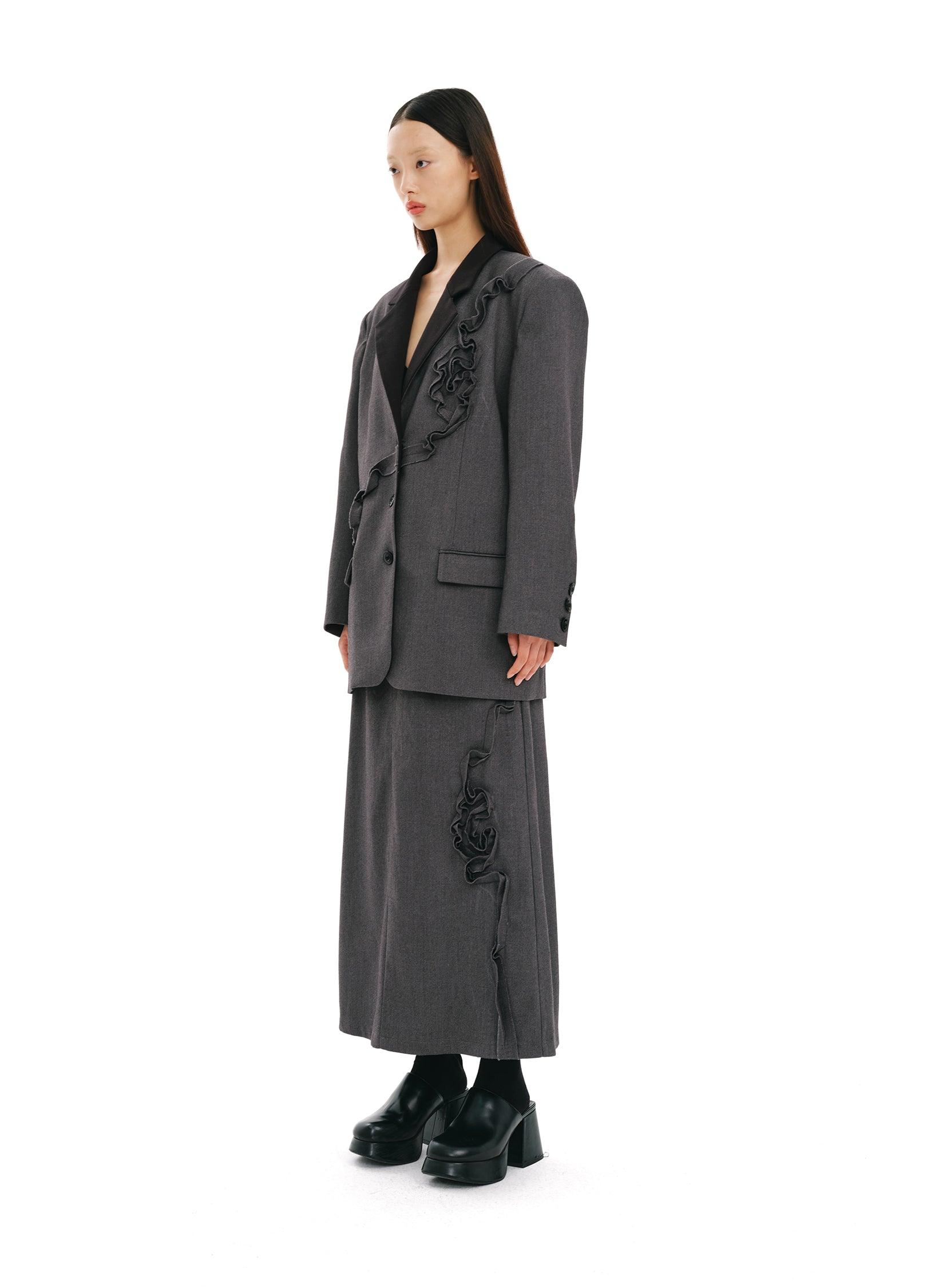 The Elegant Rose Lace Oversized Blazer is a must-have for any wardrobe. Featuring a black lapel collar. oversized boxy fit. and a stunning hand-made lace rose design. this blazer exudes sophistication. It comes with two flap pockets. a three-button closure. and is made from a blend of cotton. polyester. and nylon for comfort and durability. Available in dark gray. this blazer is perfect for any occasion.