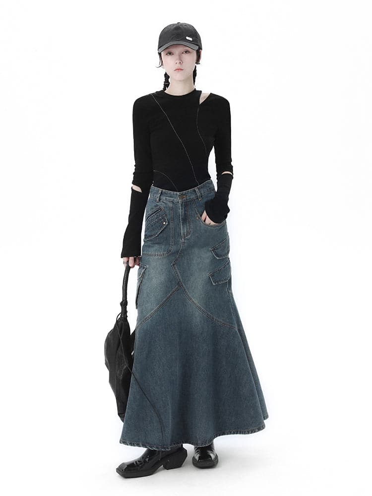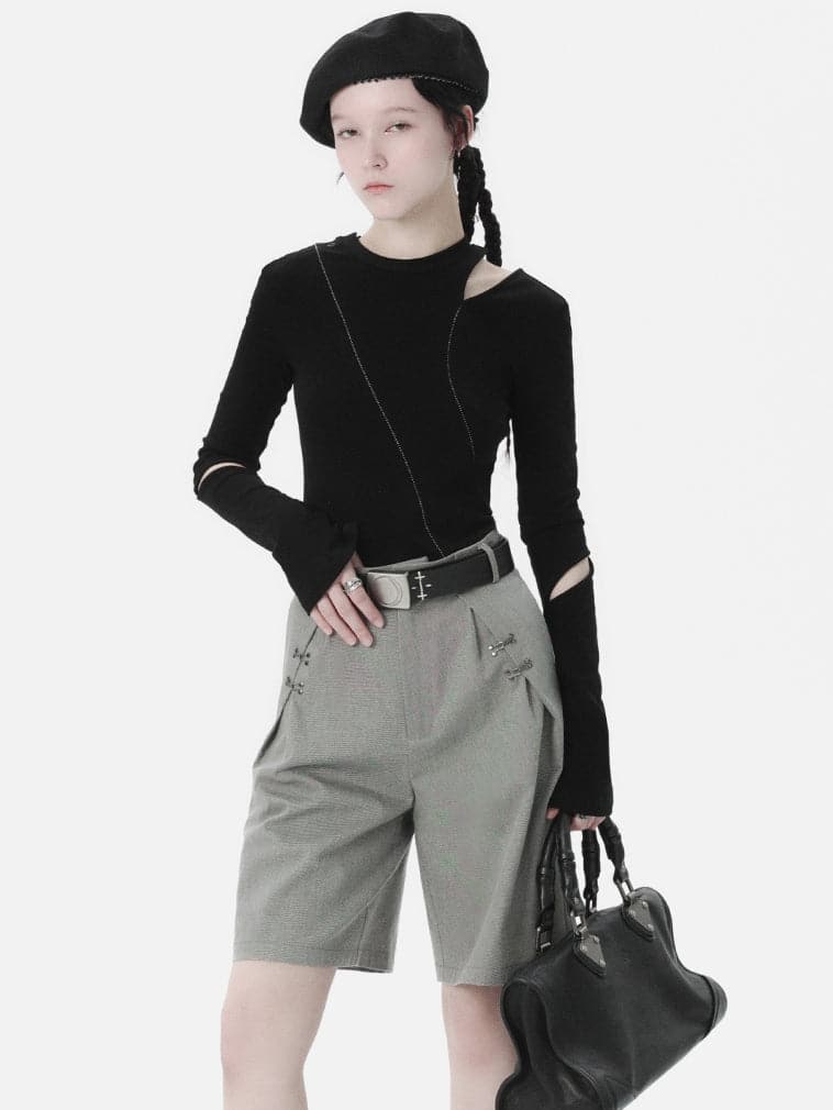Elegant Shoulder-Cut Asymmetric Cutsew Shirt