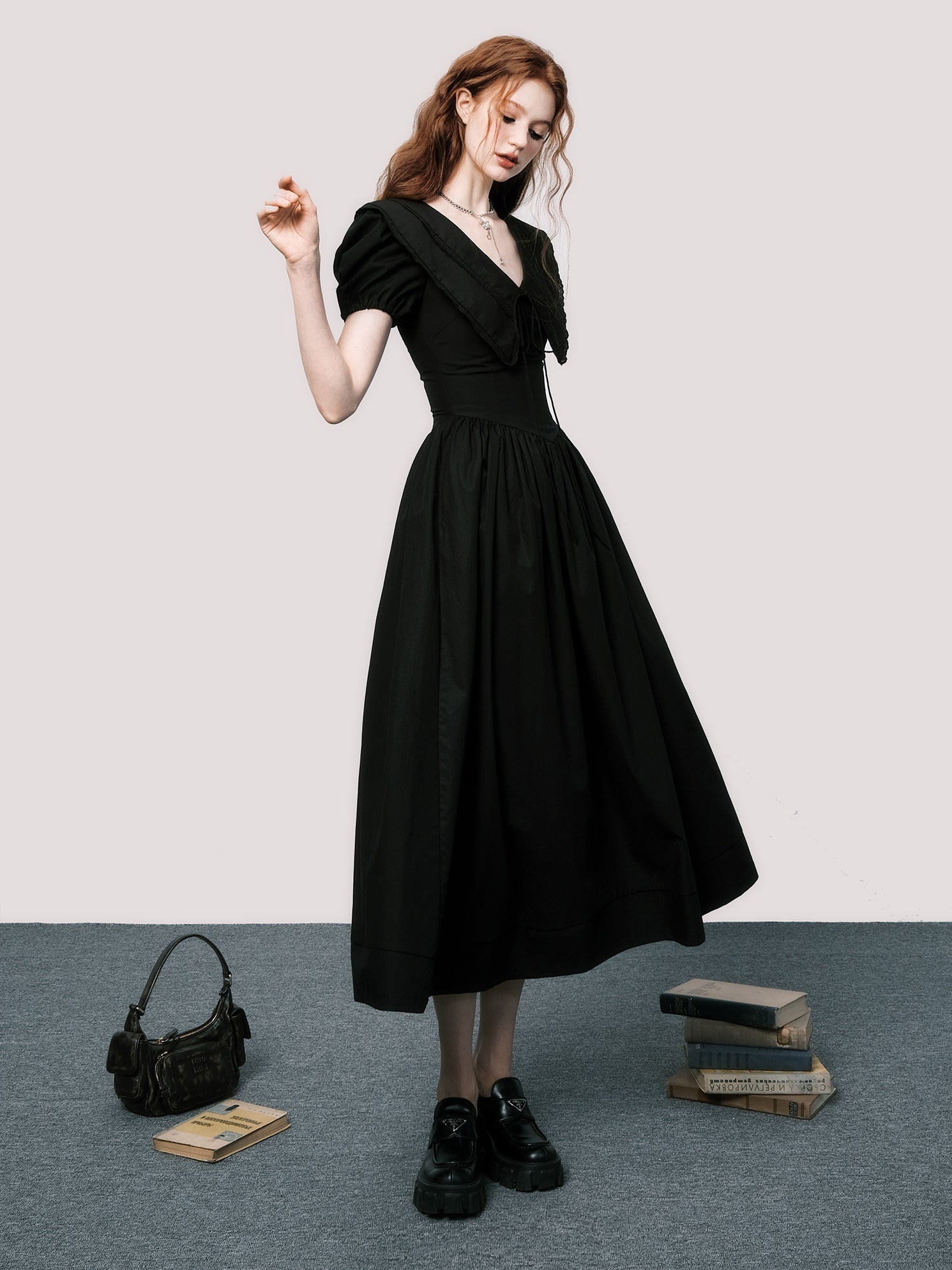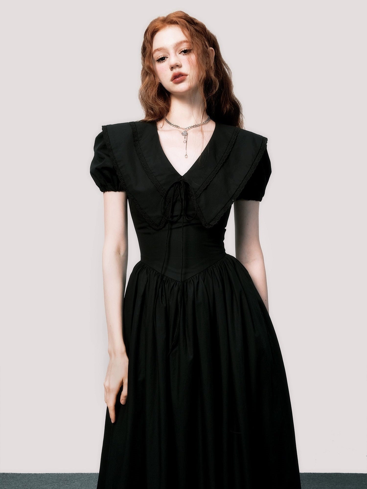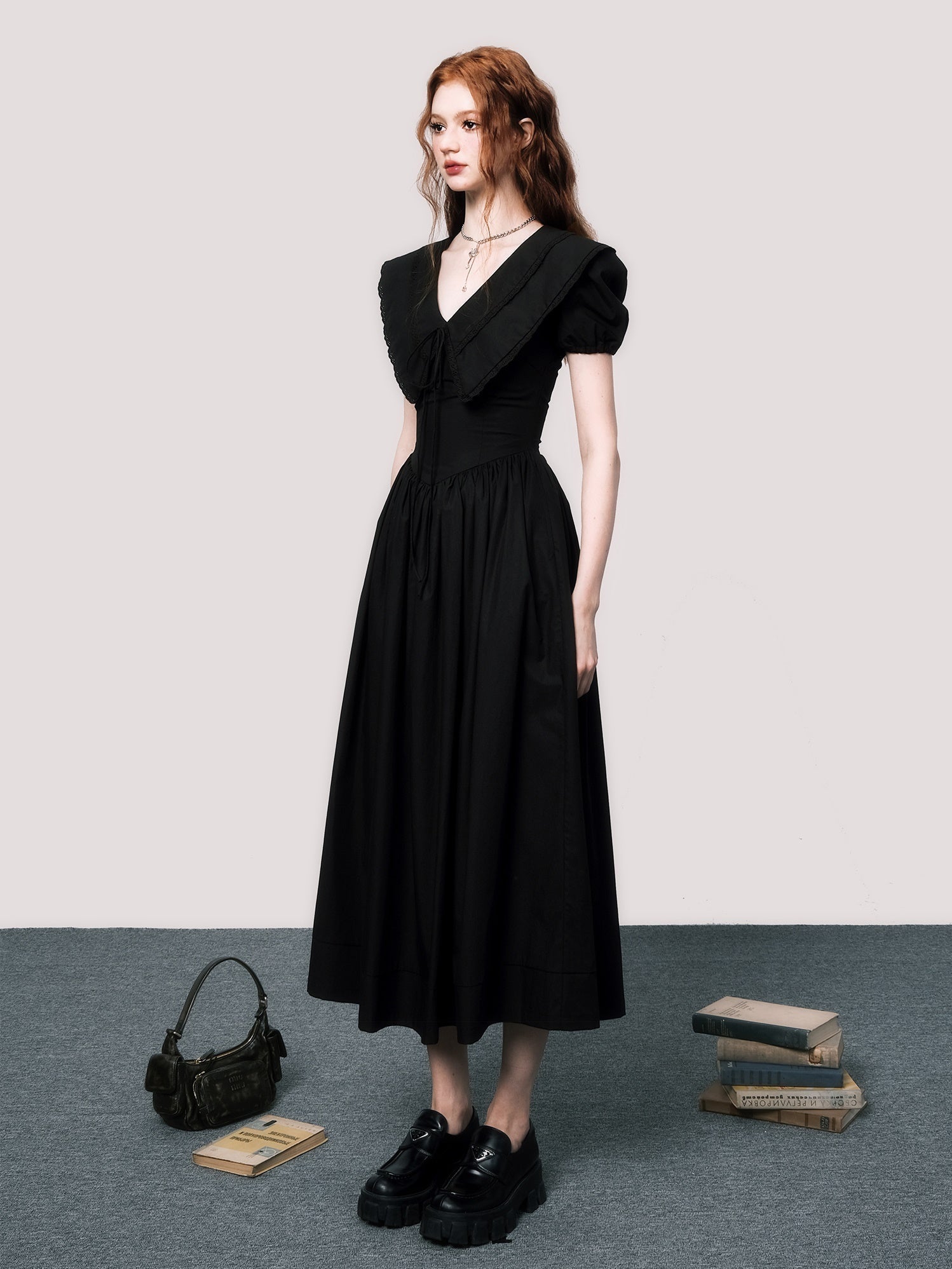 Elegant V-Neck Puff Sleeve Little Black Dress