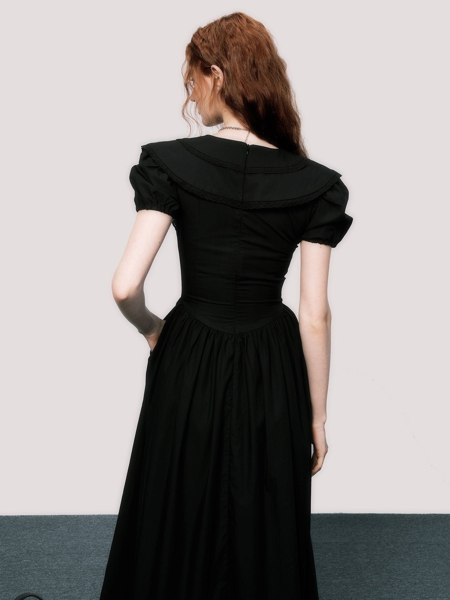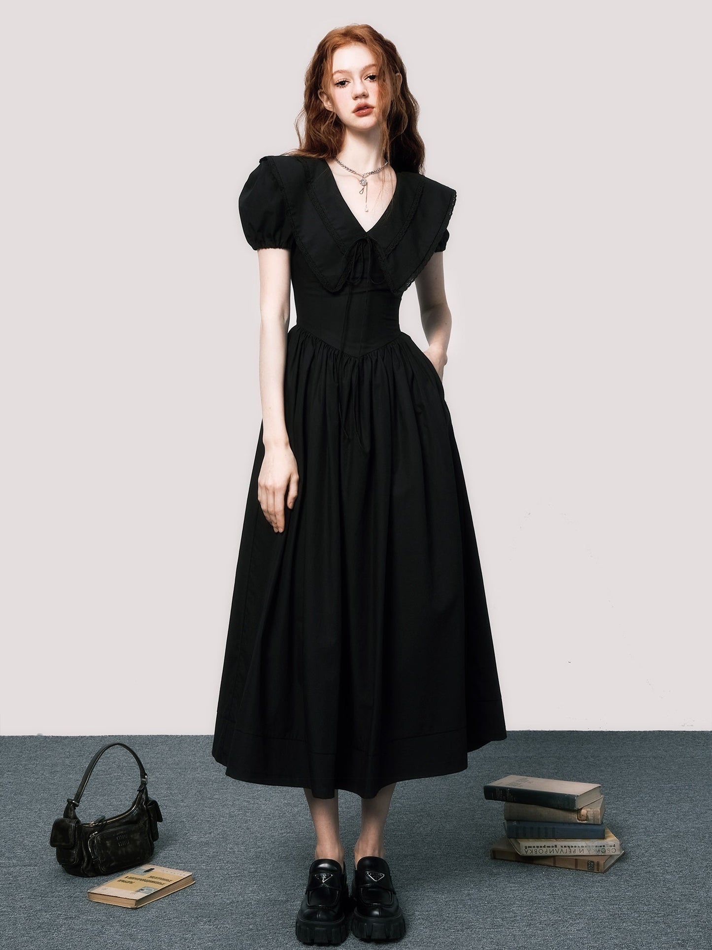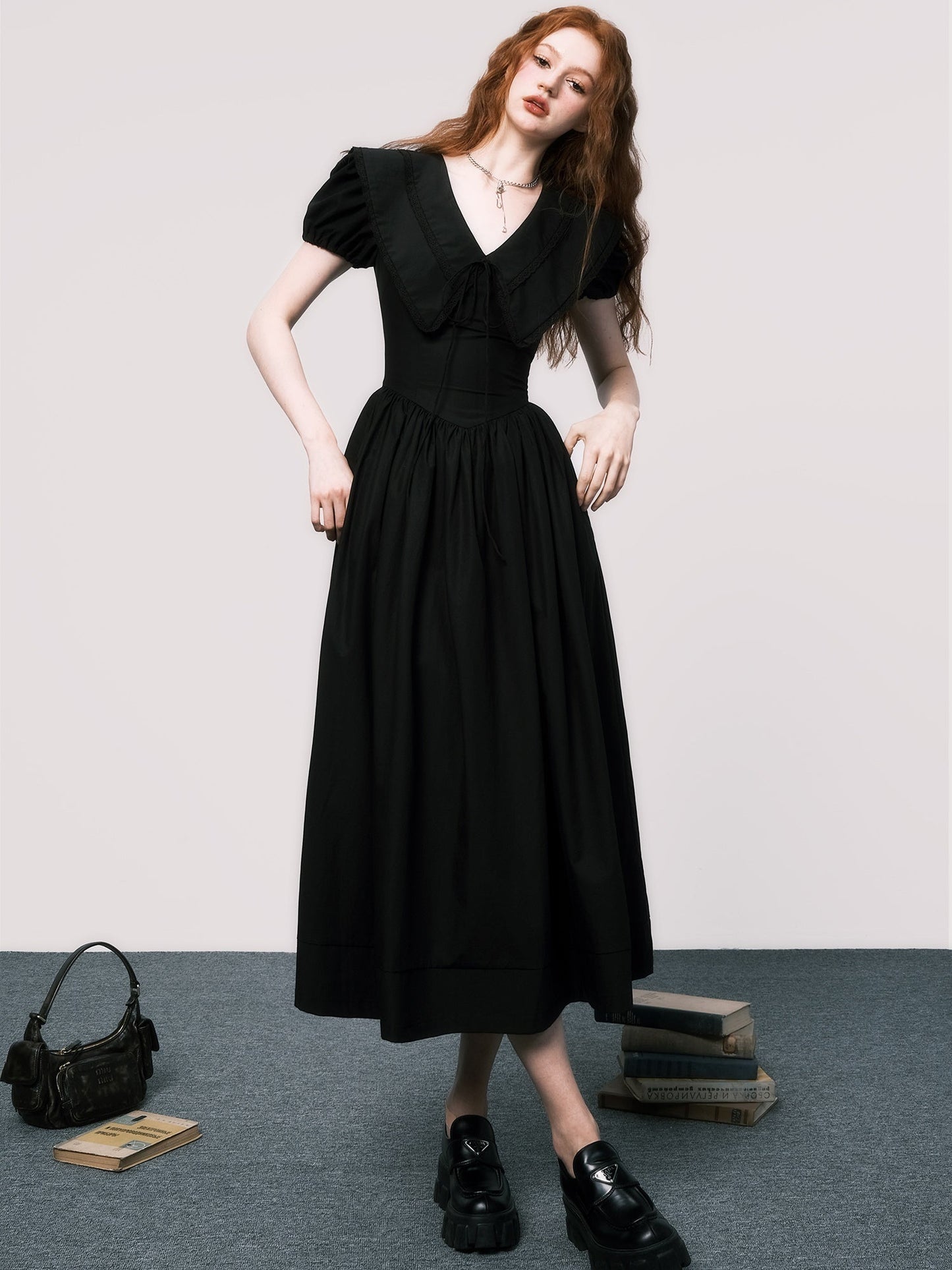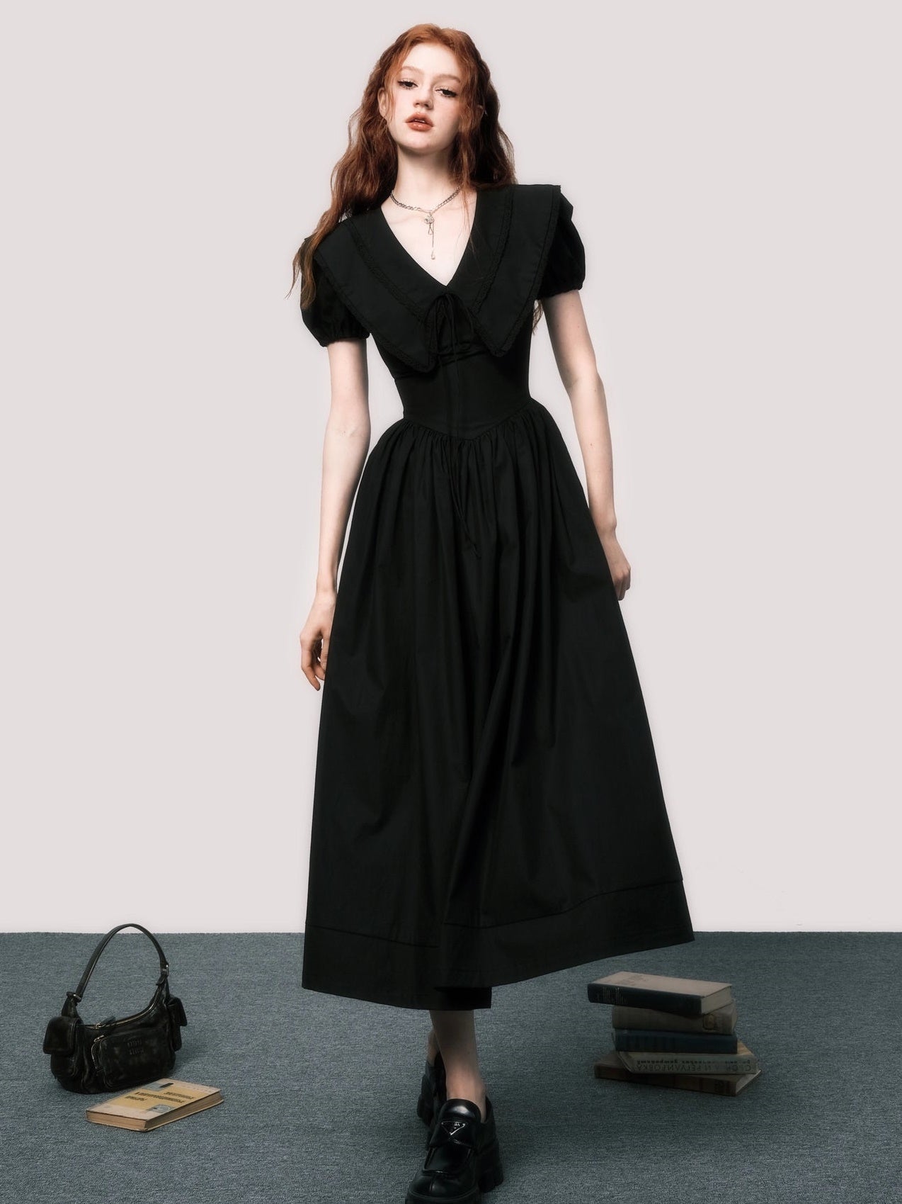 Elegant V-Neck Puff Sleeve Little Black Dress