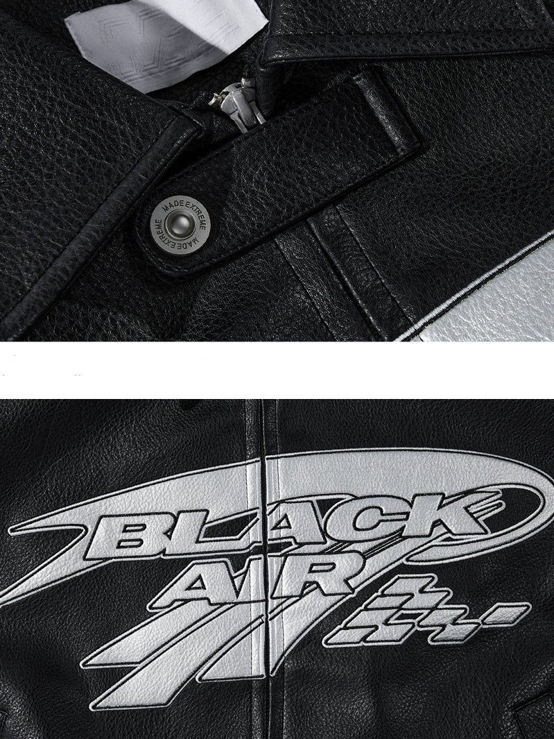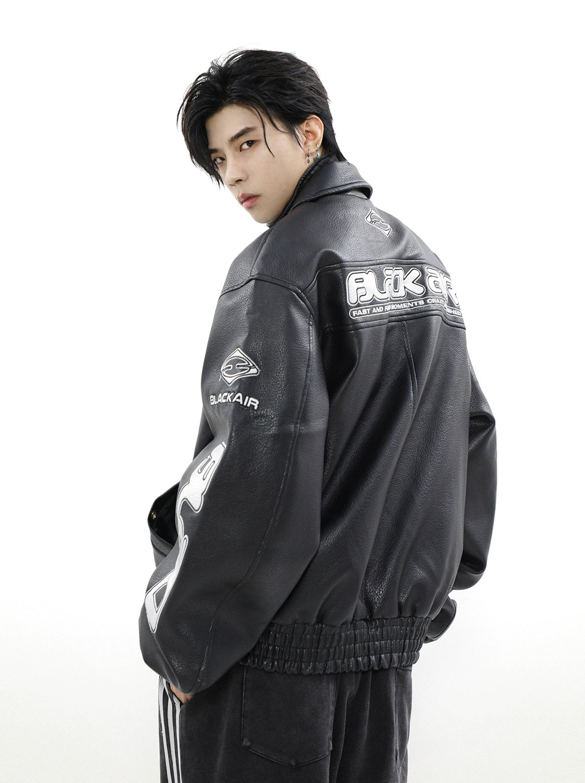 This emblematic faux leather jacket exudes style and sophistication. With its sleek design and high-quality faux leather material. this jacket is sure to make a statement. Perfect for any occasion. it is the ultimate addition to any fashion-forward wardrobe. Elevate your style game with this must-have piece!