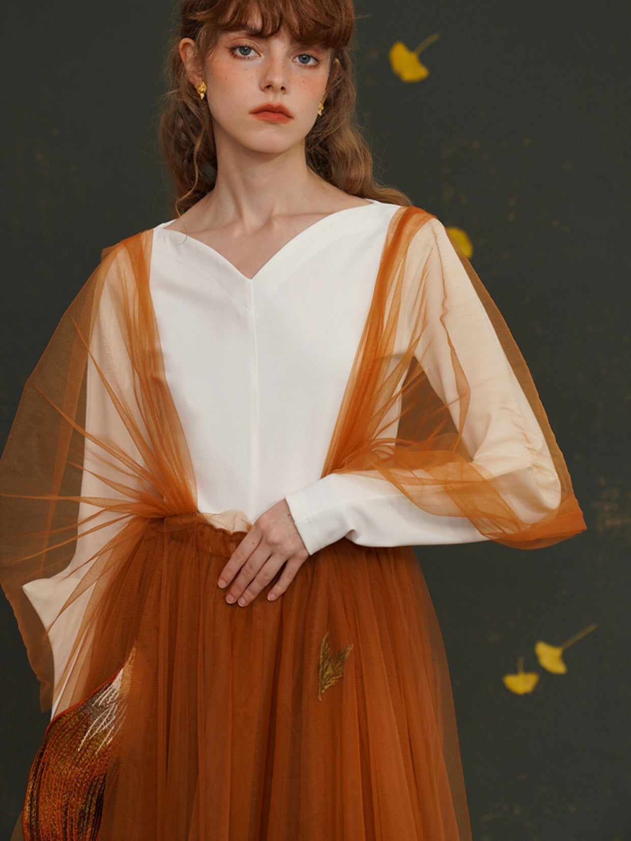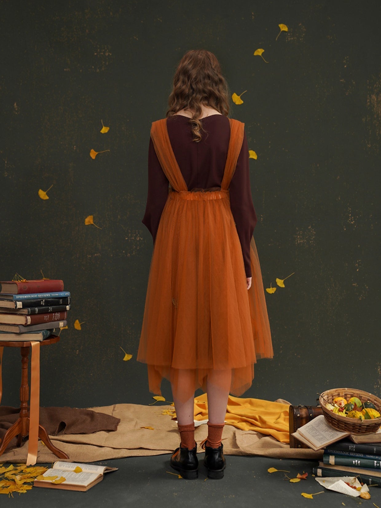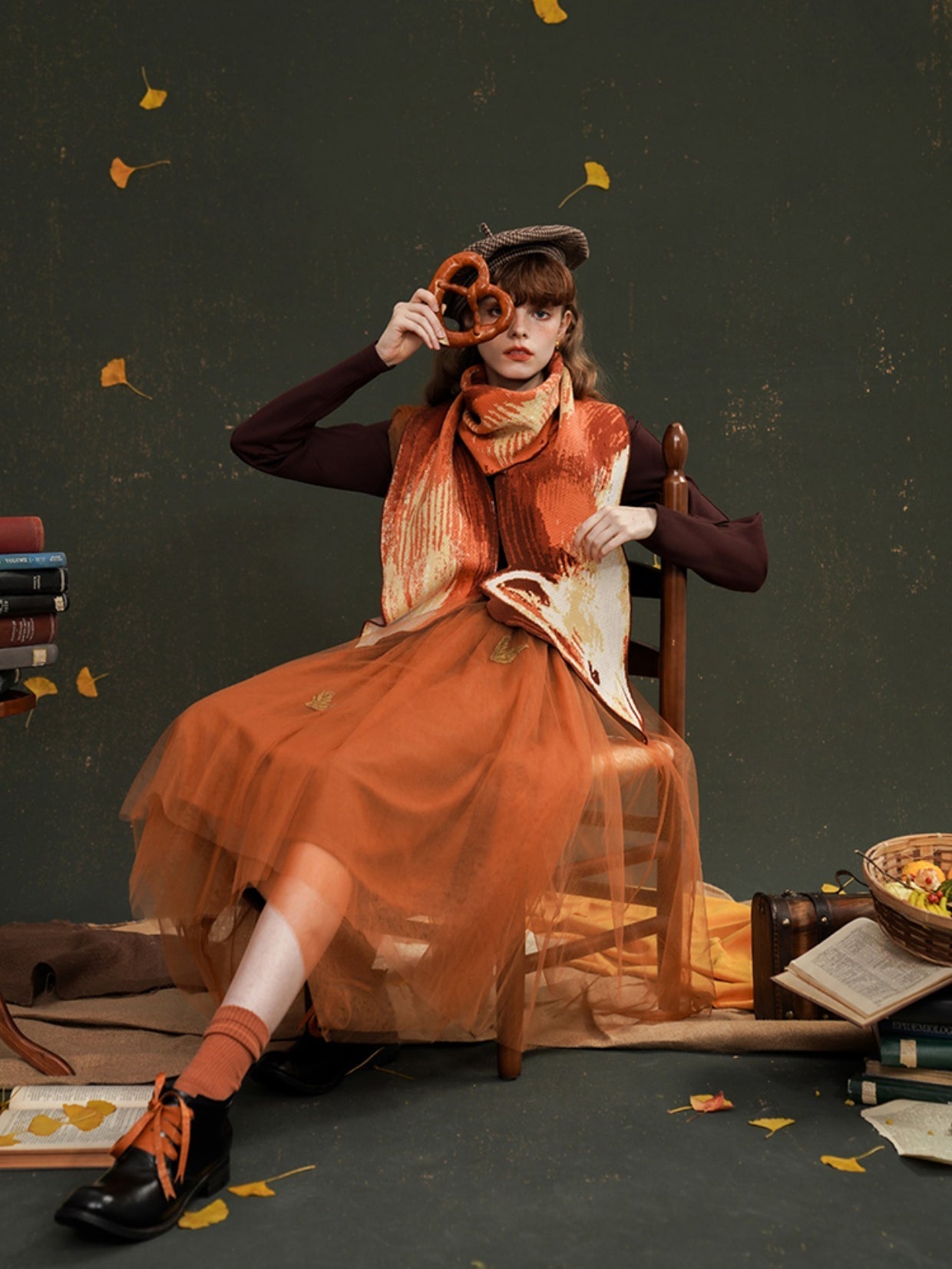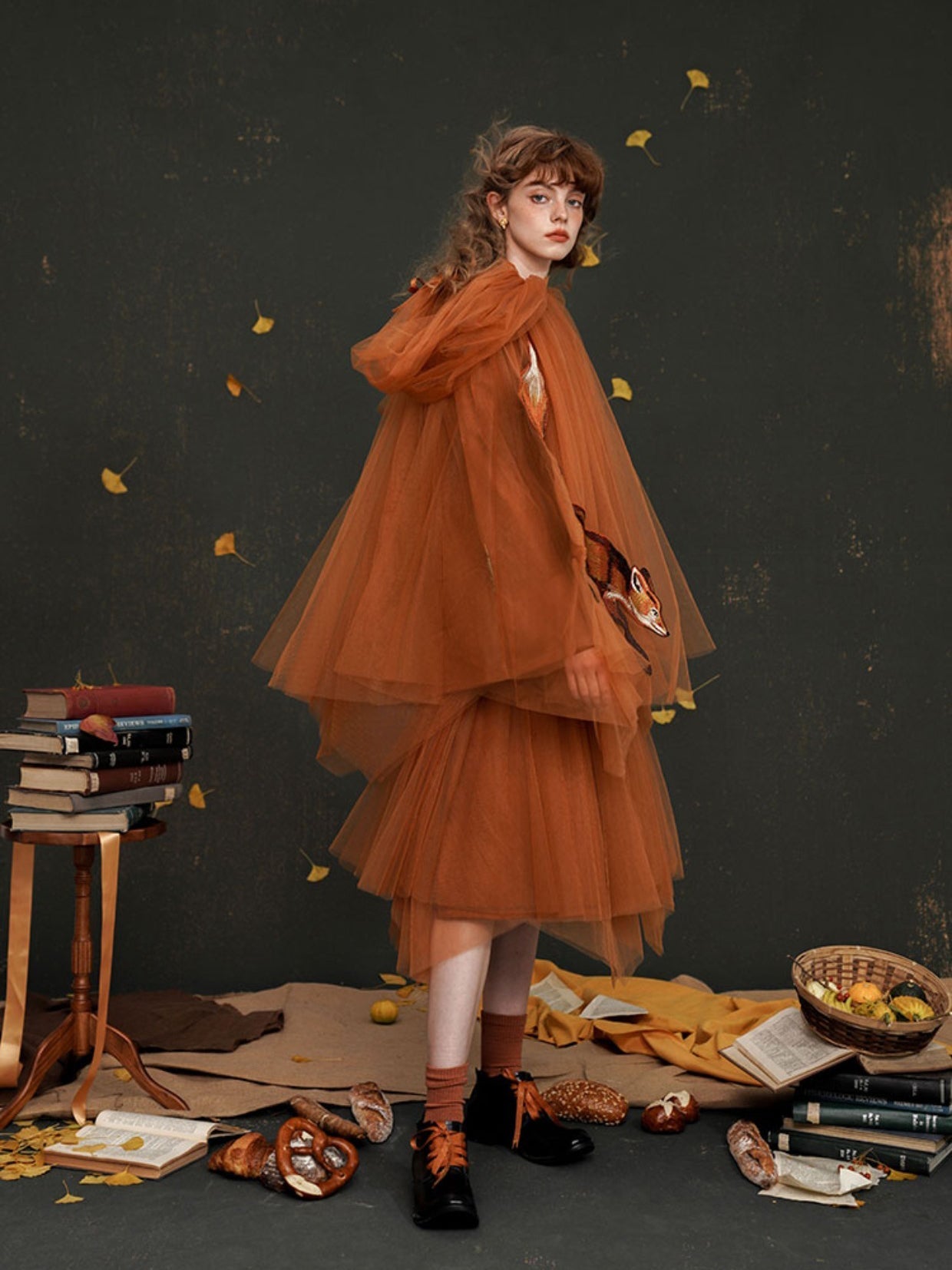 Step into a fairytale world with our Whimsical Nordic Fox Embroidered Chiffon Strap Skirt. as if you have leapt into a Nordic fairytale picture book. This enchanting skirt features an oil painting-style embroidered red fox. adding a touch of artistic elegance to your wardrobe. The lightweight chiffon fabric creates a soft. flowing silhouette. giving an ethereal impression. Be captivated by the fox's sharp yet endearing eyes. dynamic stride. and the beautiful fur that seems to be bathed in the glow of the setting sun.