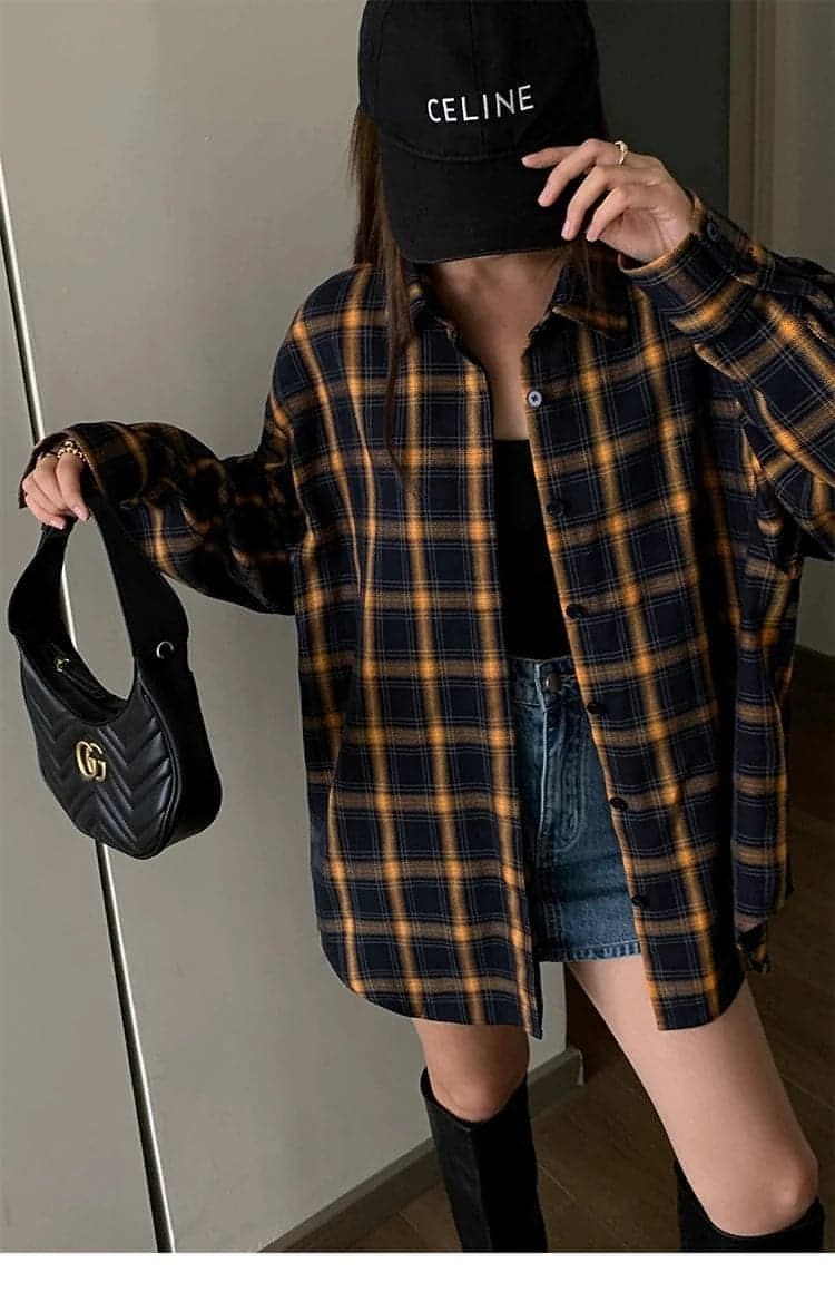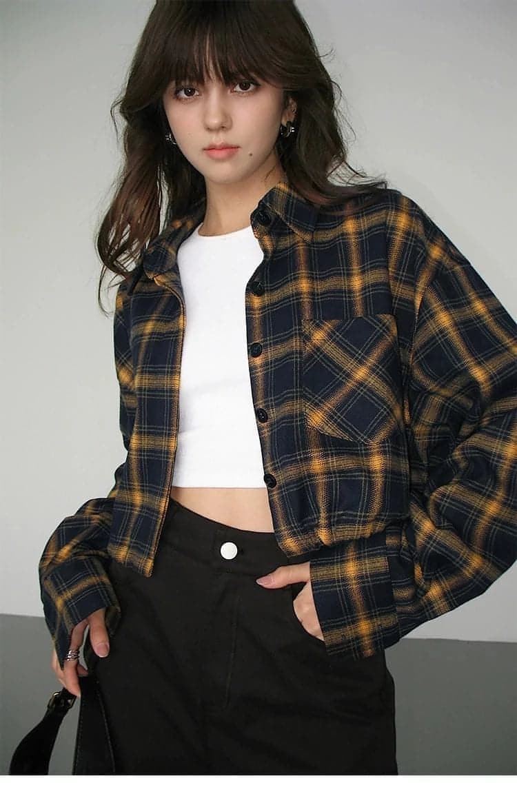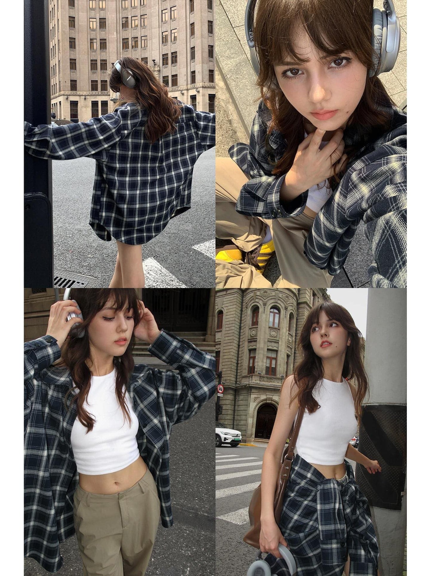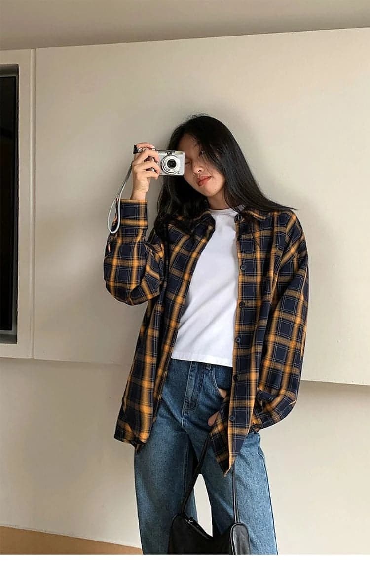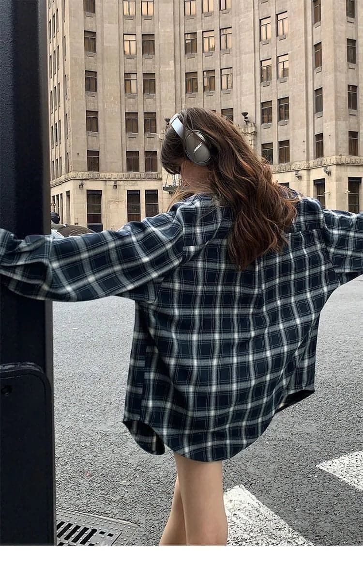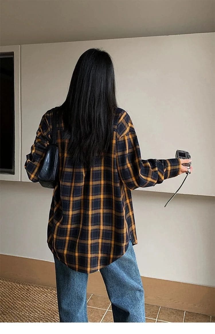 Introducing our Women's Retro Plaid Shirt from the 2023 Fall Collection. A design that perfectly blends a vintage feel with modern Korean BF style. Its casual essence makes it an ideal choice for an outer layer. adding a touch of uniqueness to your autumn wardrobe. A shirt with character for the stylish woman.