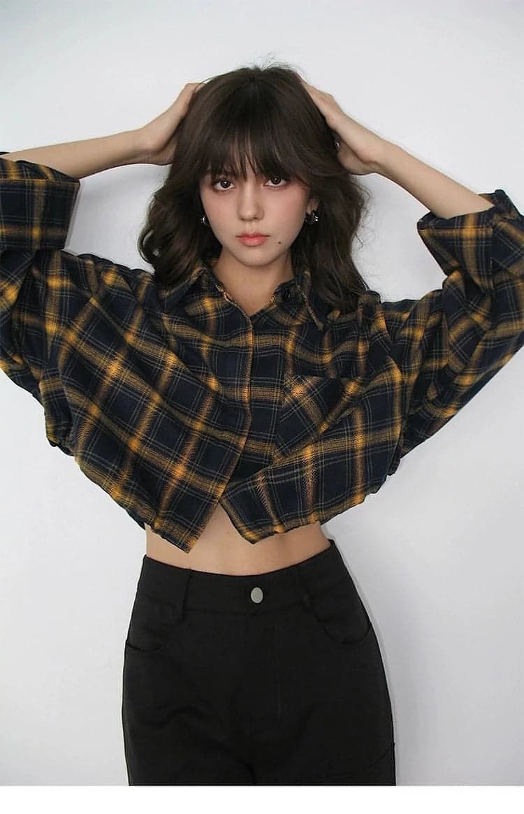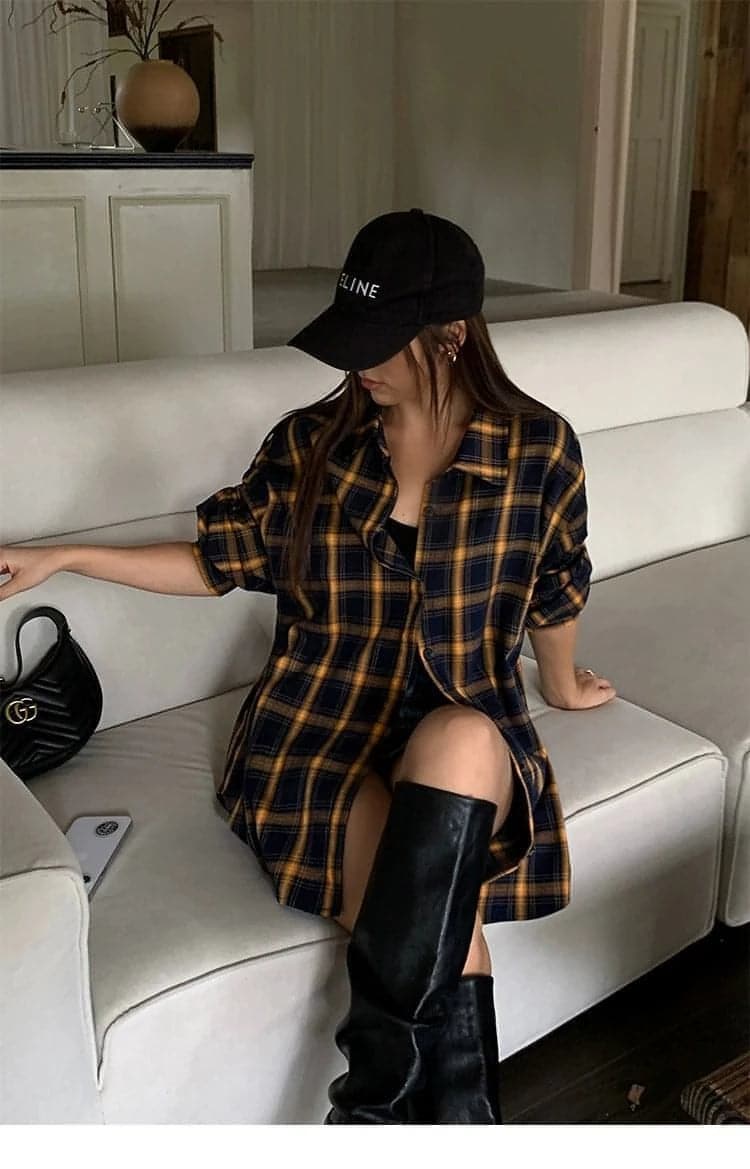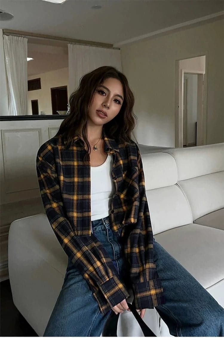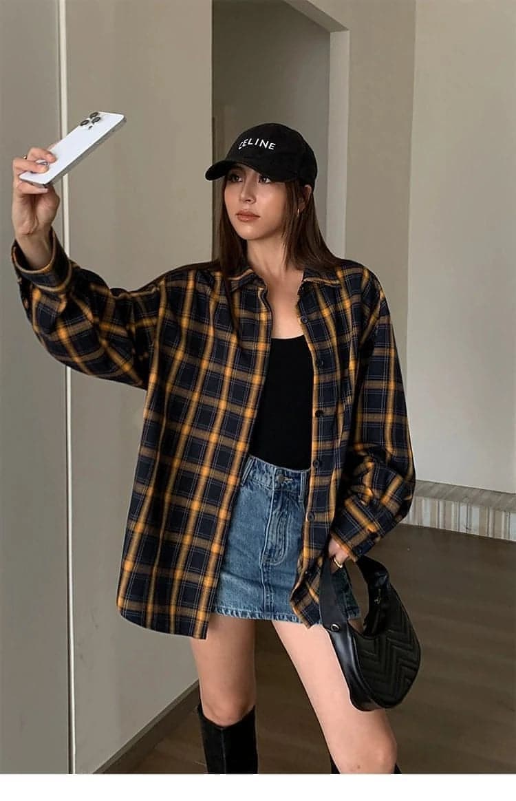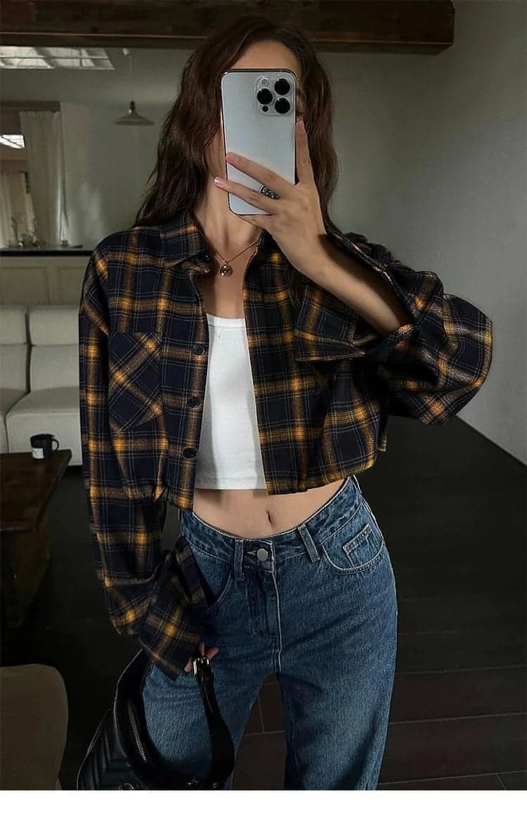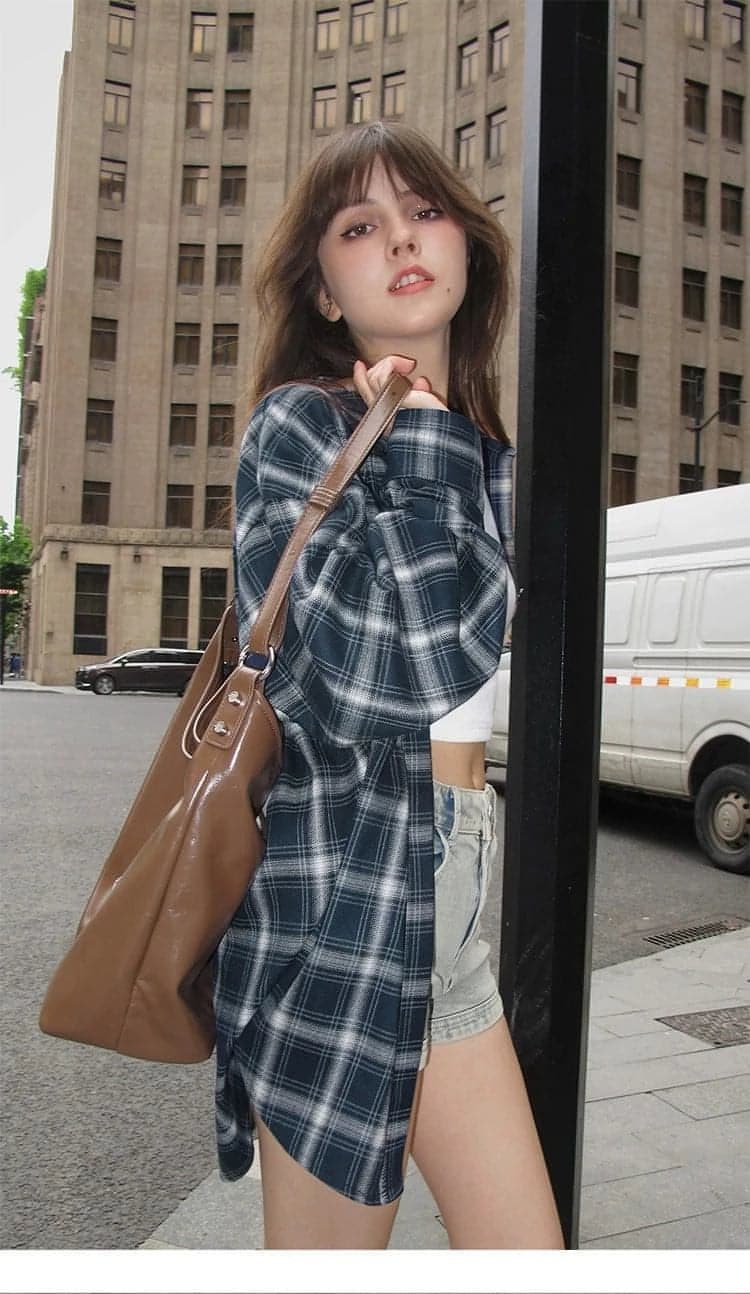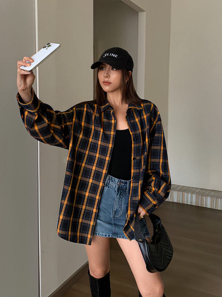 Introducing our Women's Retro Plaid Shirt from the 2023 Fall Collection. A design that perfectly blends a vintage feel with modern Korean BF style. Its casual essence makes it an ideal choice for an outer layer. adding a touch of uniqueness to your autumn wardrobe. A shirt with character for the stylish woman.