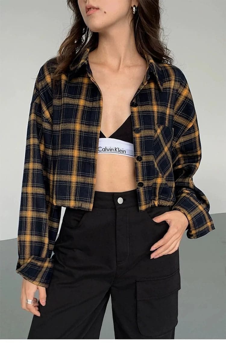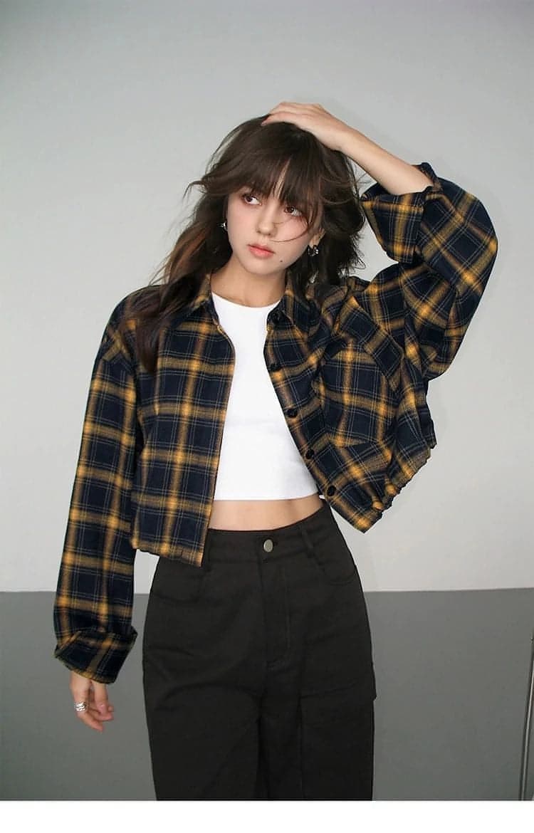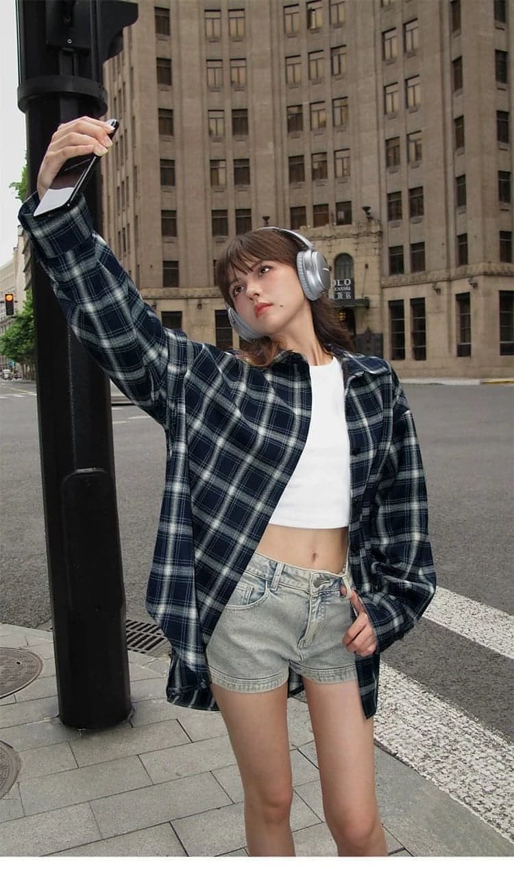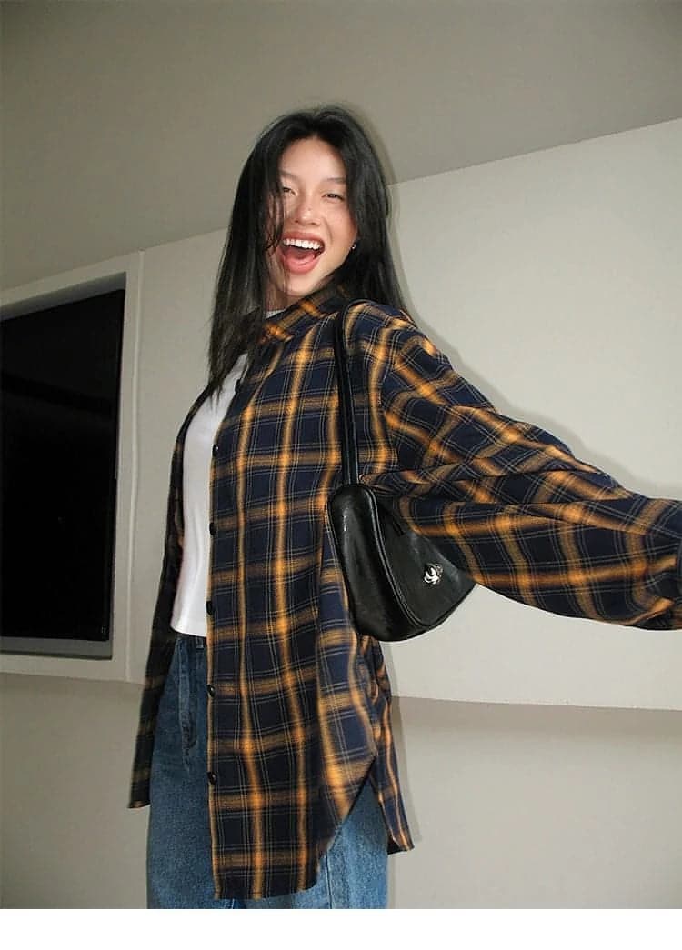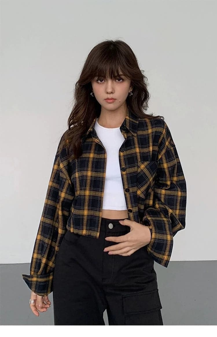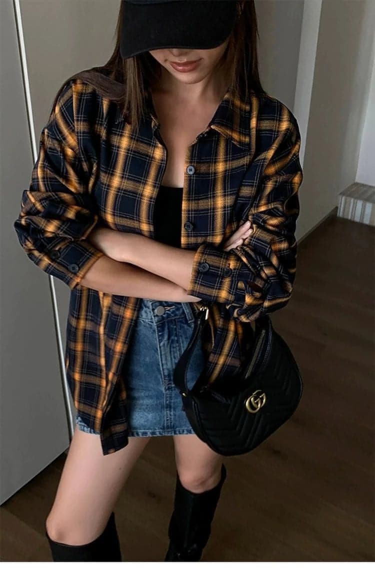 Introducing our Women's Retro Plaid Shirt from the 2023 Fall Collection. A design that perfectly blends a vintage feel with modern Korean BF style. Its casual essence makes it an ideal choice for an outer layer. adding a touch of uniqueness to your autumn wardrobe. A shirt with character for the stylish woman.