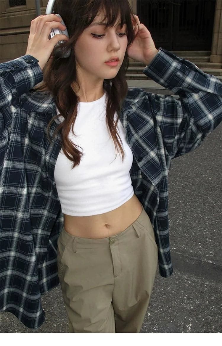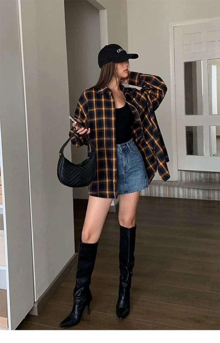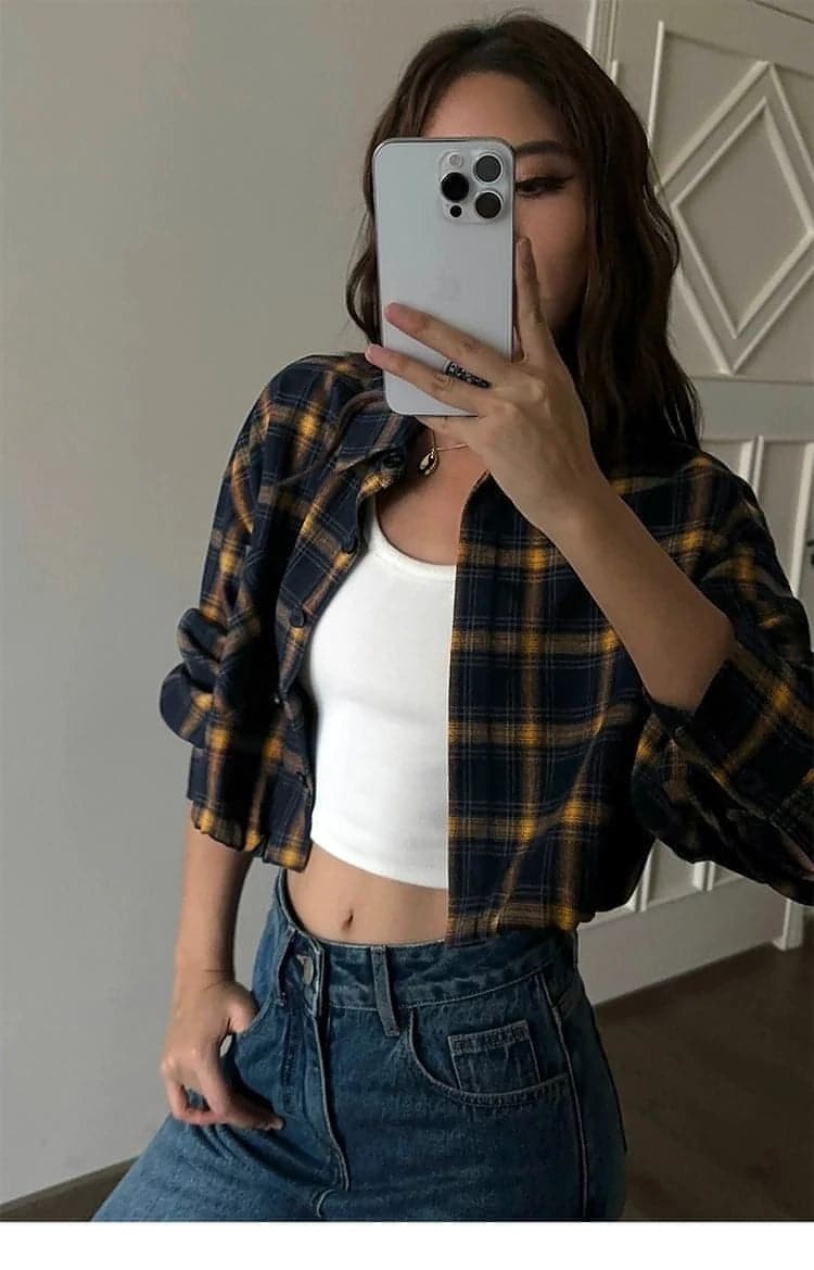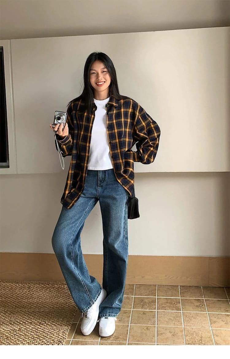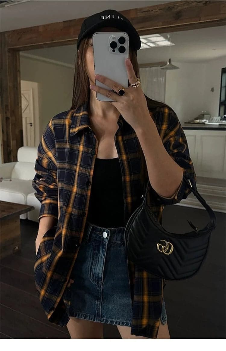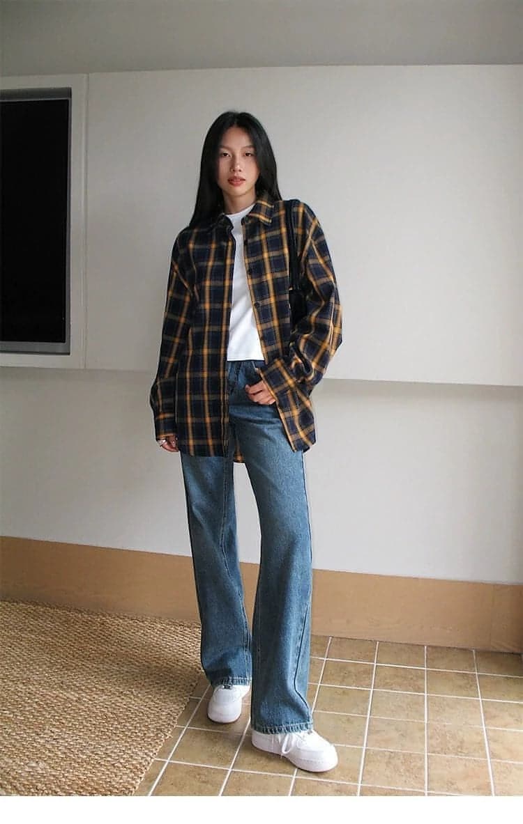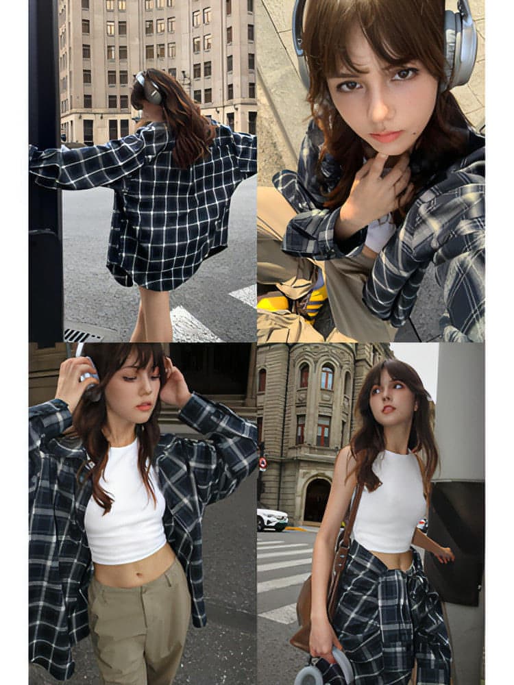 Introducing our Women's Retro Plaid Shirt from the 2023 Fall Collection. A design that perfectly blends a vintage feel with modern Korean BF style. Its casual essence makes it an ideal choice for an outer layer. adding a touch of uniqueness to your autumn wardrobe. A shirt with character for the stylish woman.