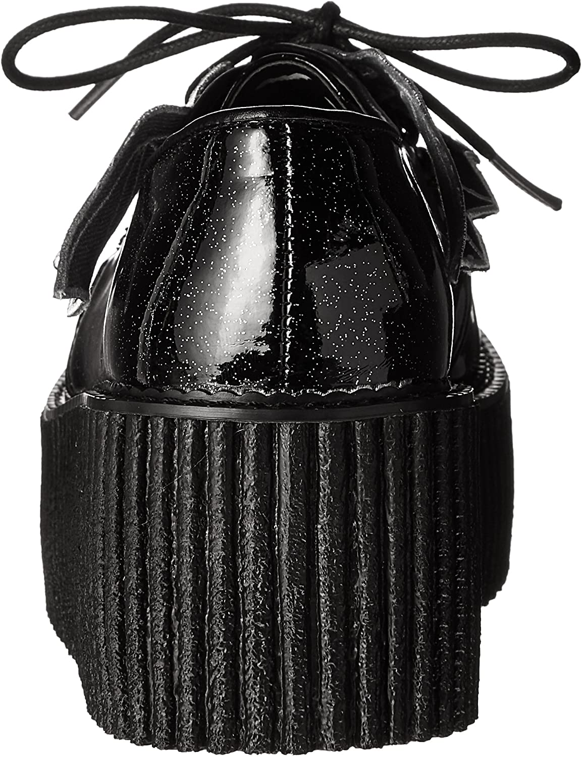 Chunky-soled creepers in fabulous black glitter. with cute detachable bat wings adorned with white embroidered piping.