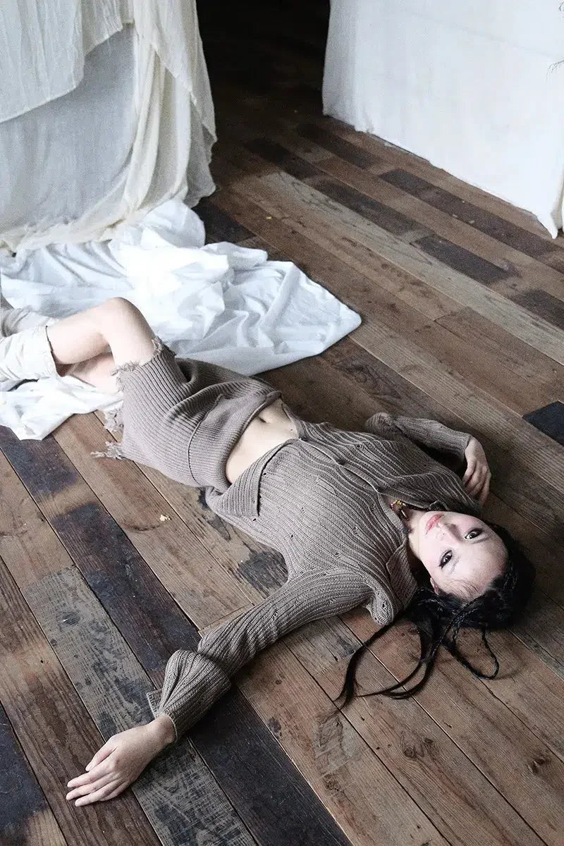 The Grunge Distressed Cardigan & Mini Skirt Two Piece Set brings an edgy yet cozy vibe to your wardrobe. Crafted with a ribbed texture. the cardigan features a button-up front and intentionally distressed details for a worn-in. rebellious aesthetic. The raw hem on the skirt and subtle distressing throughout the cardigan create a vintage-inspired. undone feel that adds character to any outfit.