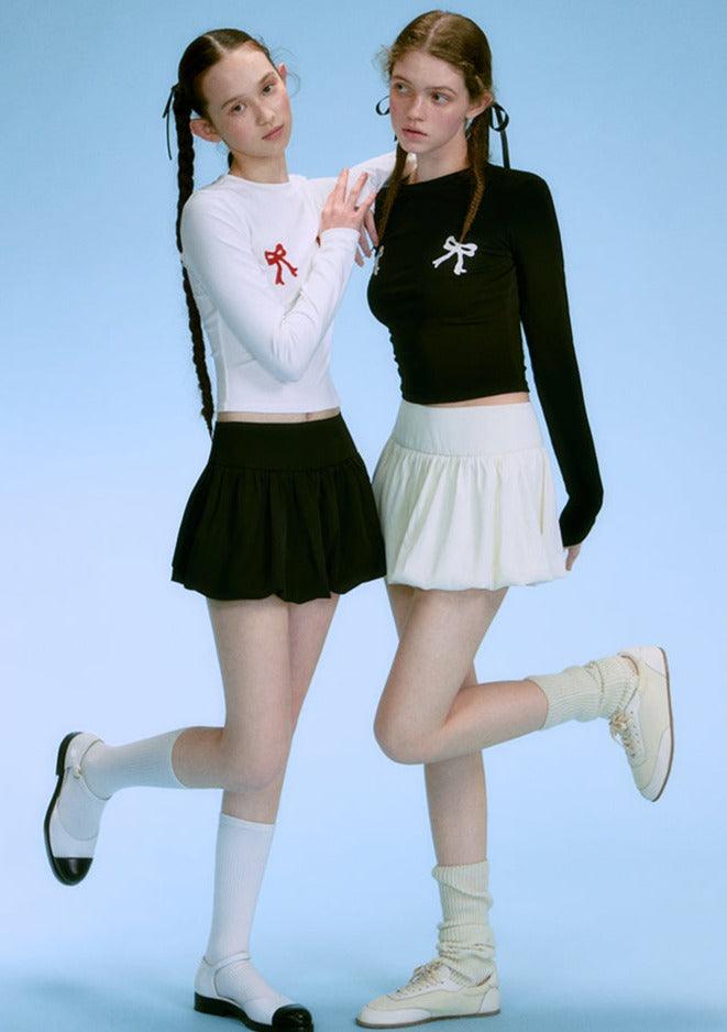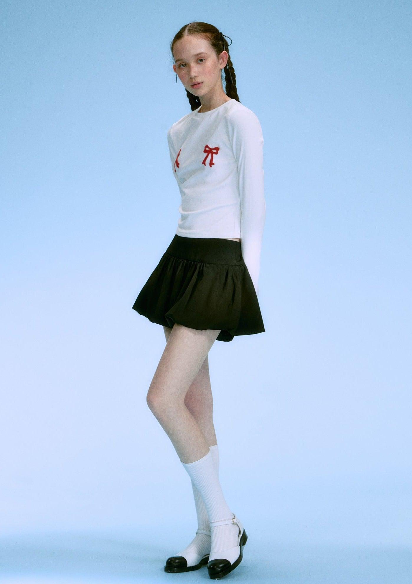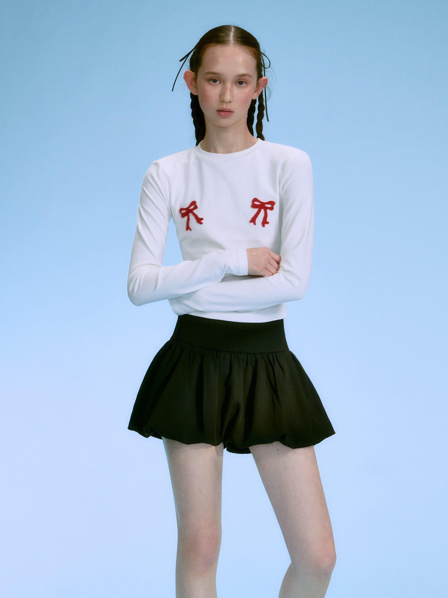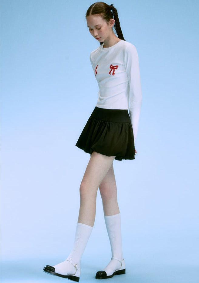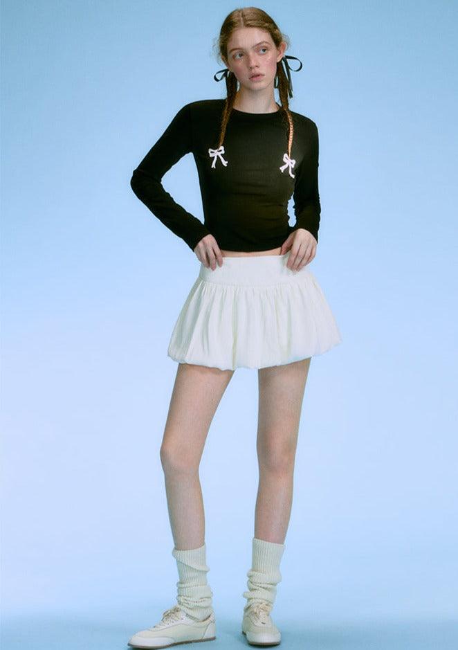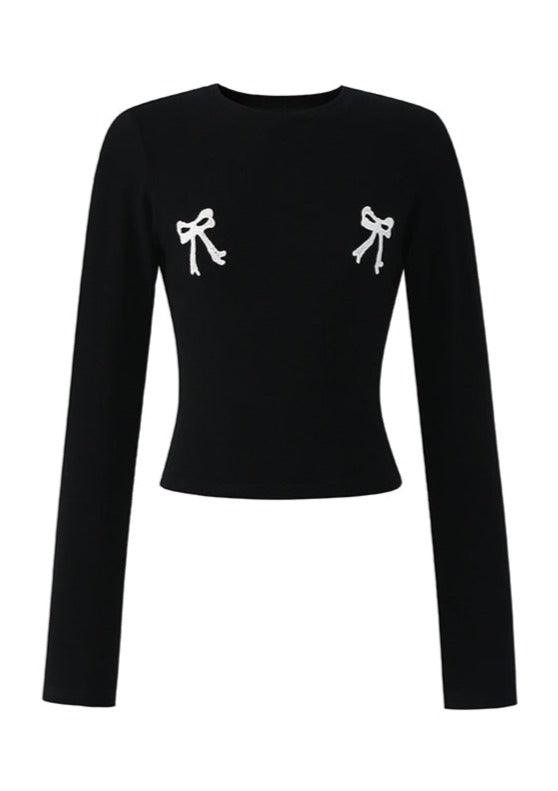 Contrasting Bow-Tie Shirt Set