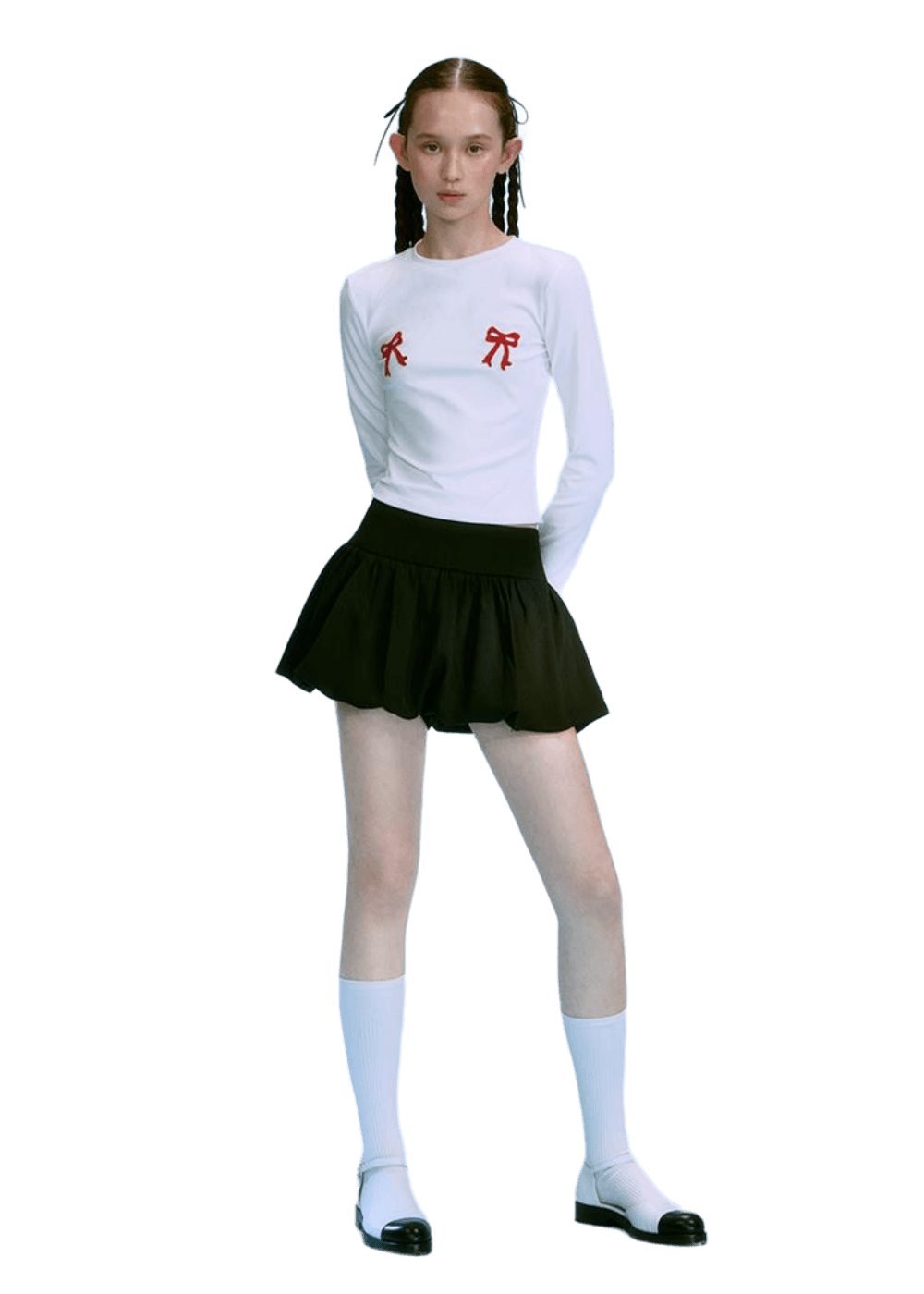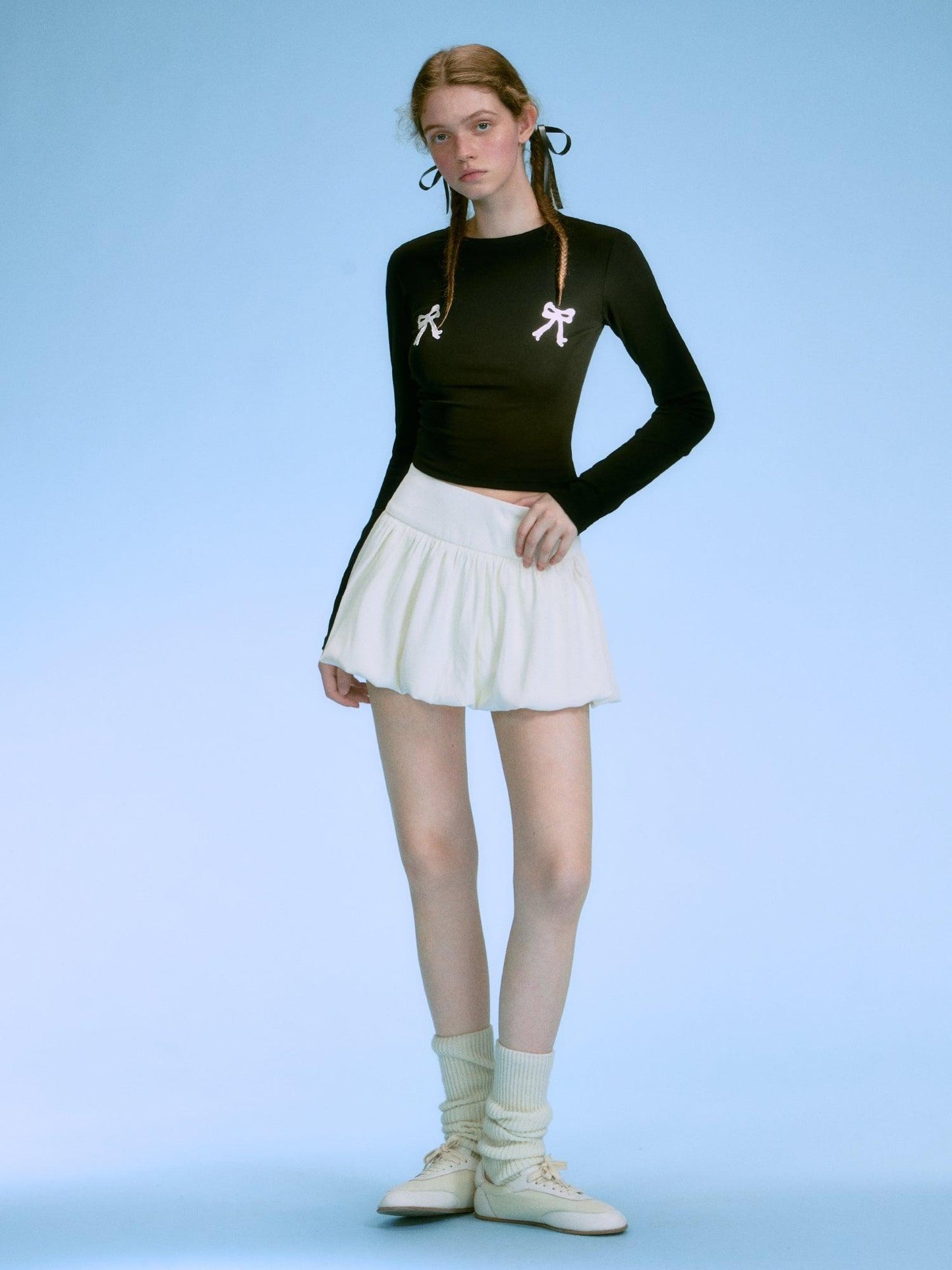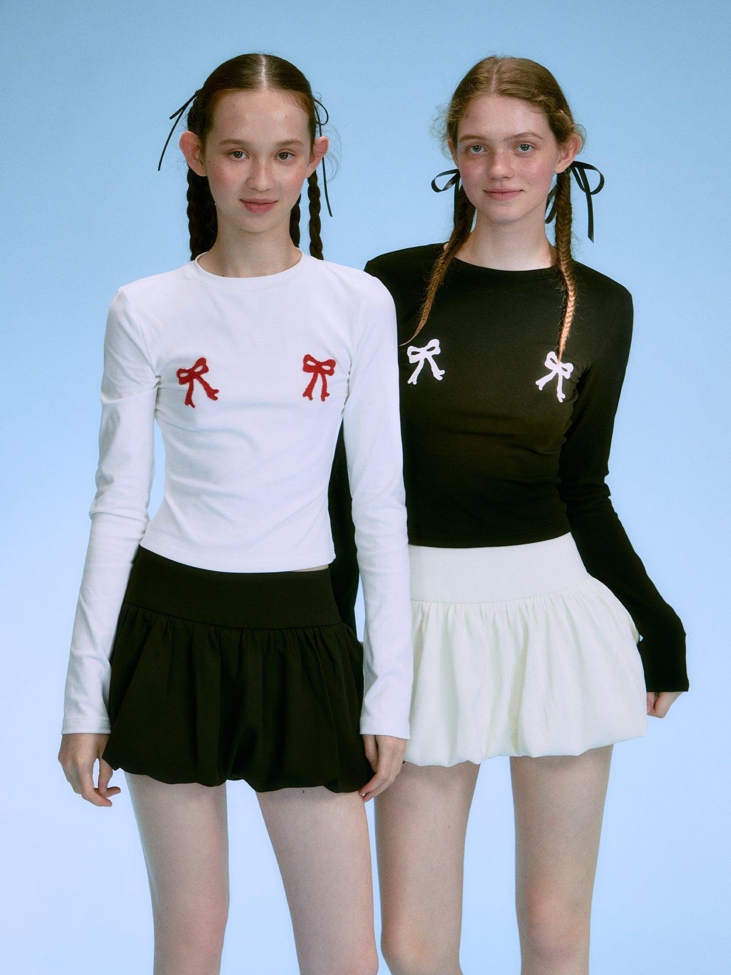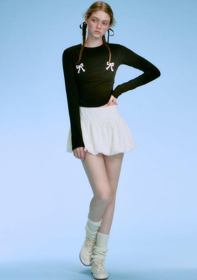 Contrasting Bow-Tie Shirt Set