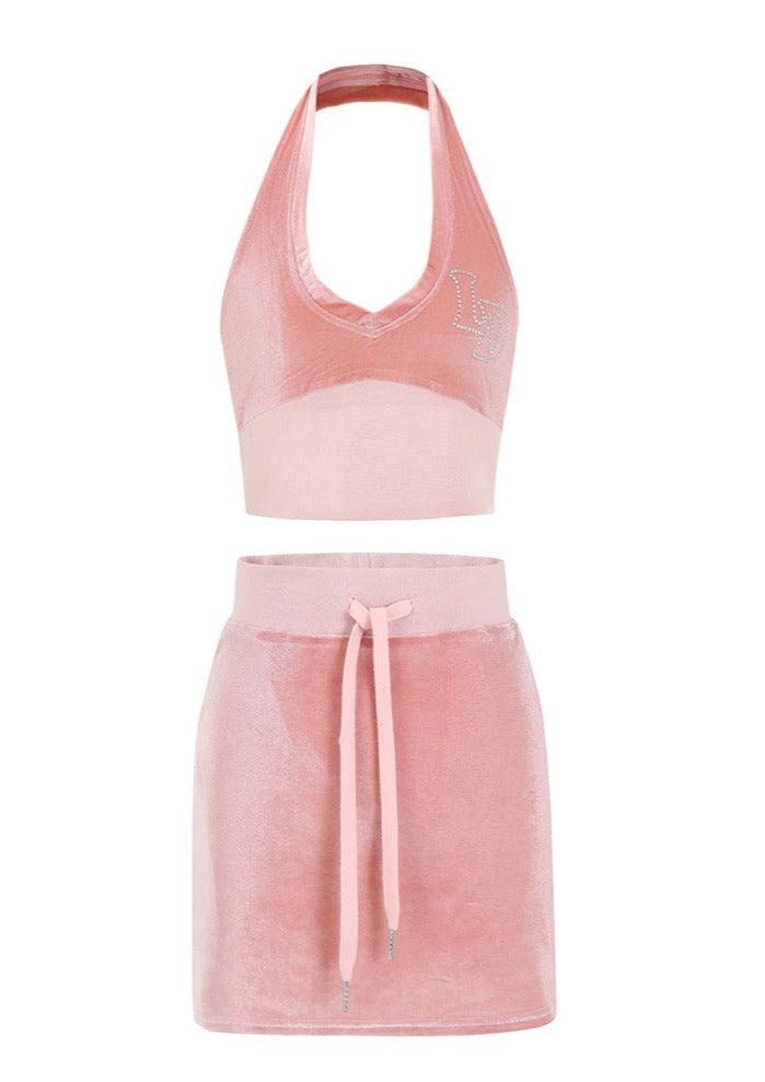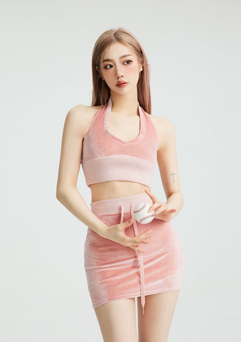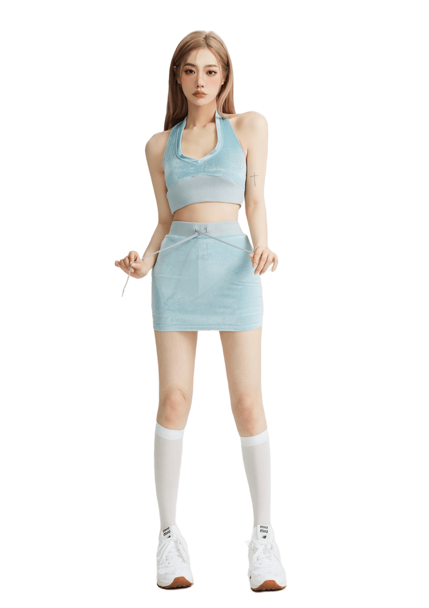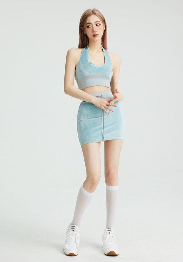 Velvet Halter Tank Top & Skirt Sports Two-Piece Set