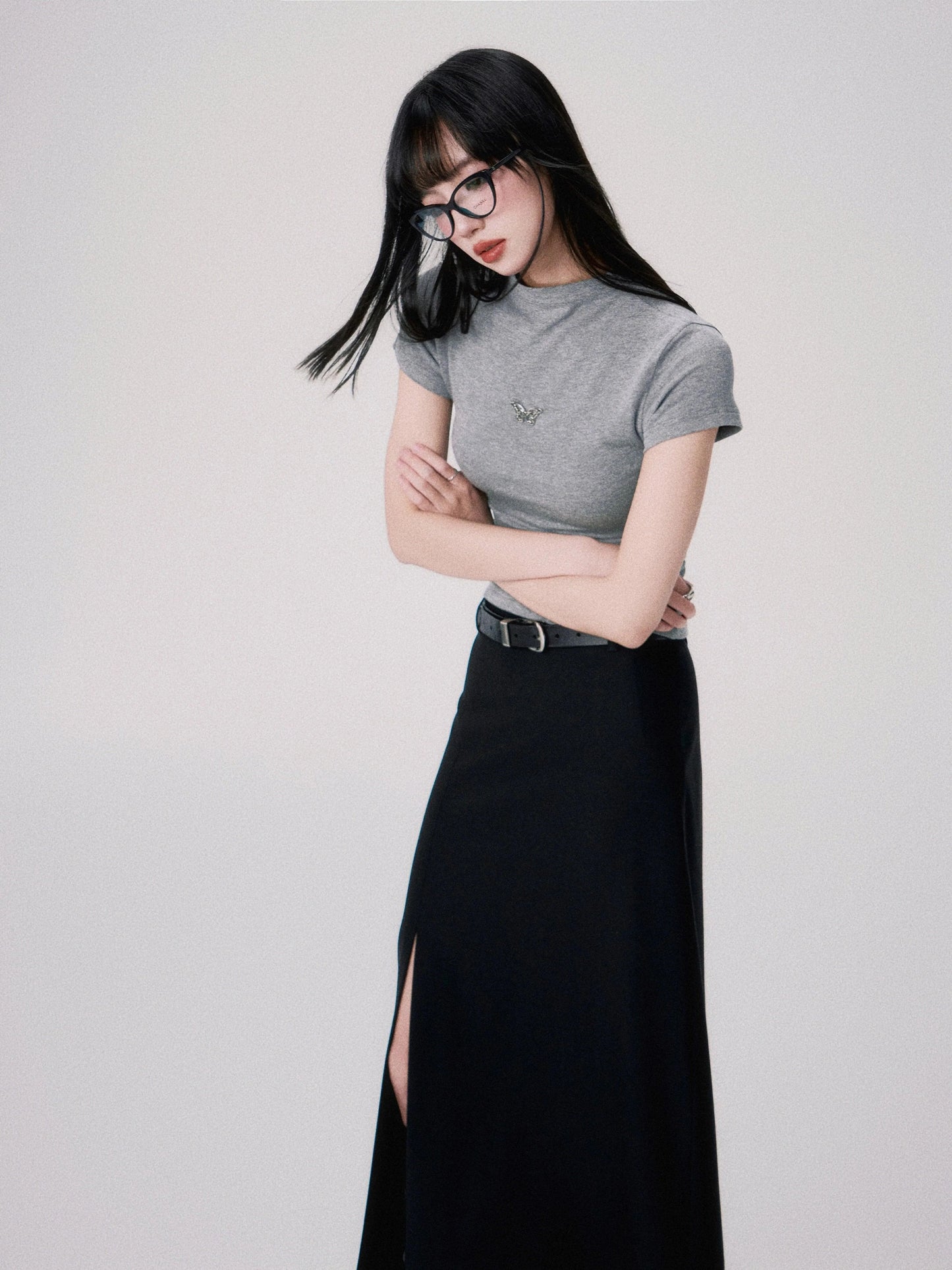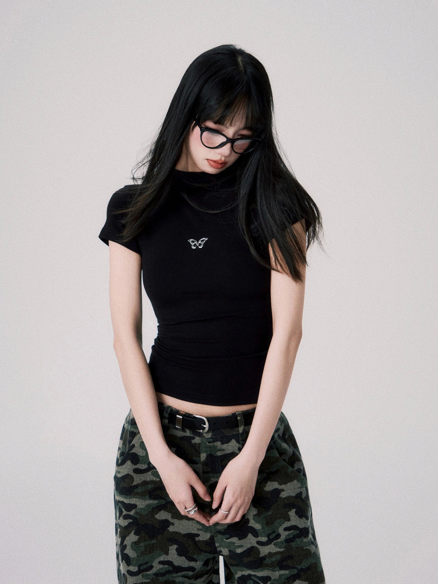 Luluswings Butterfly Embroidered Fitted Tee - Women'S Essential Crop Top