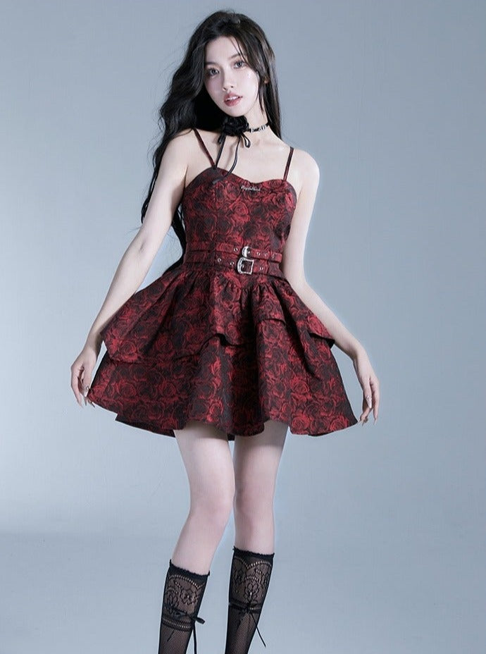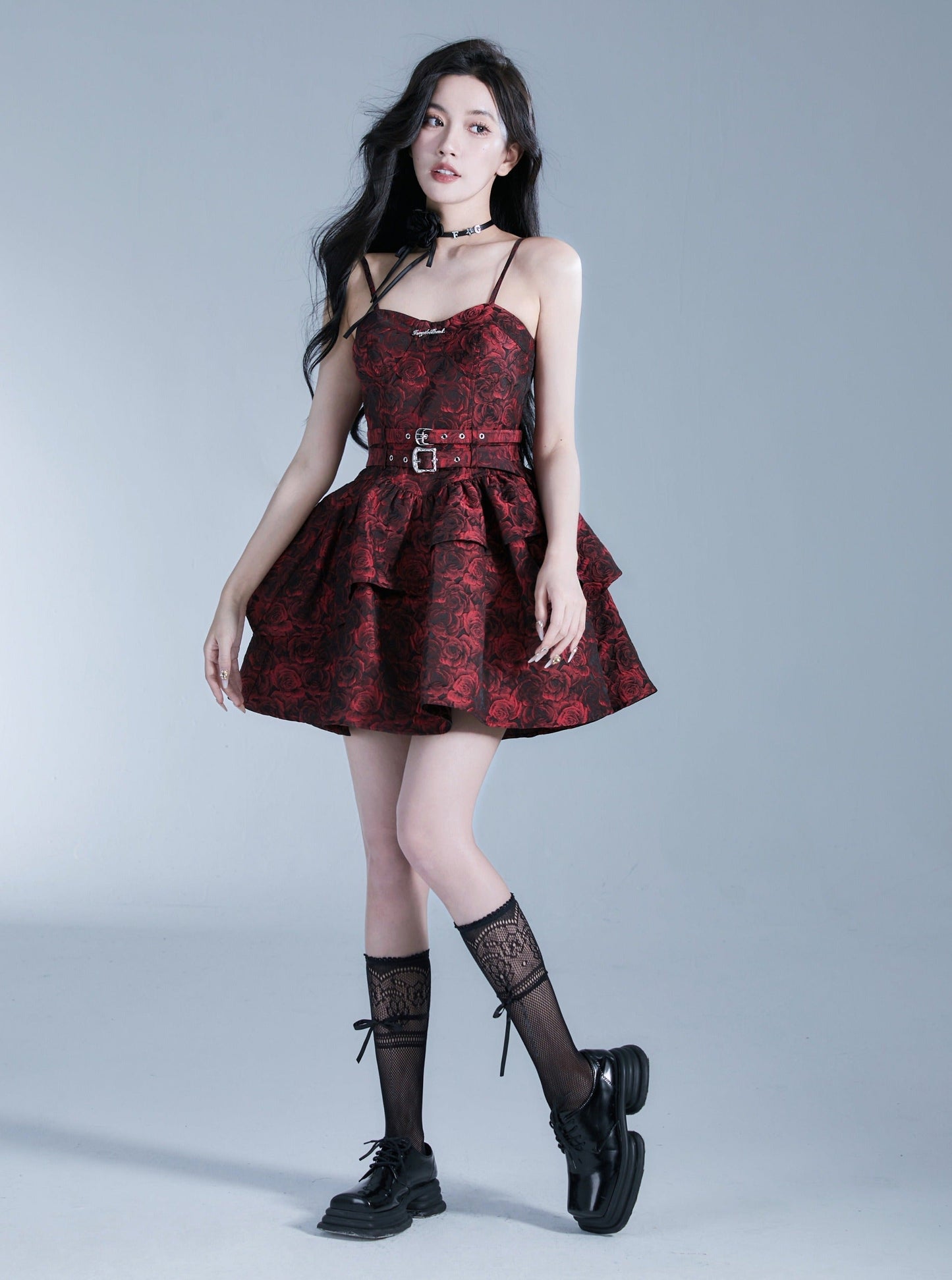 Luxe Burgundy Floral Brocade Mini Dress with Belted Waist