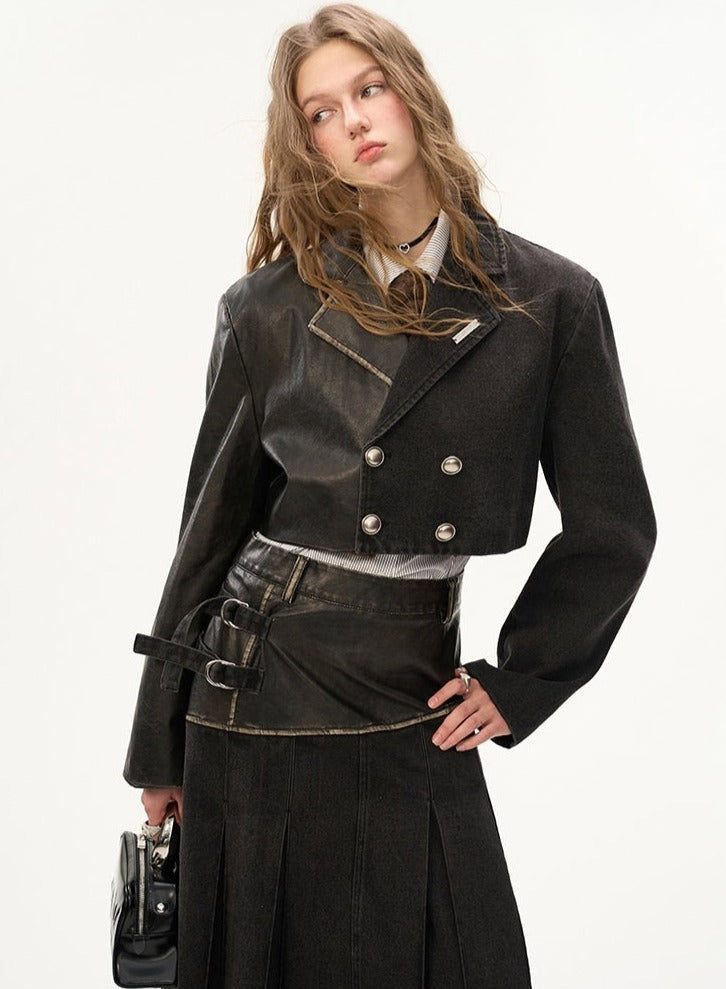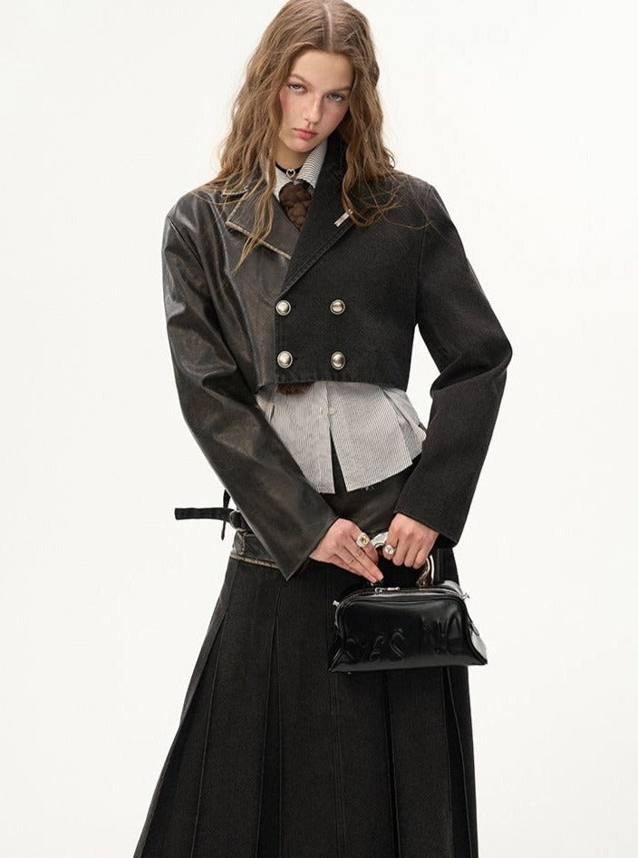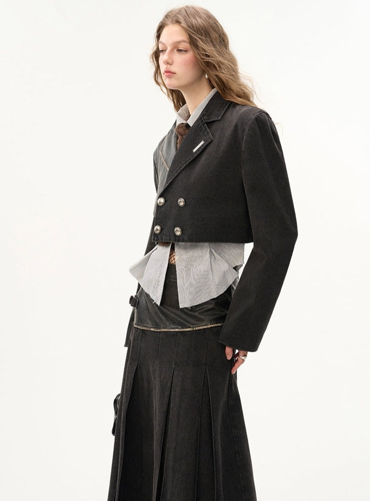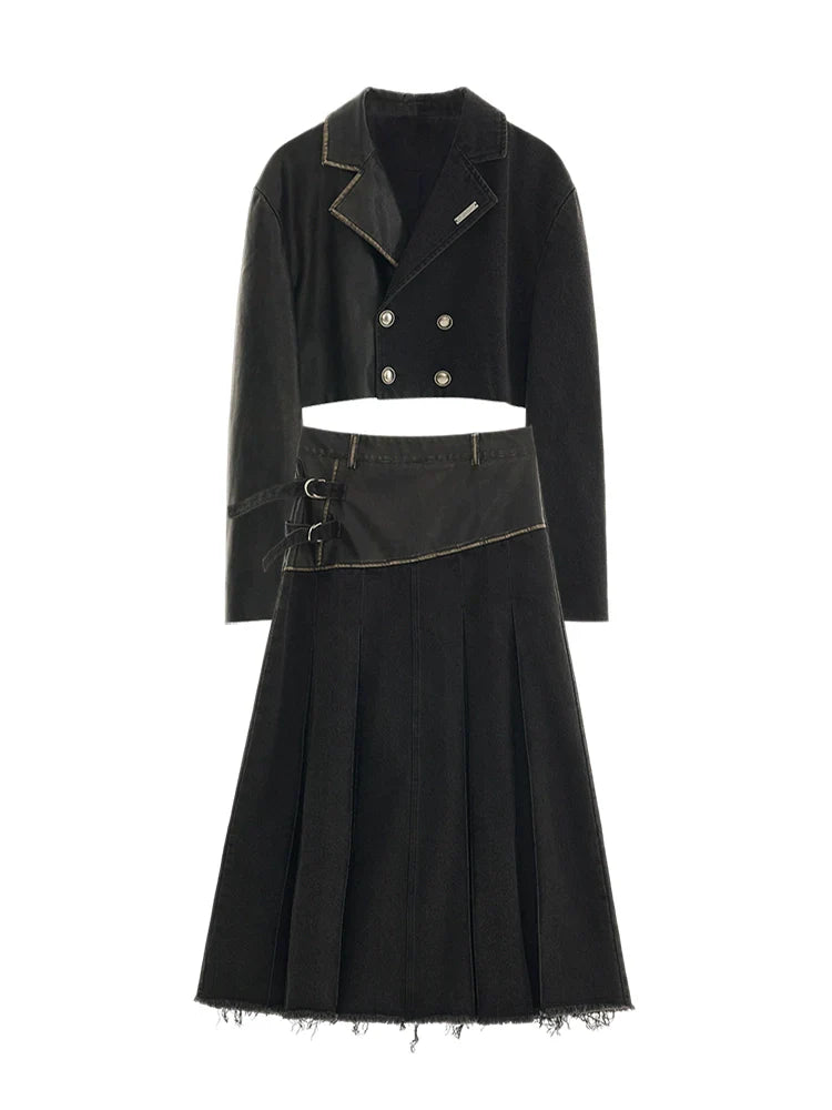 Patchwork Cropped Jacket & Long Skirt Set-Up
