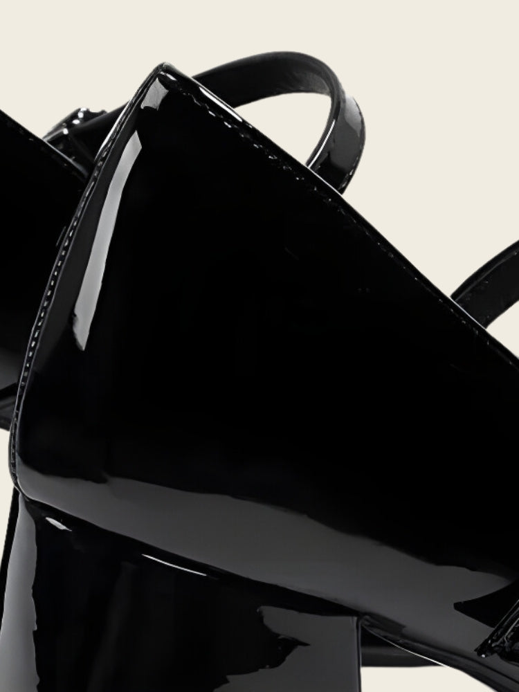 These sleek Mary Jane high heels combine a classic strap design with a contemporary block heel. The glossy finish adds a sophisticated touch. making them ideal for casual and formal outfits.