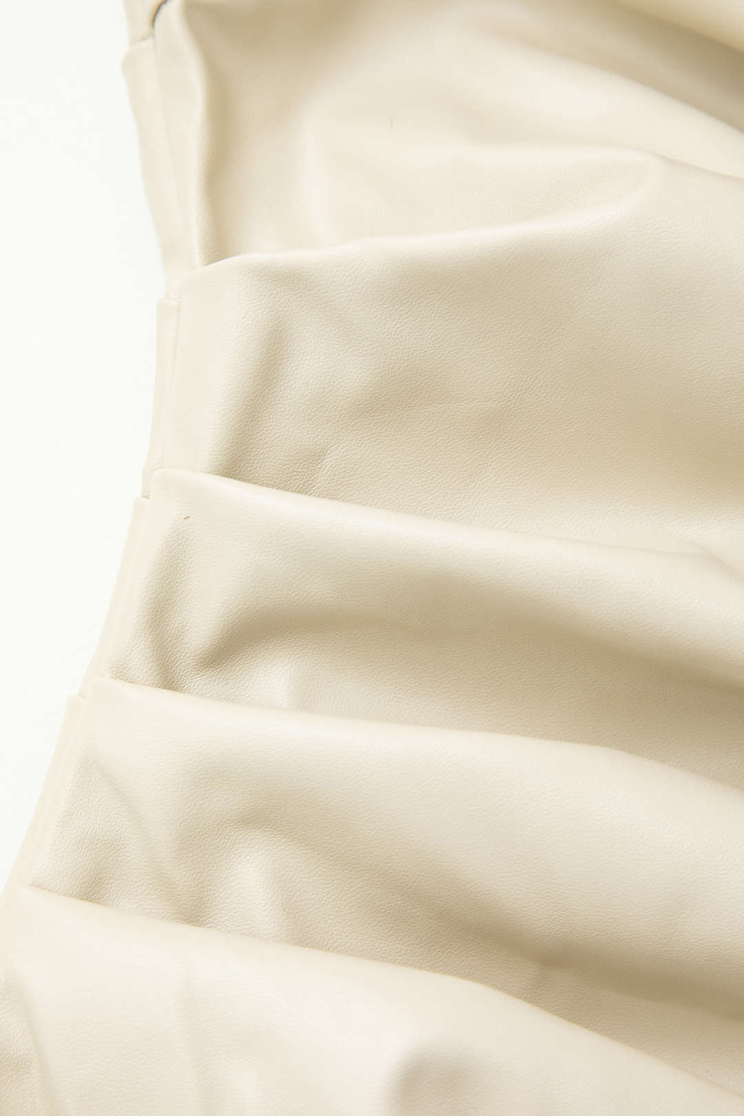 Asymmetric Faux Leather V-neck Gathered Mini Dress