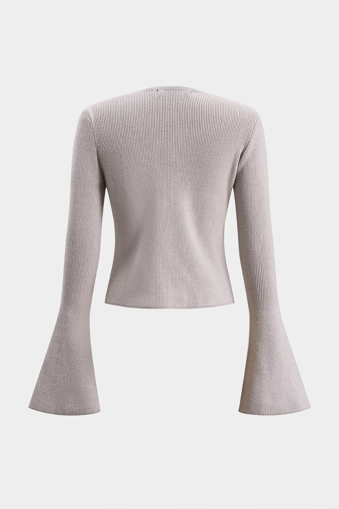 Bead Button Bell Sleeve Top And Cami Top And Skirt Set
