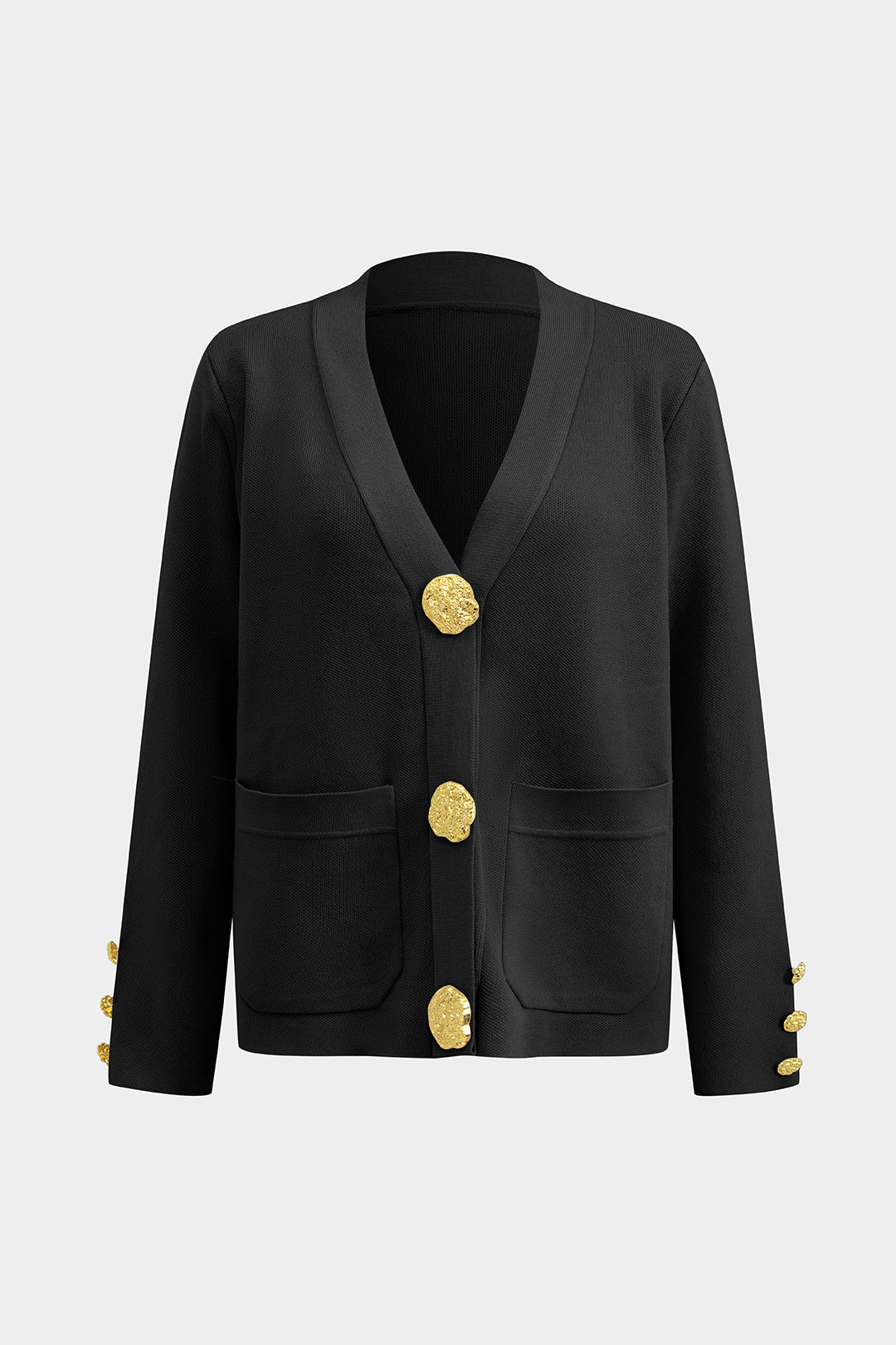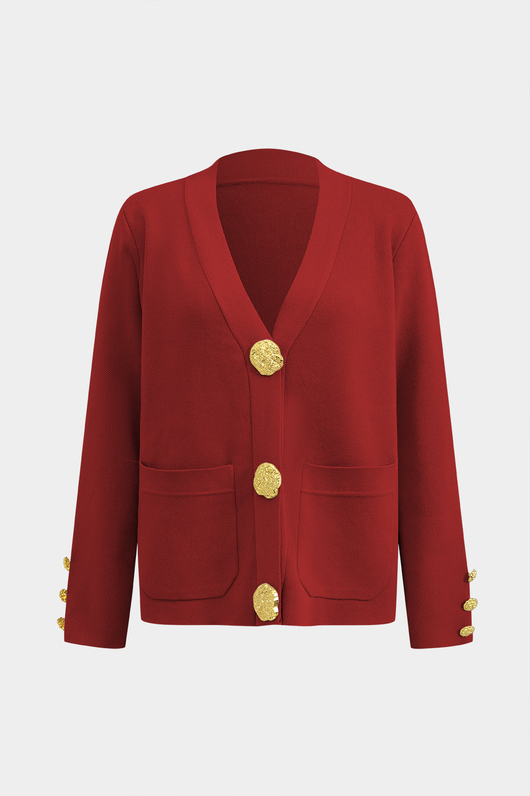 Button Detail Knit Cardigan And Wide-Leg Pants Set