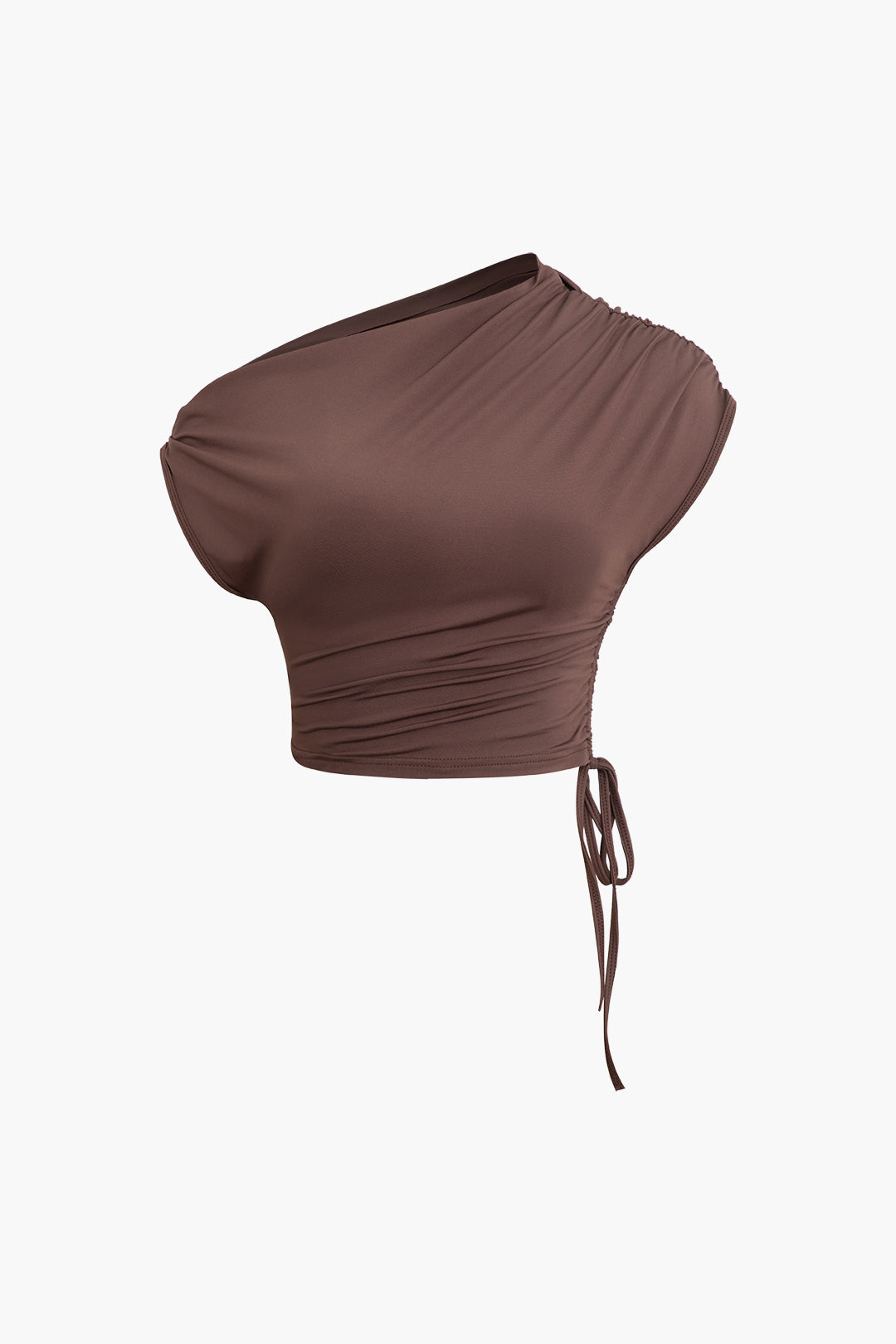 Asymmetrical Drawstring Short Sleeve Crop Top And Maxi Skirt Set