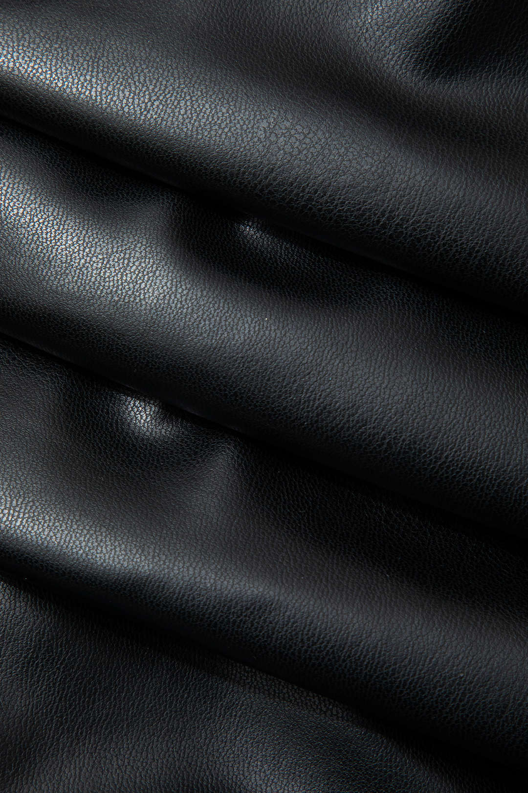 Asymmetrical Hem Faux Leather Mock Neck Ruched Sleeveless Top