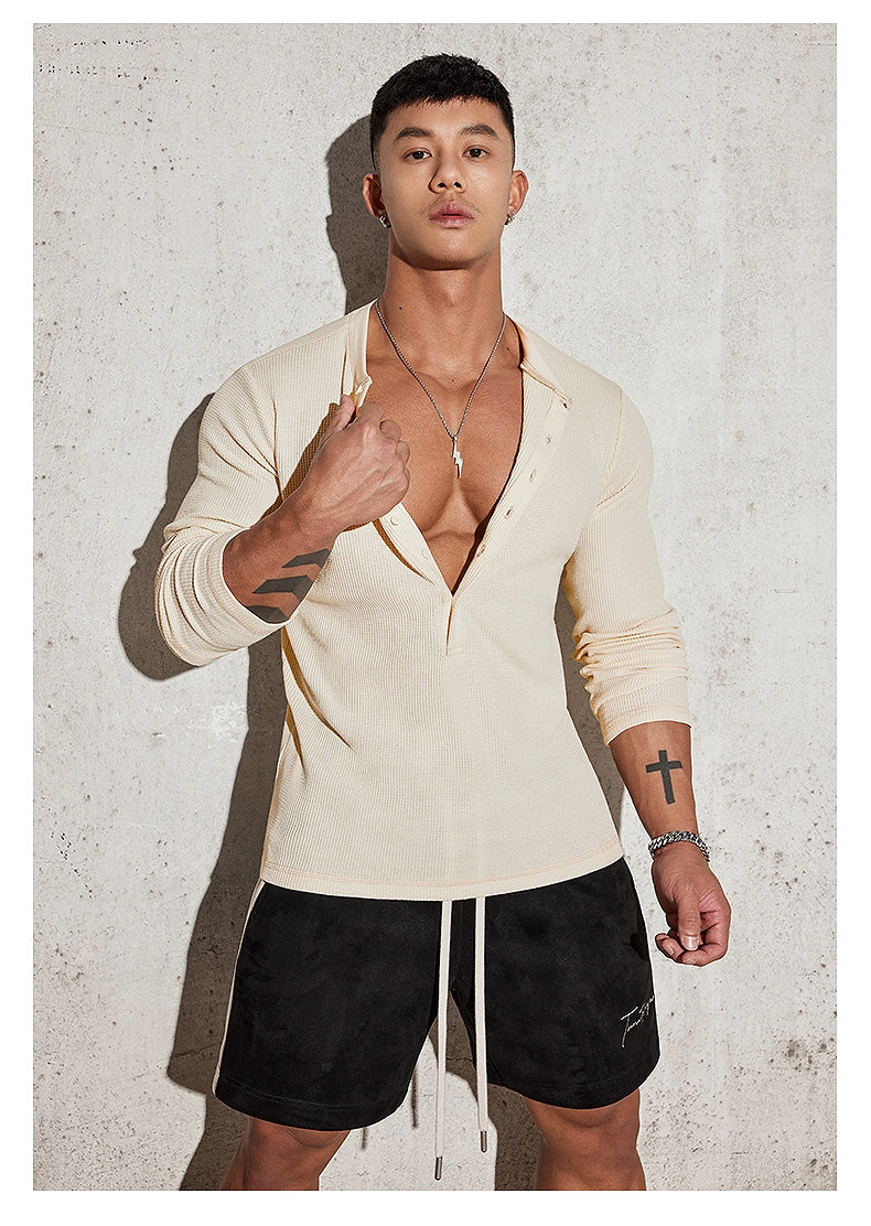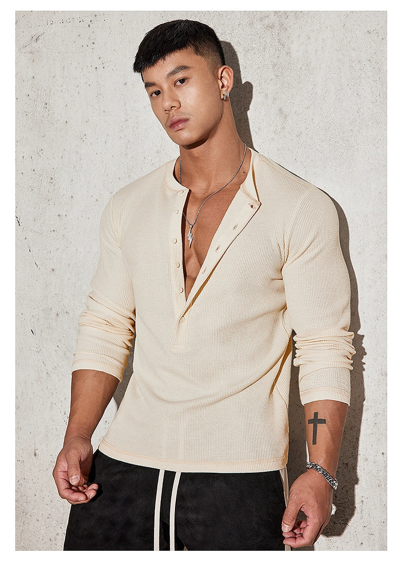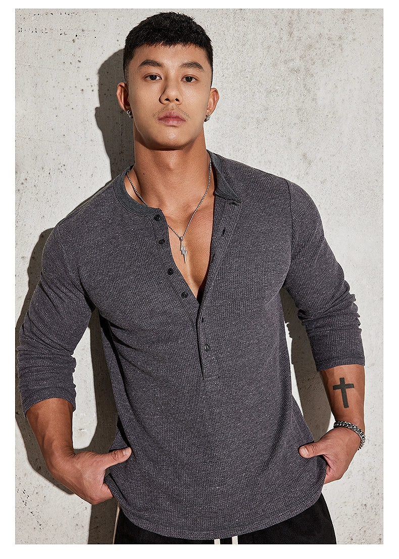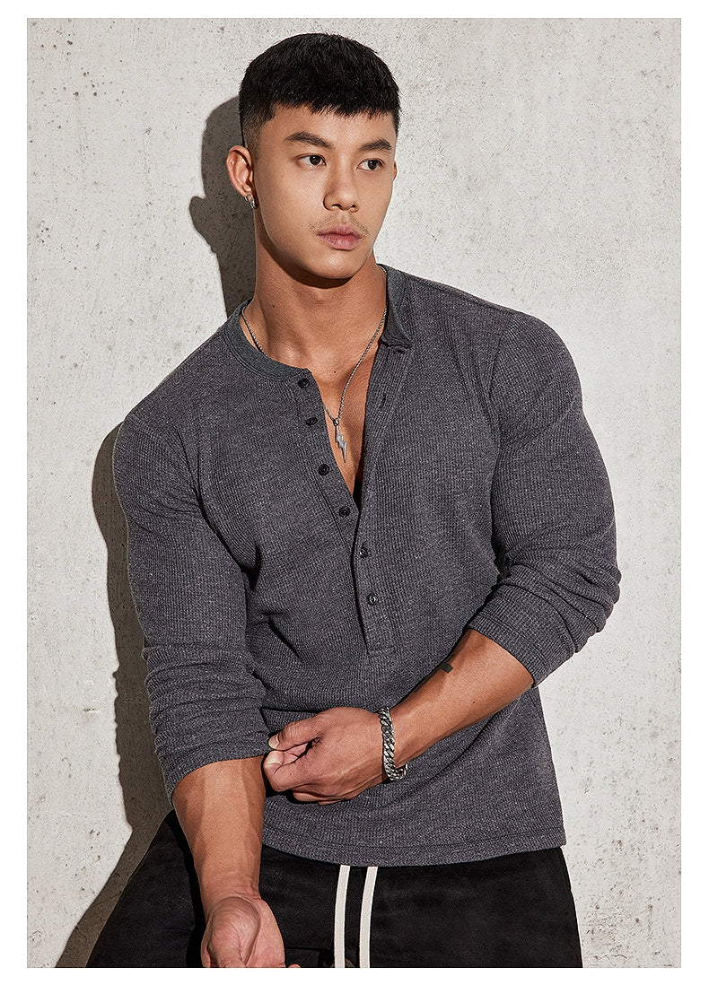 Fitted Long Sleeve Henley Shirt