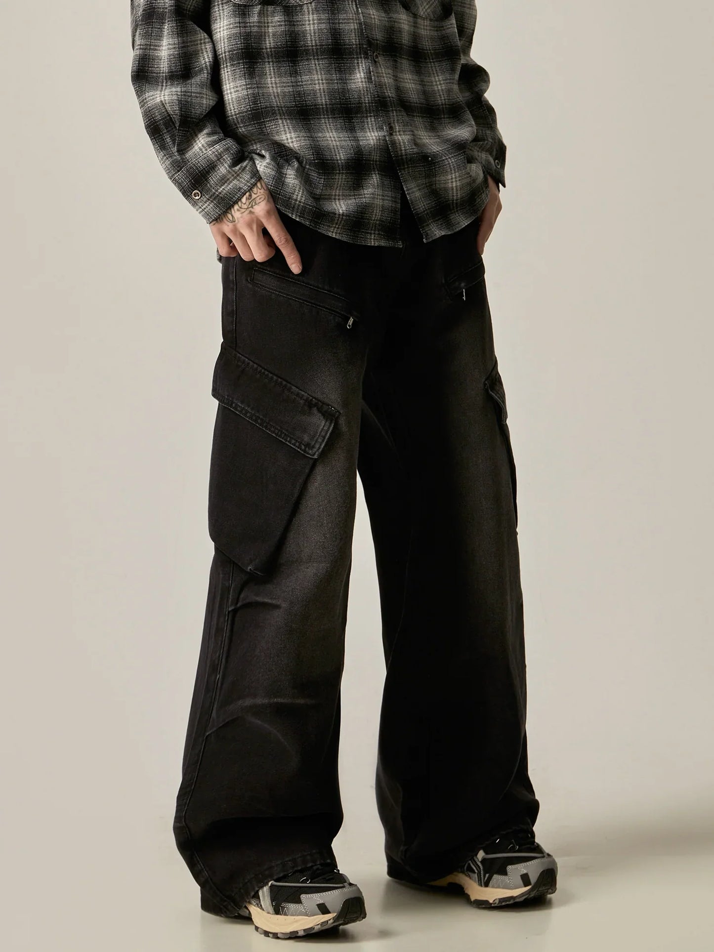 These Midnight Blitz Wide-Leg Cargo Jeans are the perfect combination of style and functionality. With their wide-leg design and cargo pockets. they provide both comfort and practicality. Made with high-quality materials. these jeans are durable and long-lasting. Upgrade your wardrobe with these versatile and trendy jeans.