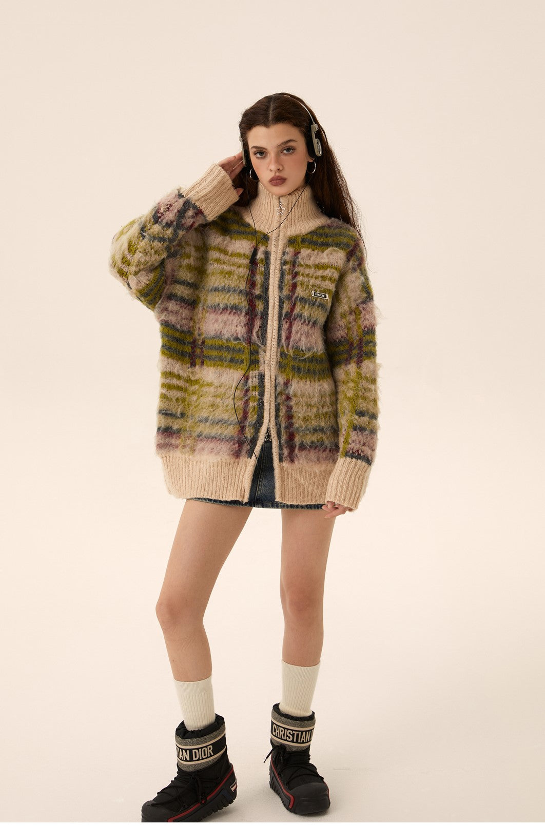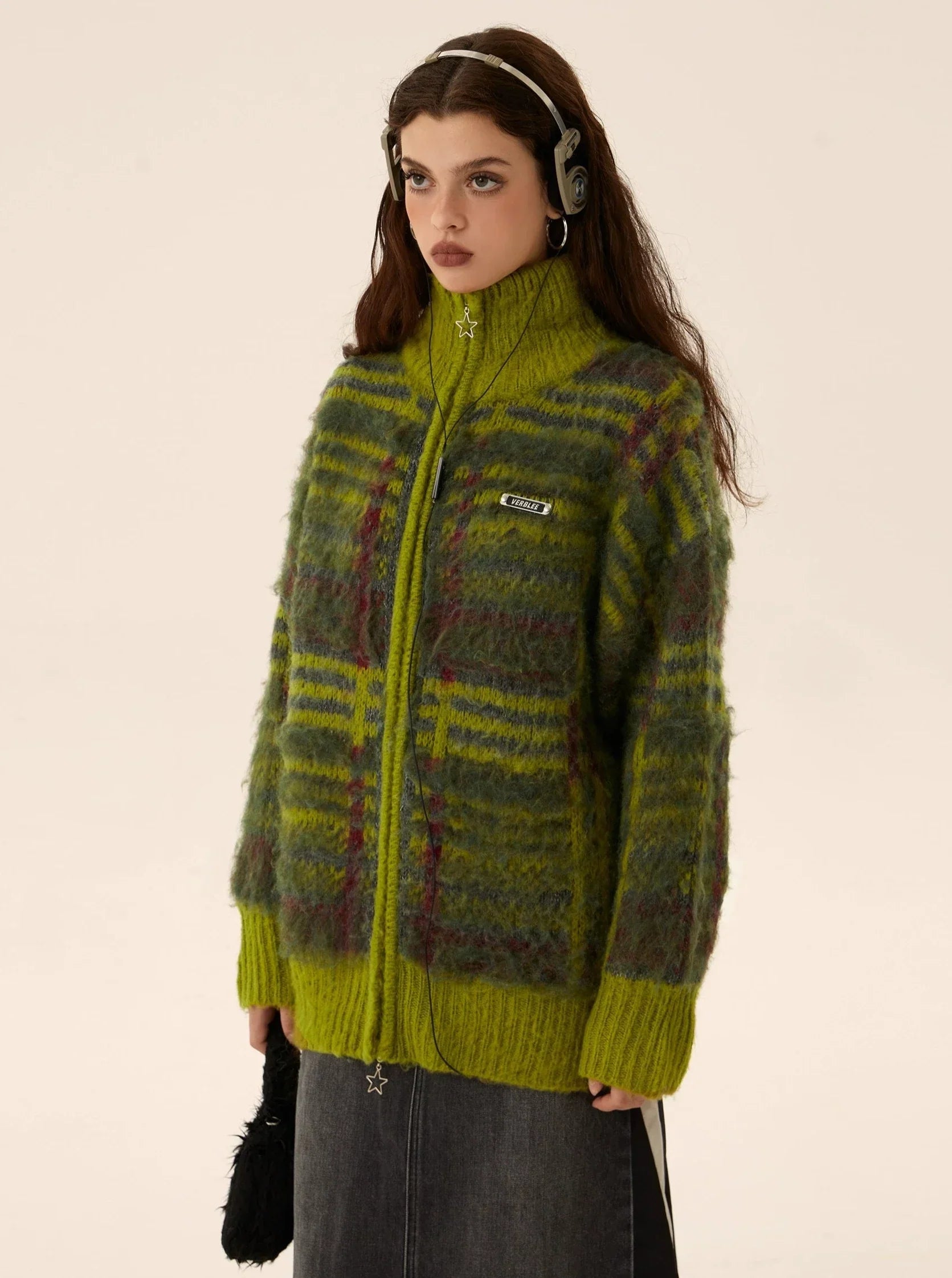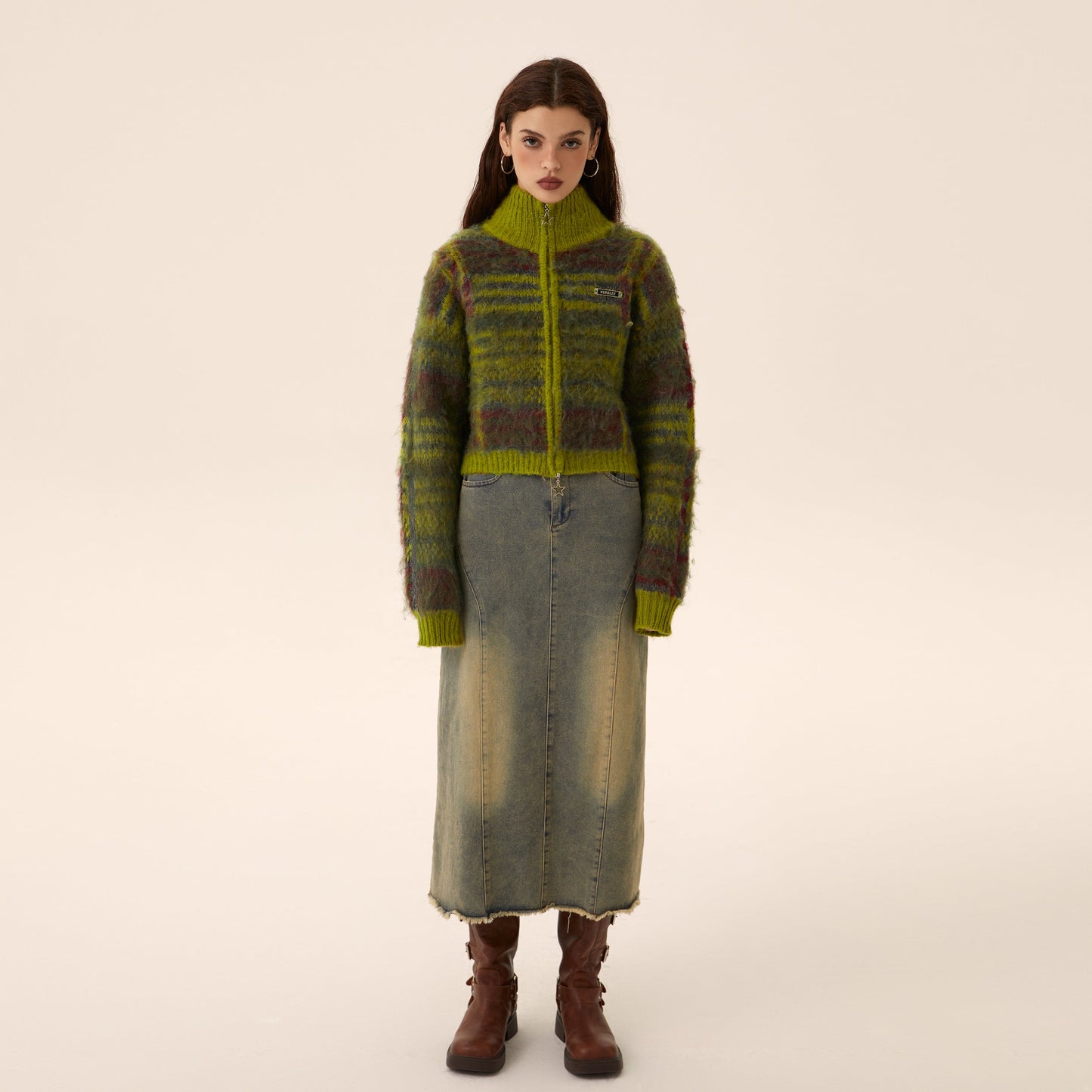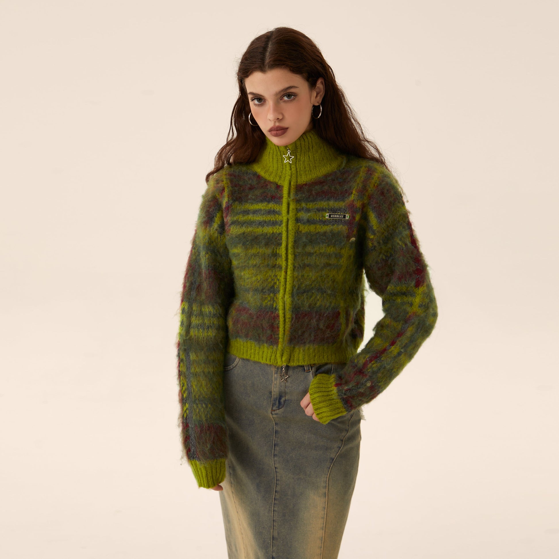Mohair Knit Zipper Cardigan Sweater Coat