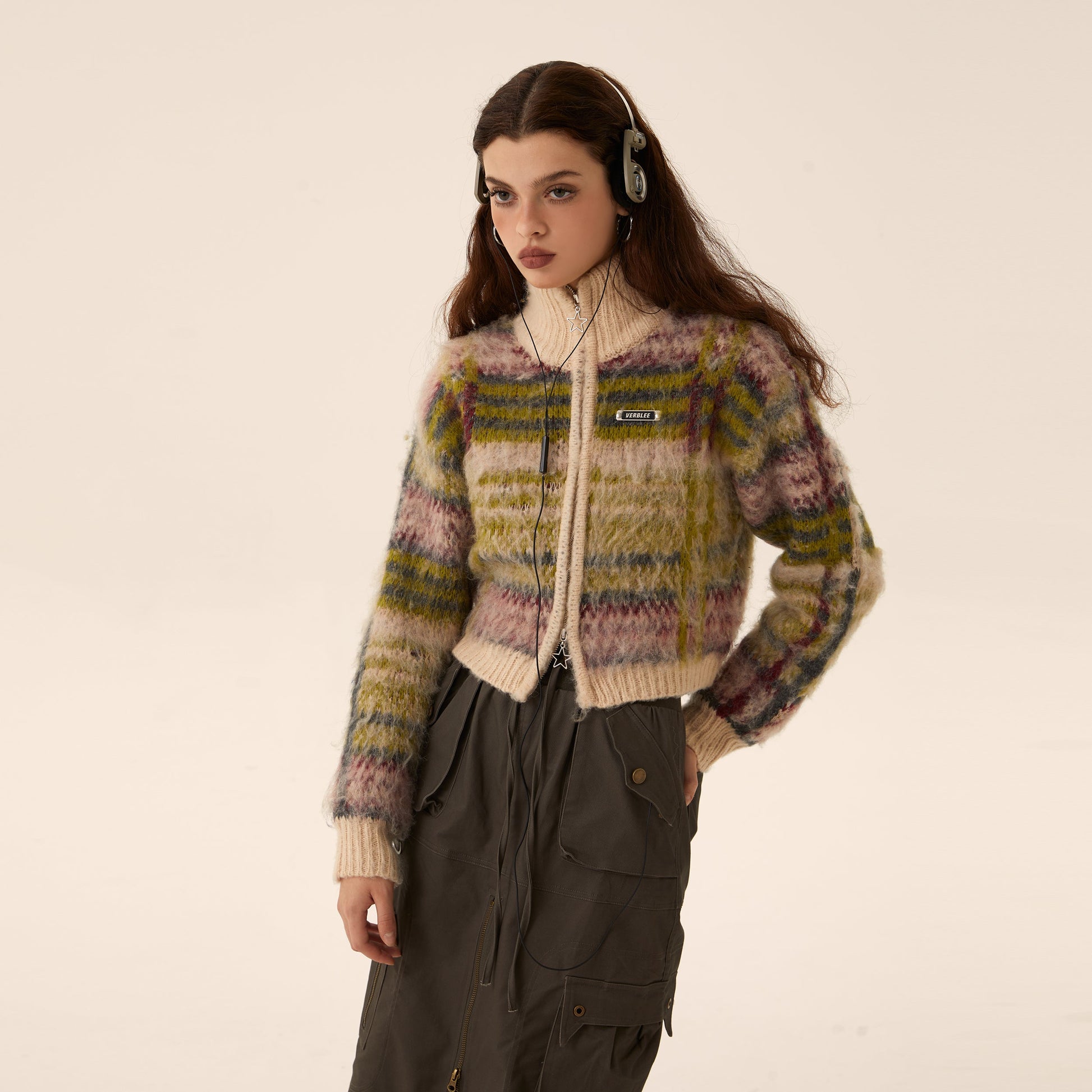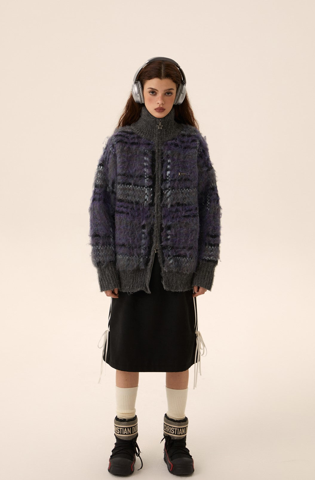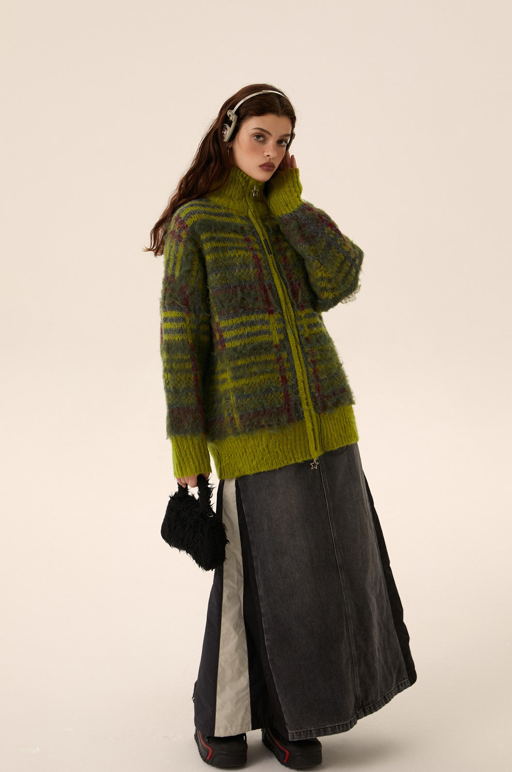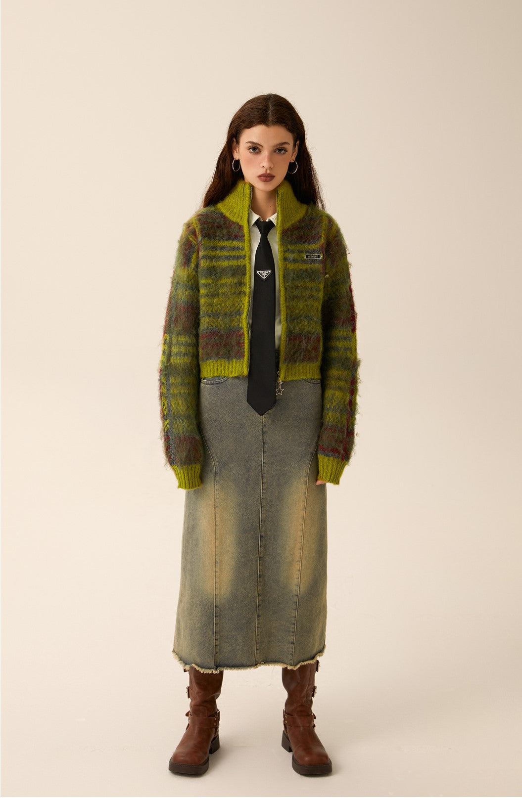 Mohair Knit Zipper Cardigan Sweater Coat