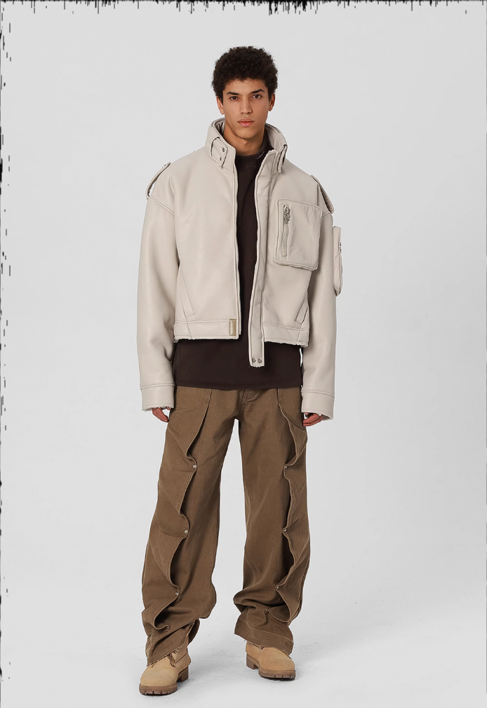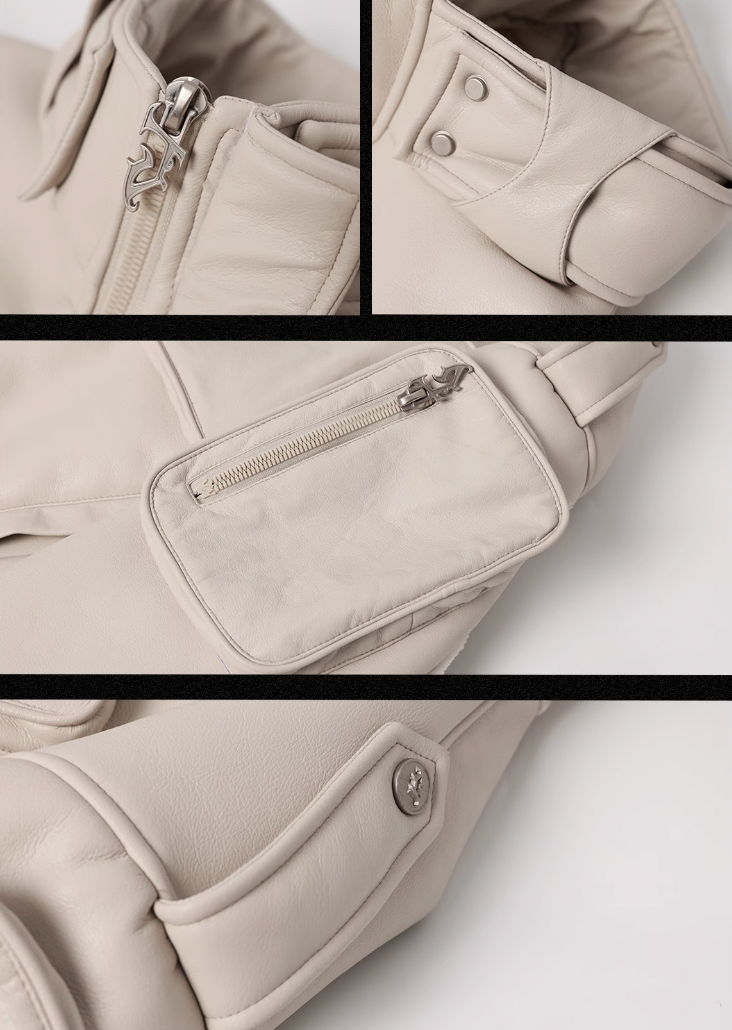 Our Motorcycle Leather Short Jacket offers an impeccable blend of style and comfort. designed to accentuate your look effortlessly. Ideal for both men and women. this jacket is tailored to fit perfectly. with the male model showcasing size XXL at 187cm and 84kg. while the female model wears size M at 165cm and 55kg.