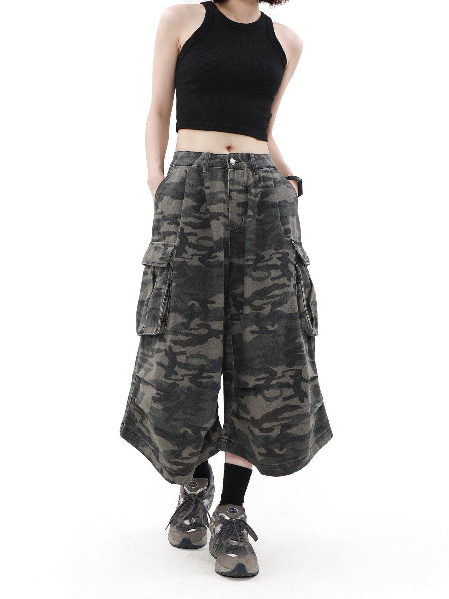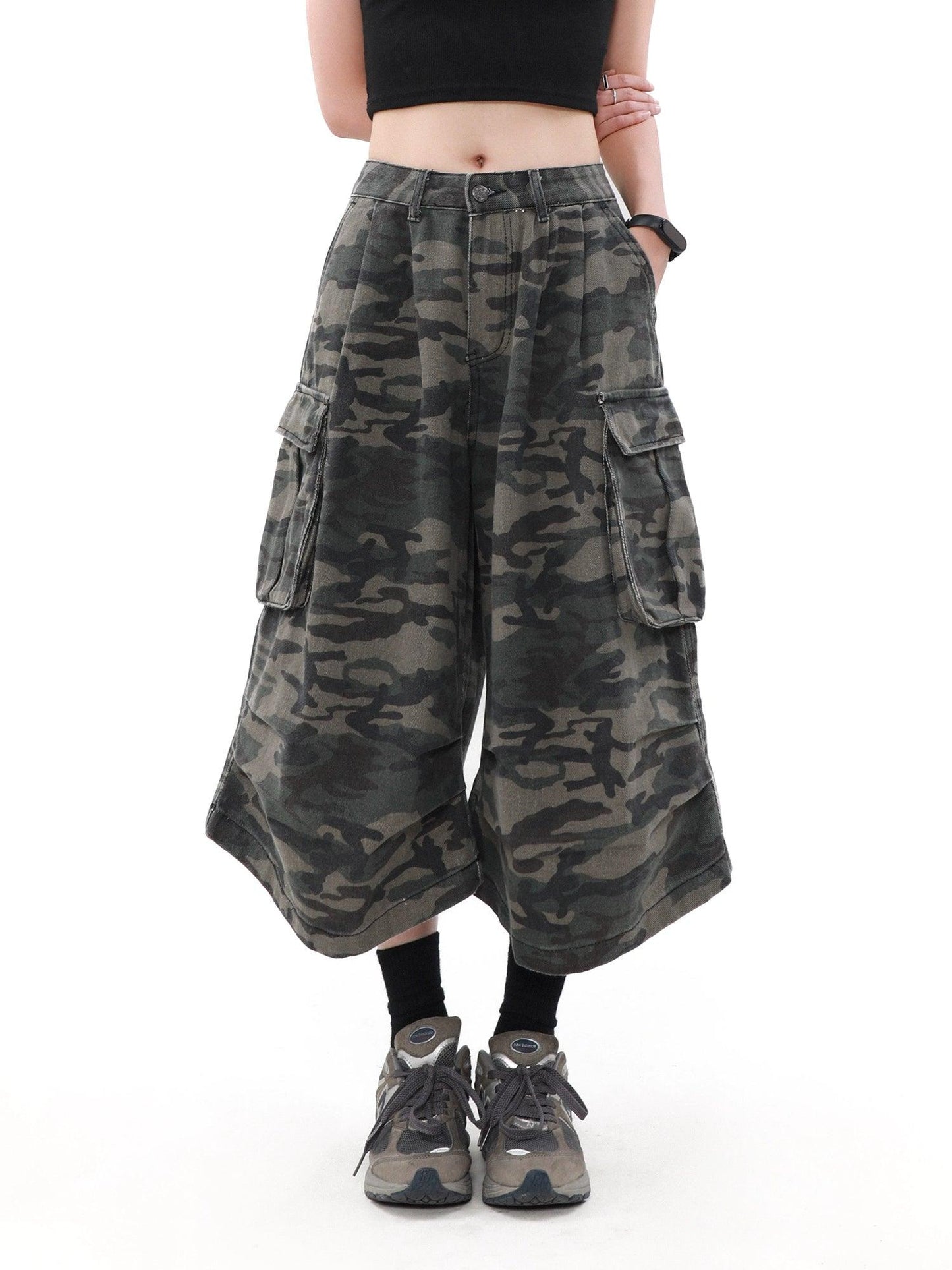 Mrnearly Camouflage Cargo Culottes - Unisex Urban Streetwear Bottoms